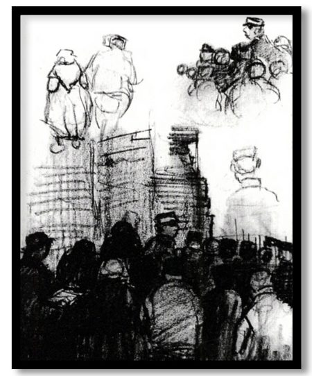 Sketches for the Drawing of an Auction by Vincent van Gogh (1885)