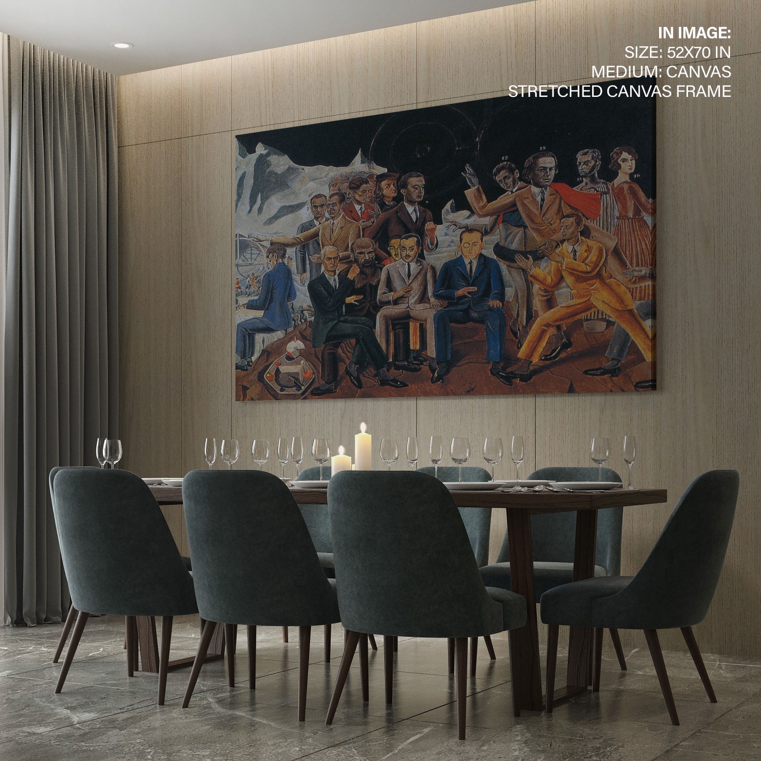 We recommend using Canvas for prominent living spaces (living room, dining hall, bedrooms), Metal/Glass for modern aesthetics, and Art Paper for galleries, bathrooms, kitchens, and other less formal areas.