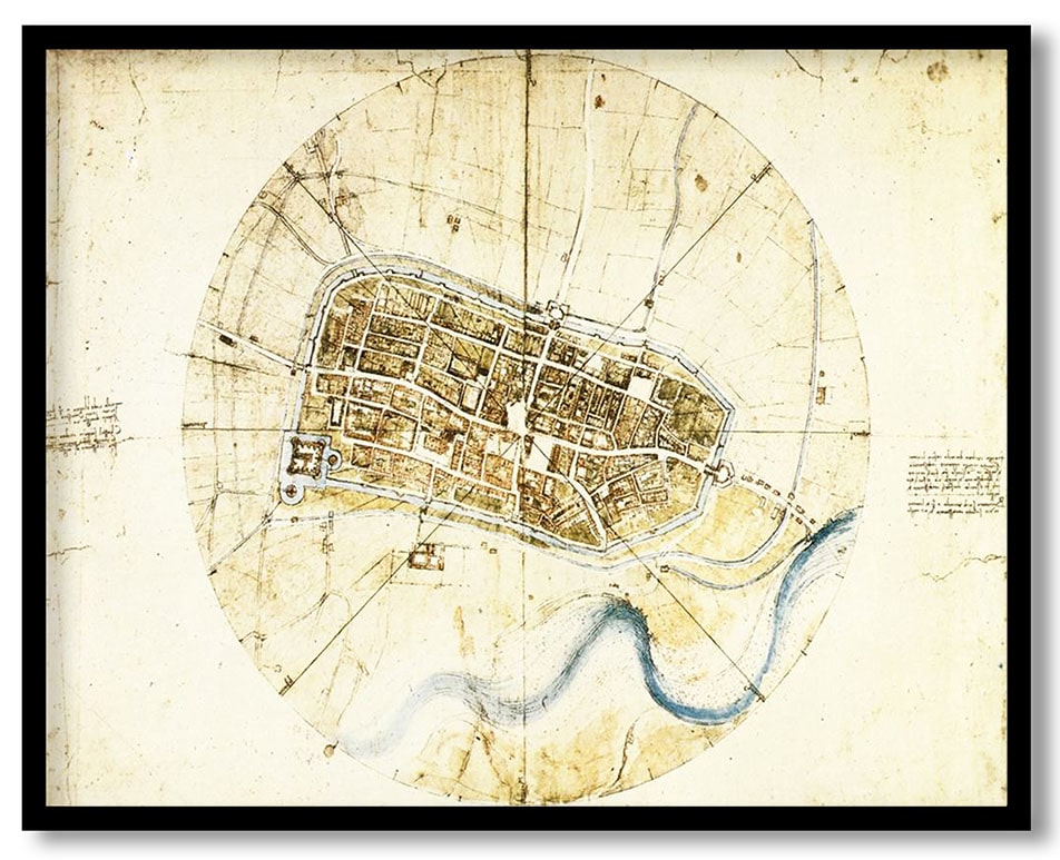 A plan of imola by Leonardo da Vinci (1502)