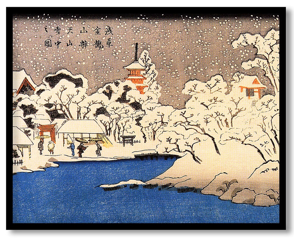 A snowstorm at kinryozan temple by Utagawa Kuniyoshi (Unknown)
