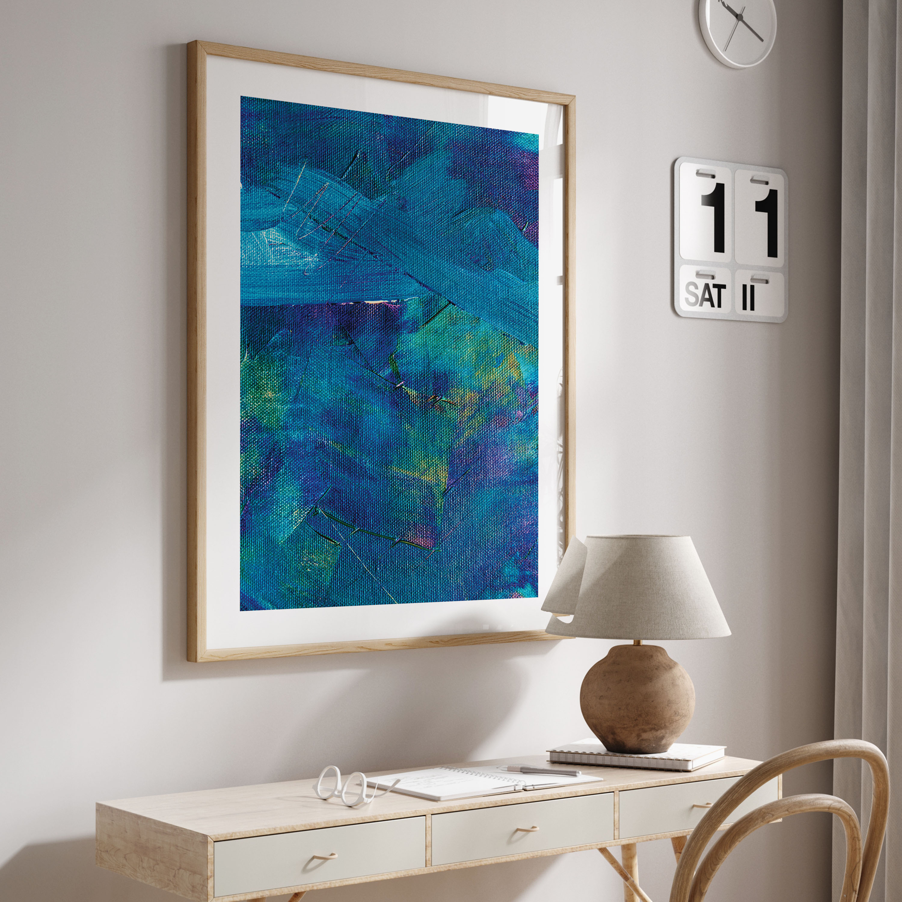 We recommend using Canvas for prominent living spaces (living room, dining hall, bedrooms), Metal/Glass for modern aesthetics, and Art Paper for galleries, bathrooms, kitchens, and other less formal areas.
