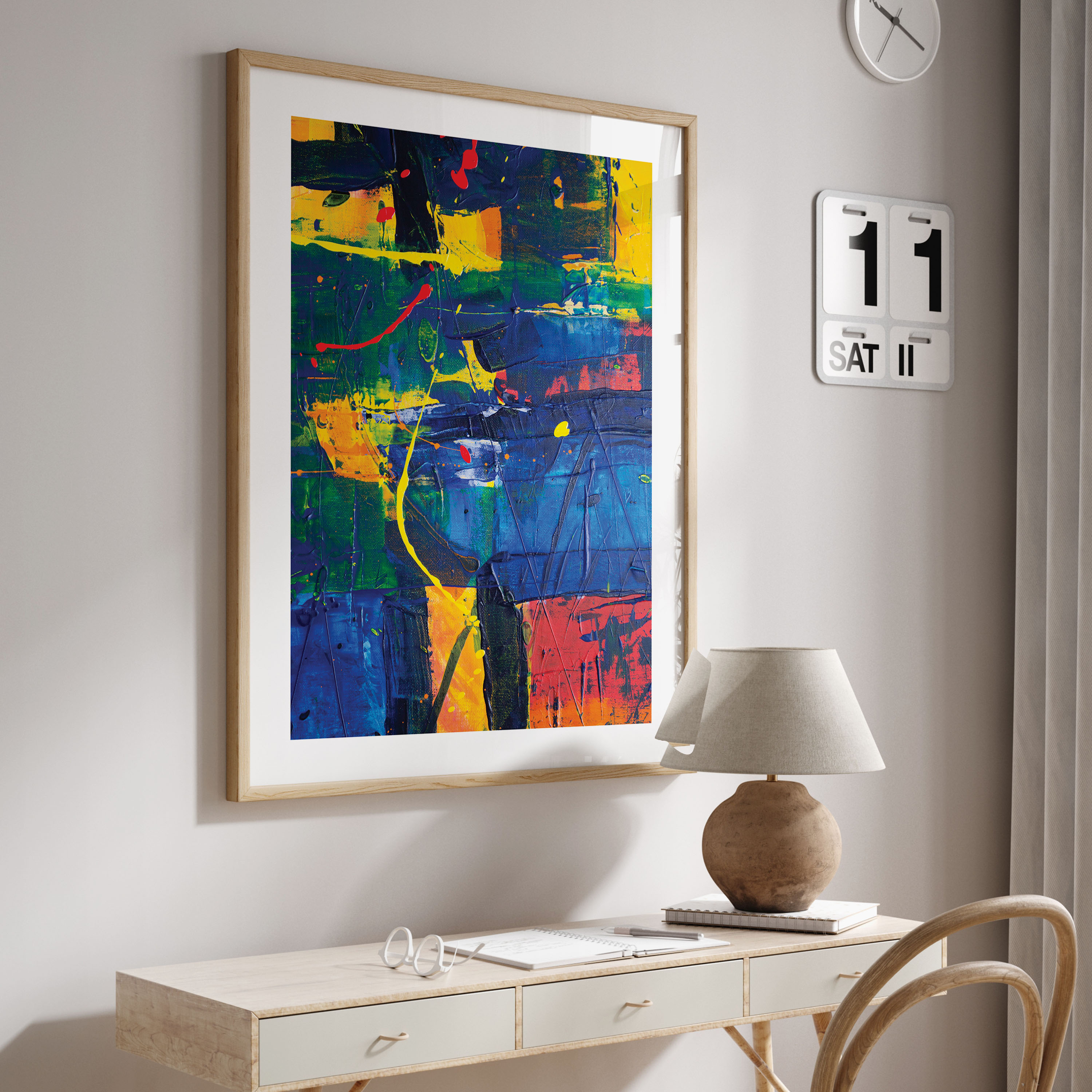 We recommend using Canvas for prominent living spaces (living room, dining hall, bedrooms), Metal/Glass for modern aesthetics, and Art Paper for galleries, bathrooms, kitchens, and other less formal areas.