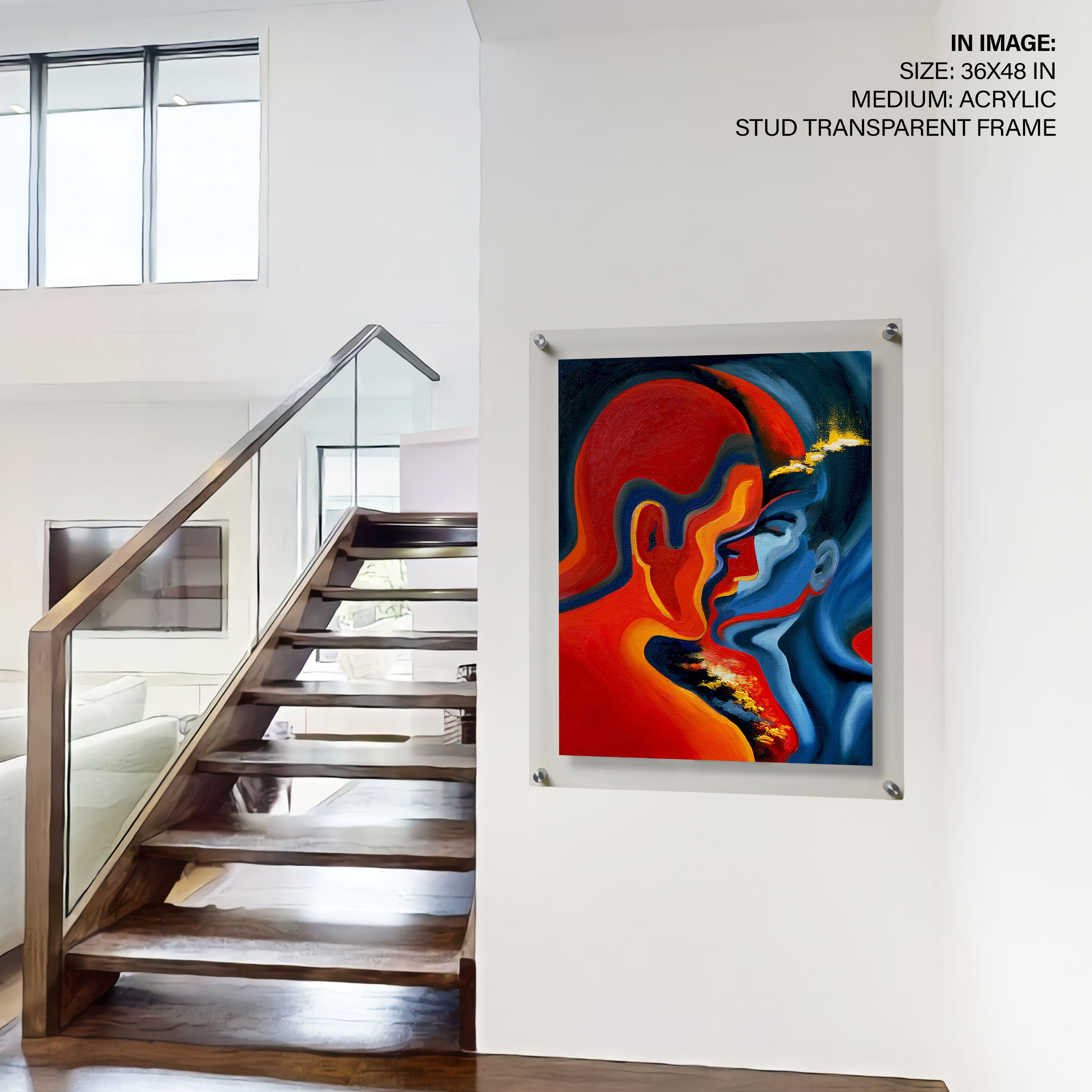 Be the first to review “Abstract burnt red blue couple kissing”
