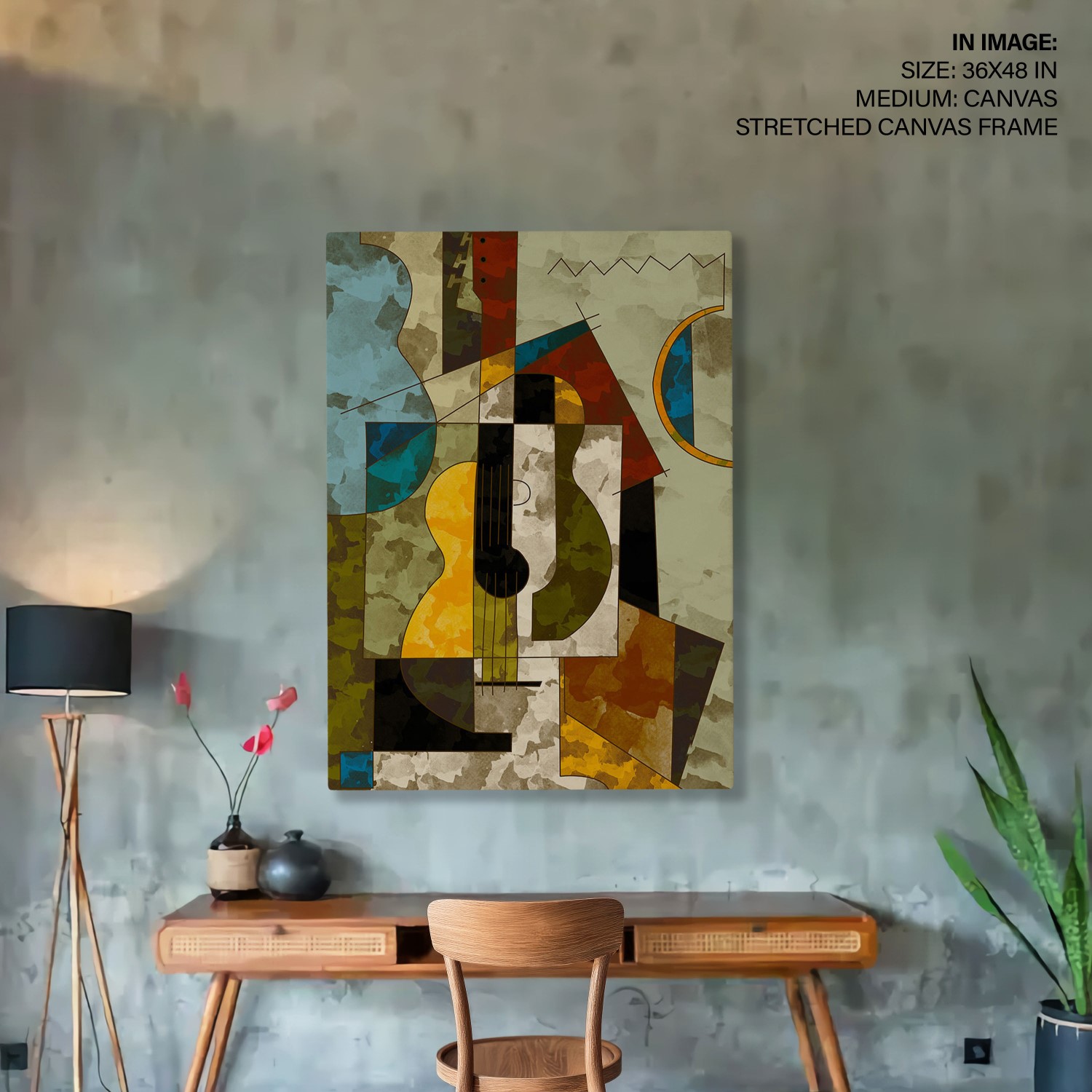 Be the first to review “Abstract elements still life guitar geometrical painting”