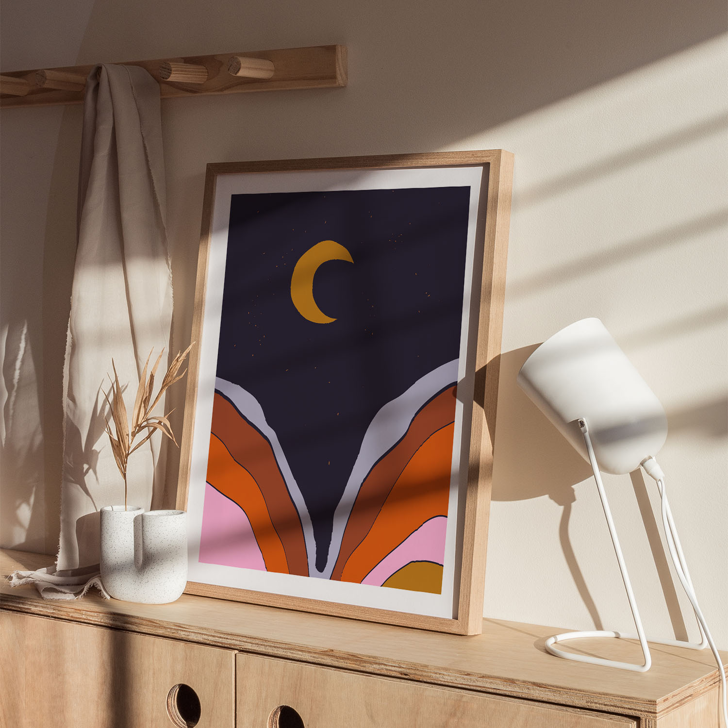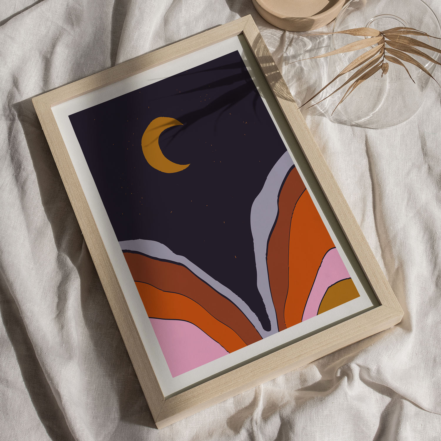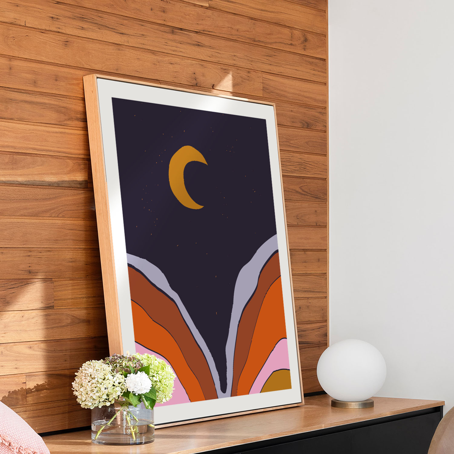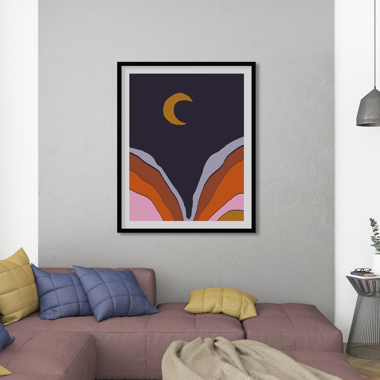Be the first to review “Abstract Moon with Colored Mountains”