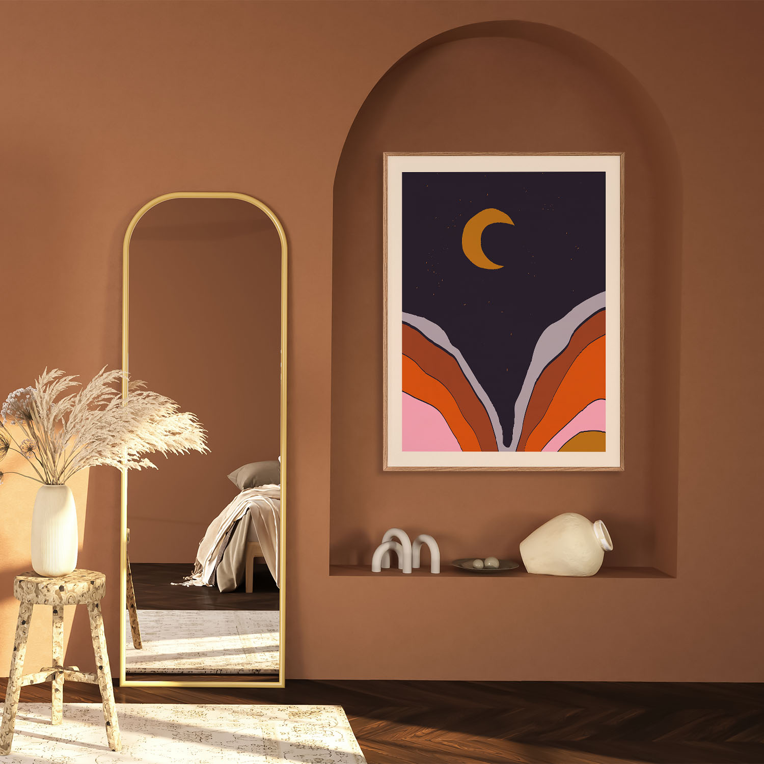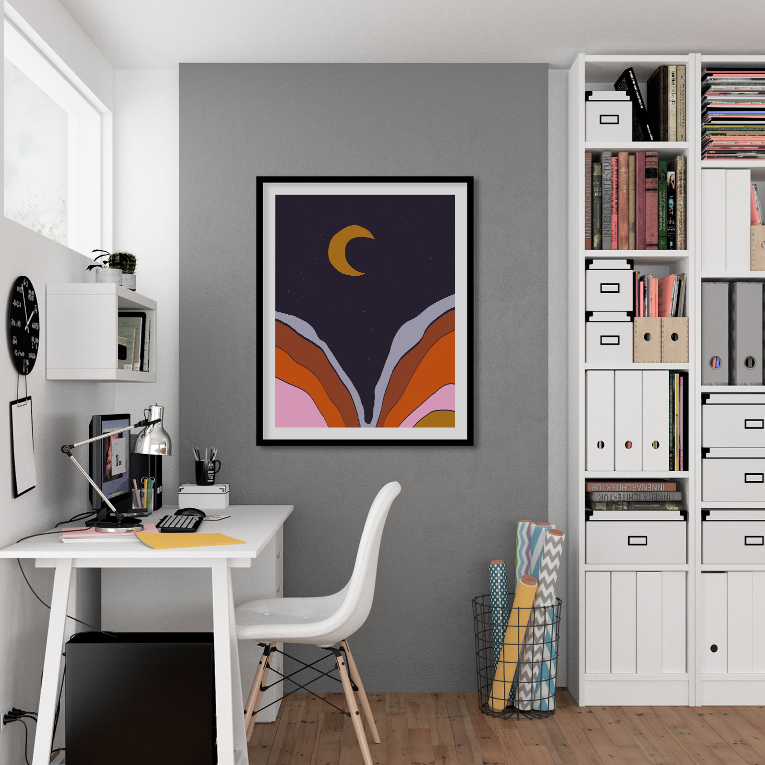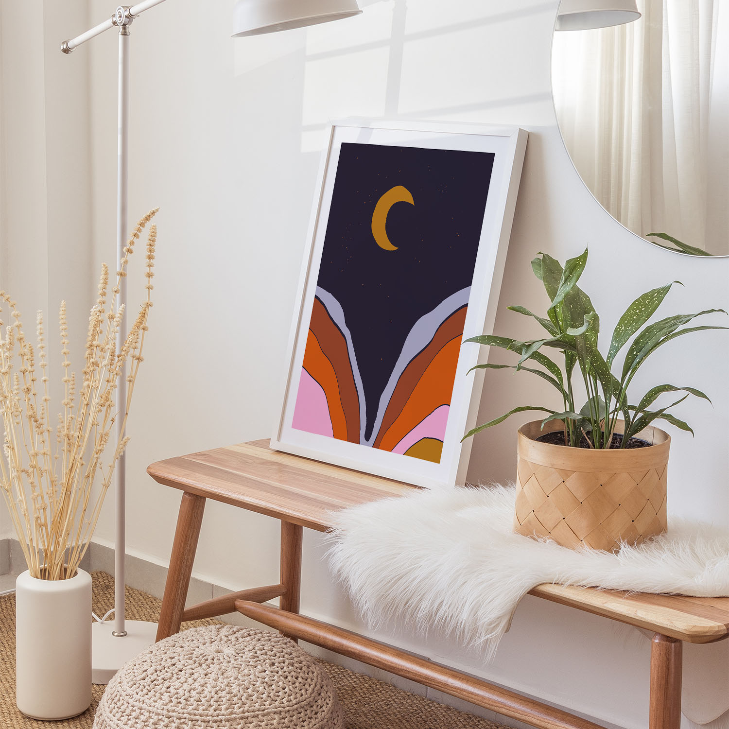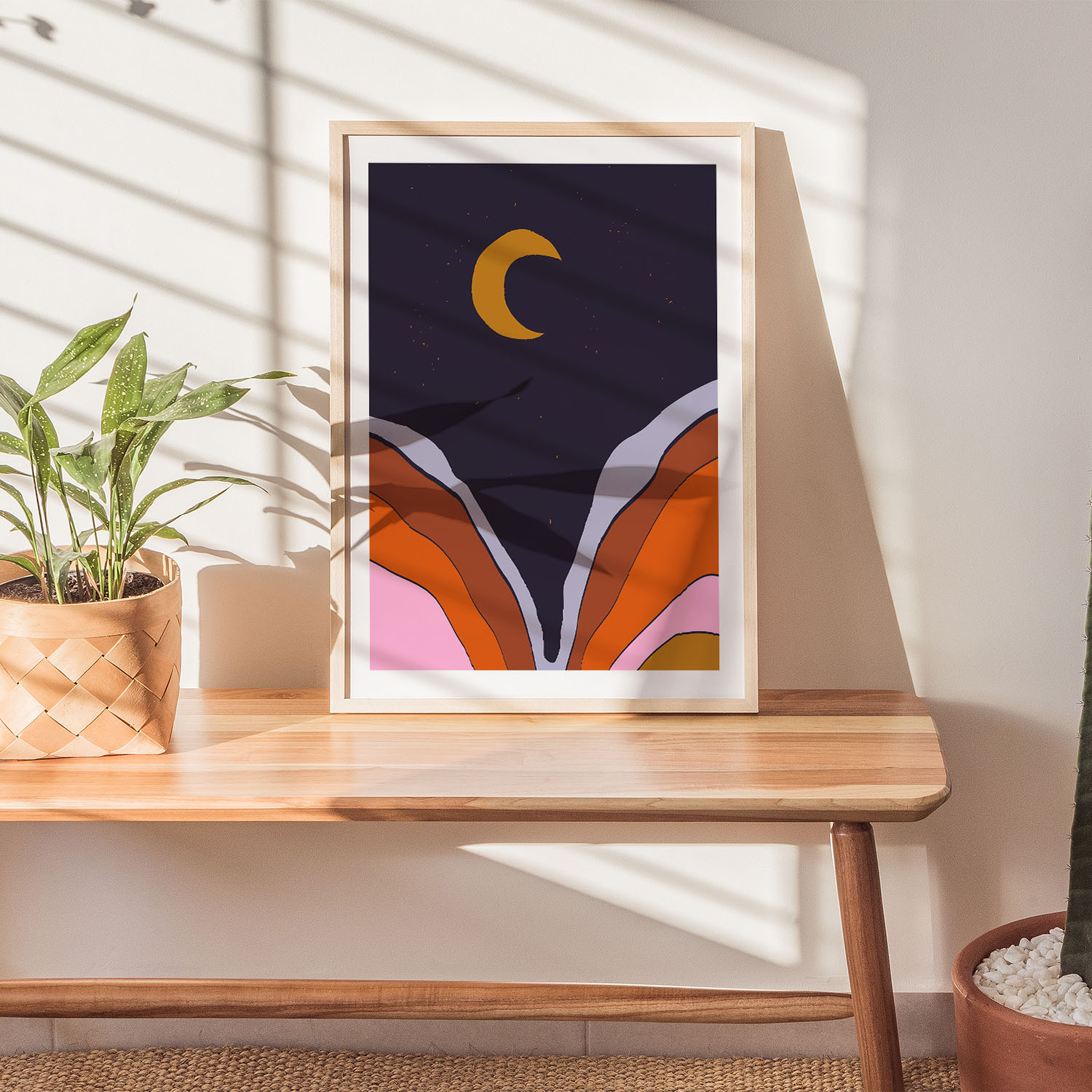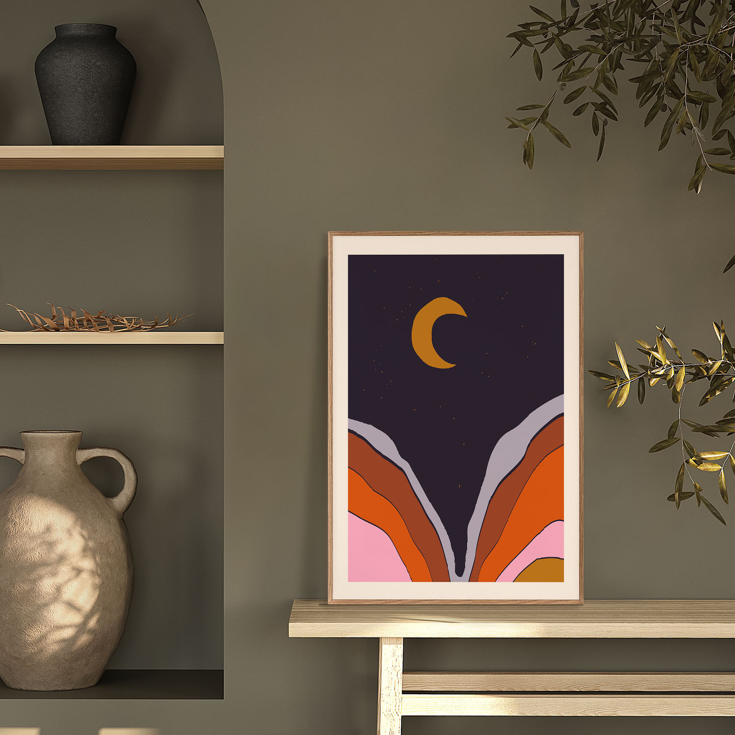 Be the first to review “Abstract Moon with Colored Mountains”