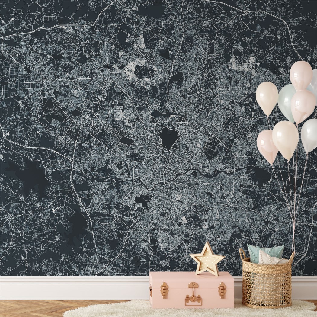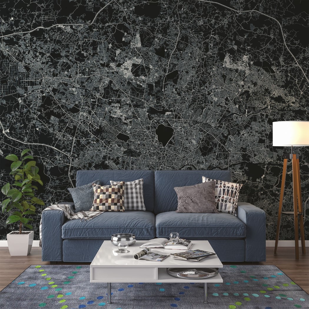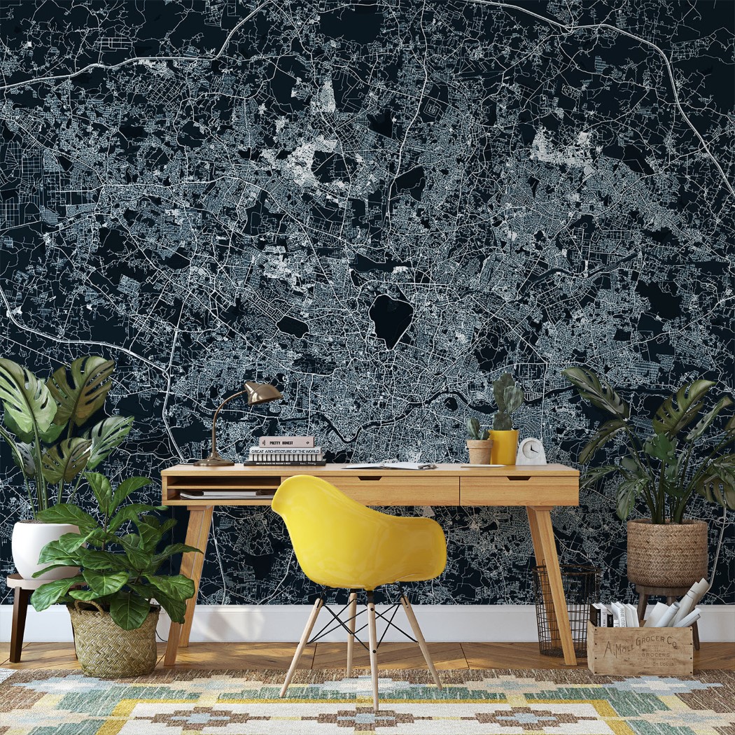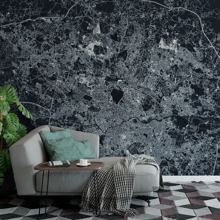 Hyderabad Map Wall Mural – Asphalt blue, Mural Wallpaper, PVC Free, Non-Toxic