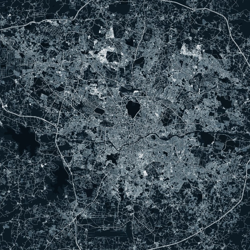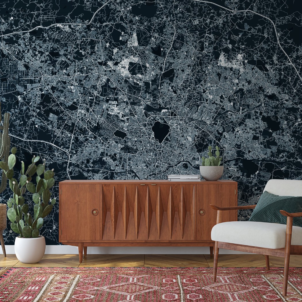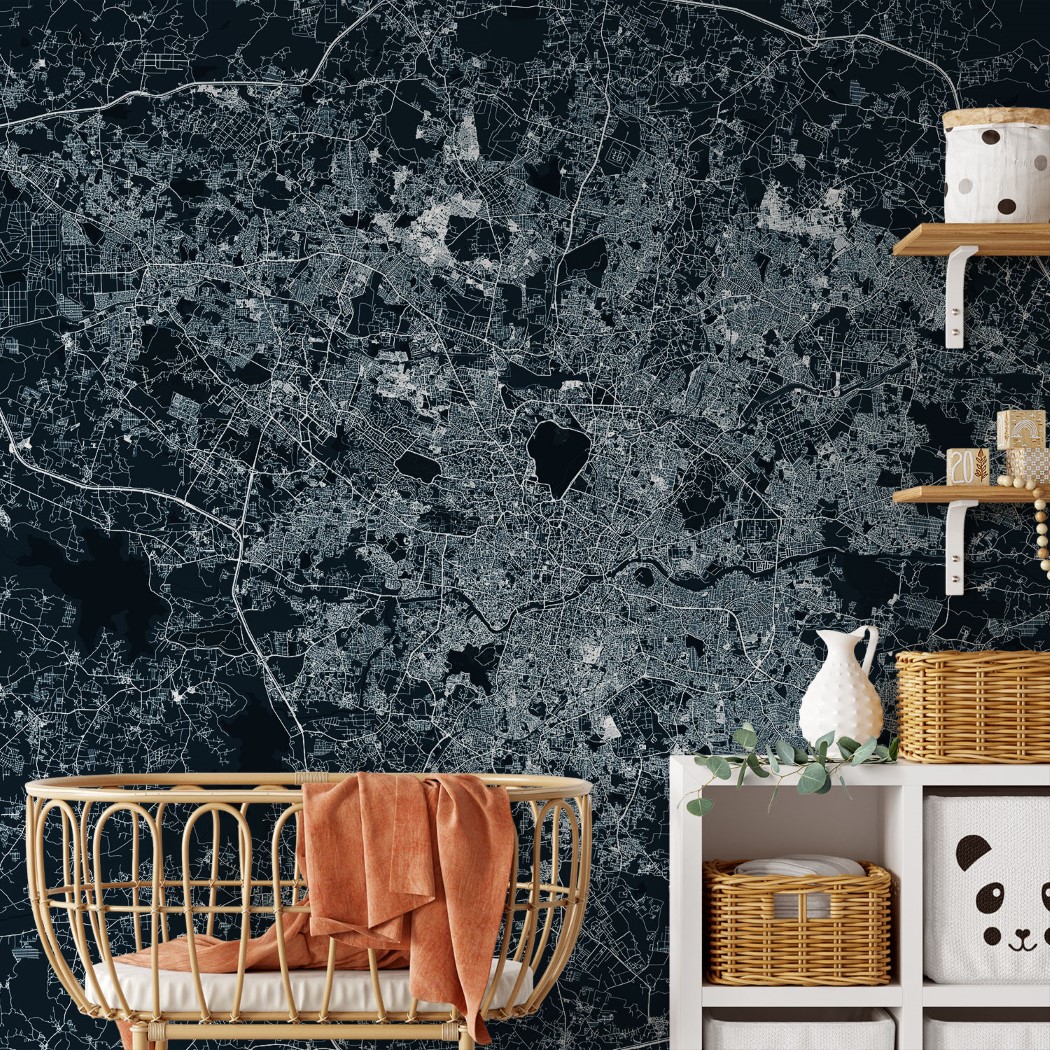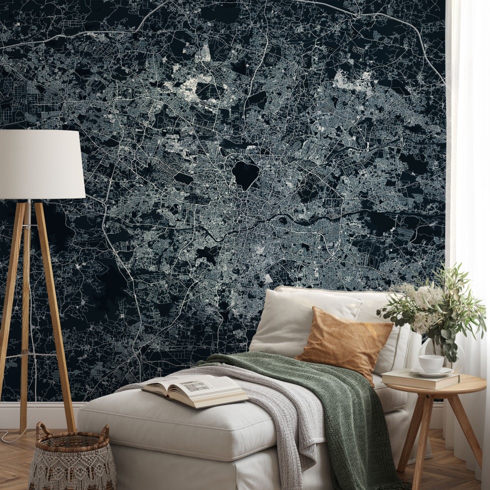 Hyderabad Map Wall Mural – Asphalt blue, Mural Wallpaper, PVC Free, Non-Toxic