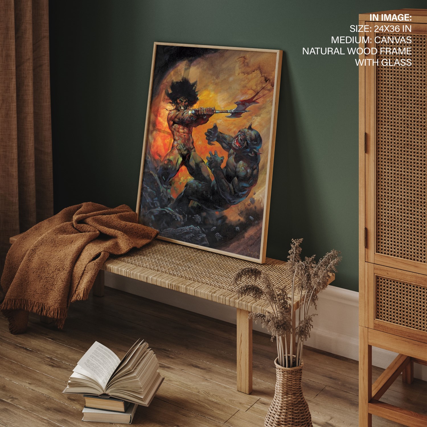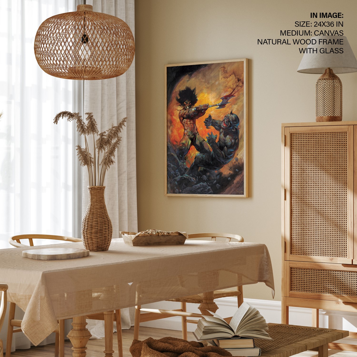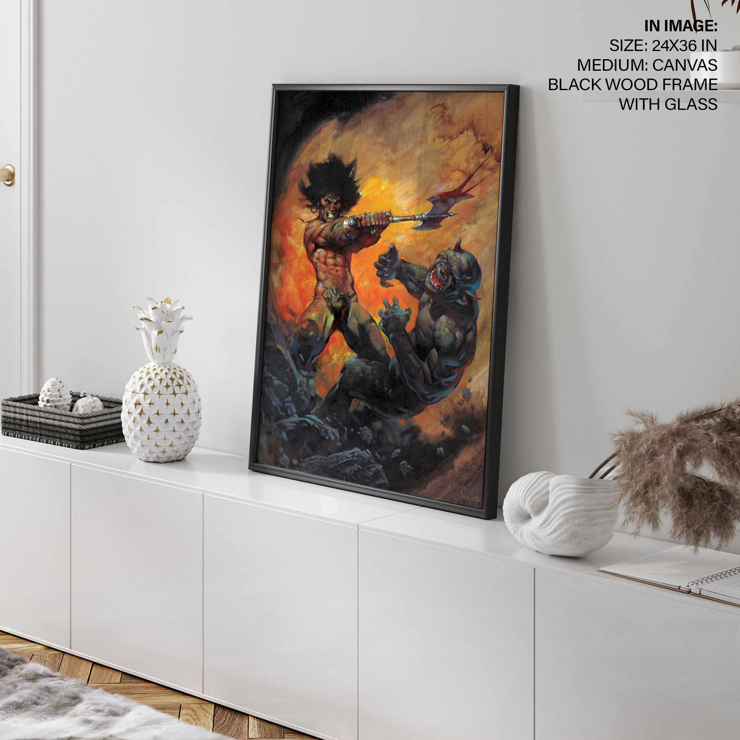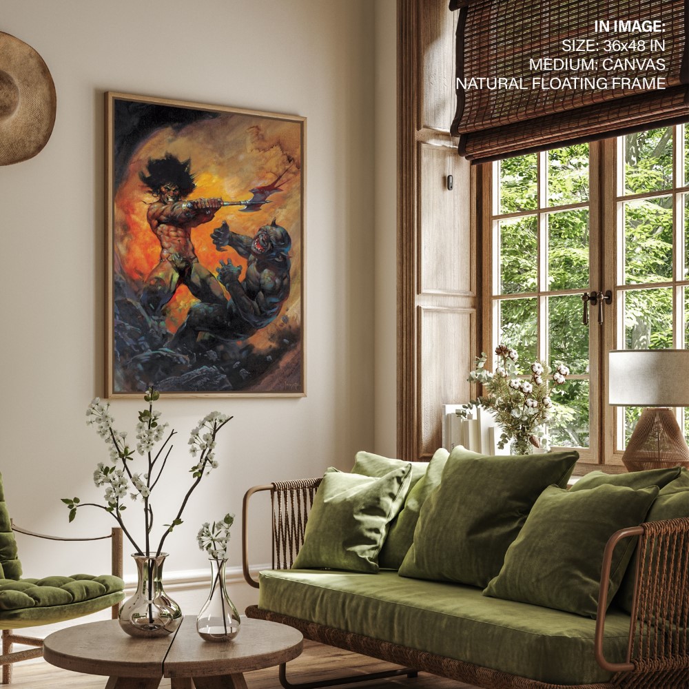 Categories: Bar, Contemporary, Dramatic, Entertainment Room, Fantasy, Fantasy, Fictional, Figurative, Frank Frazetta, Game Room, Illustration, Illustration, Man Cave, Modern, Multi Colored, Orange, Study, Surrealism, Wall Art