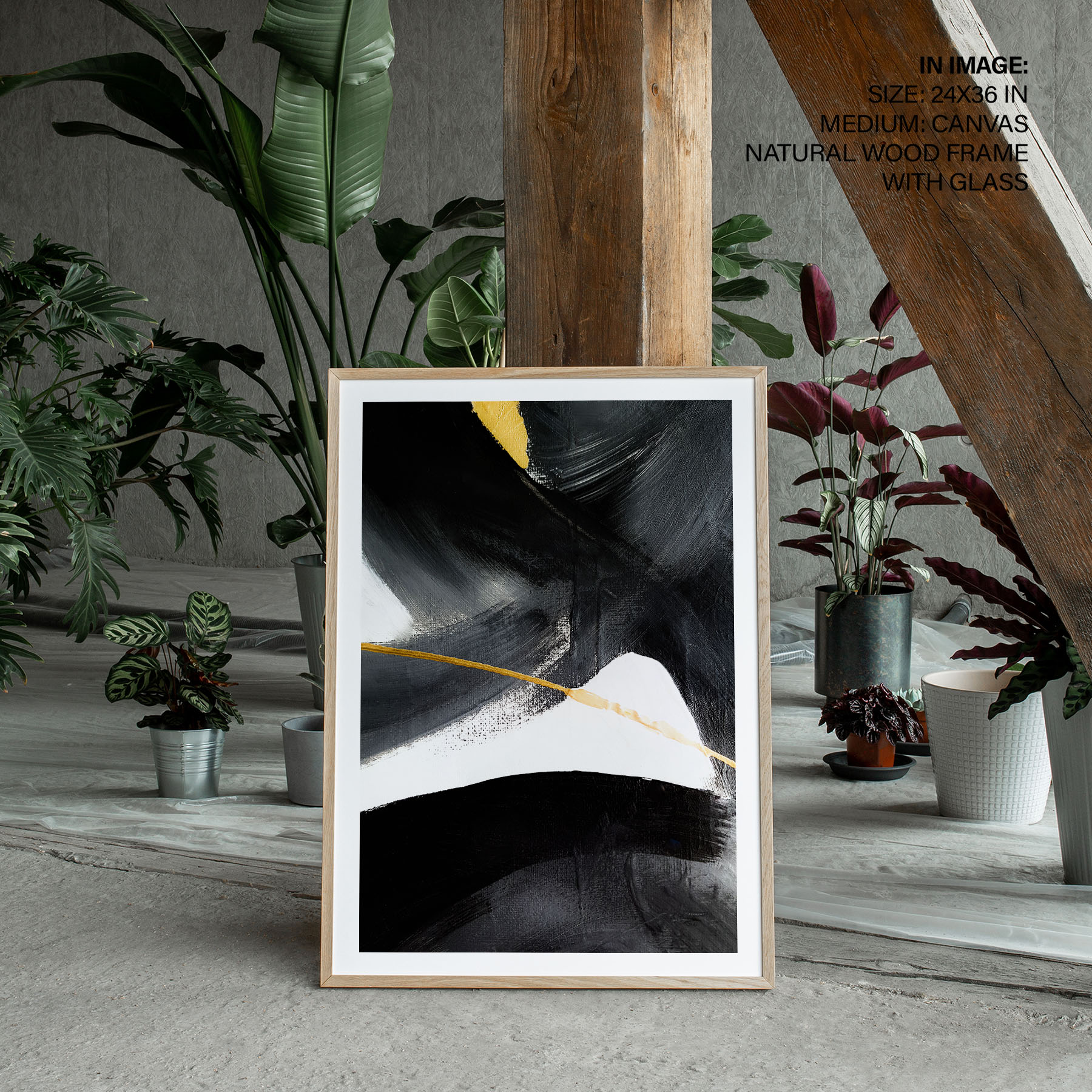 Black and gold contemporary brushstroke abstract