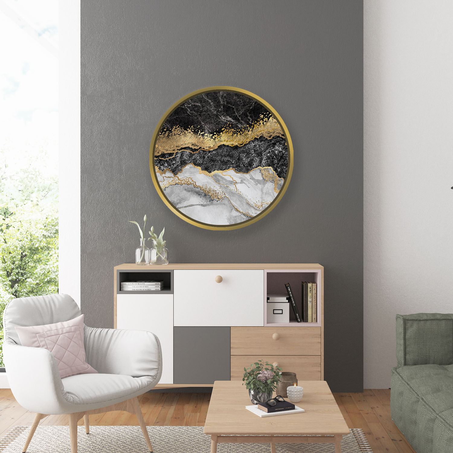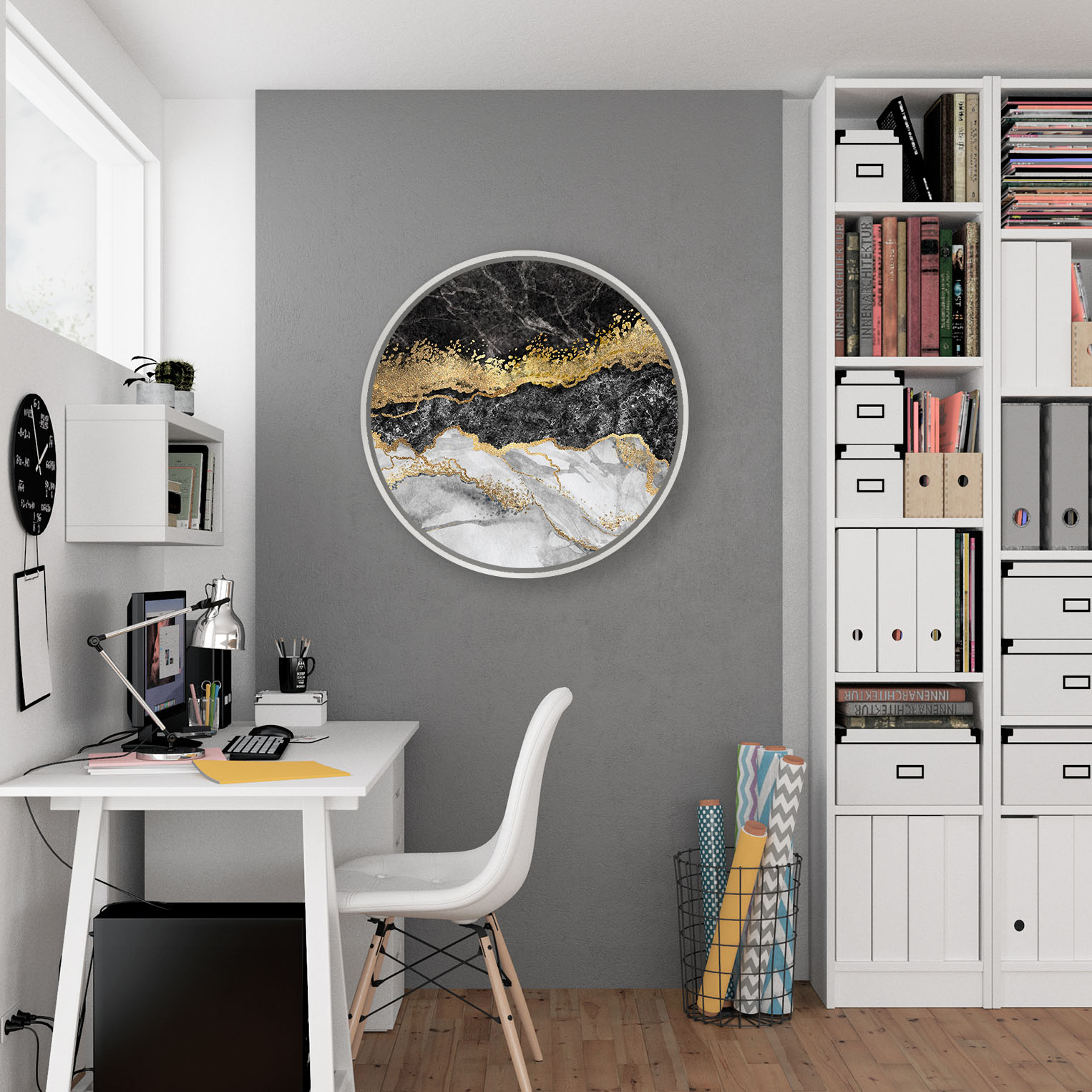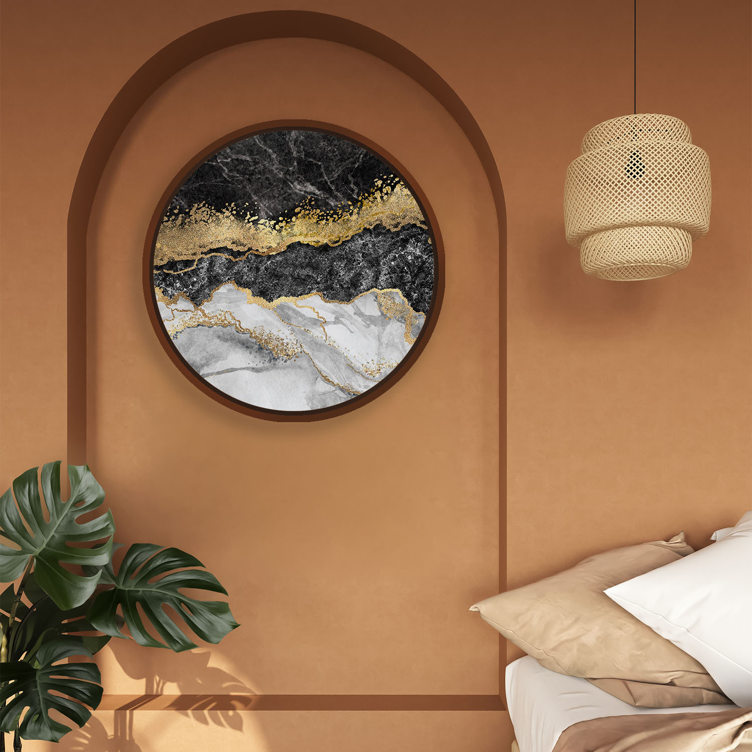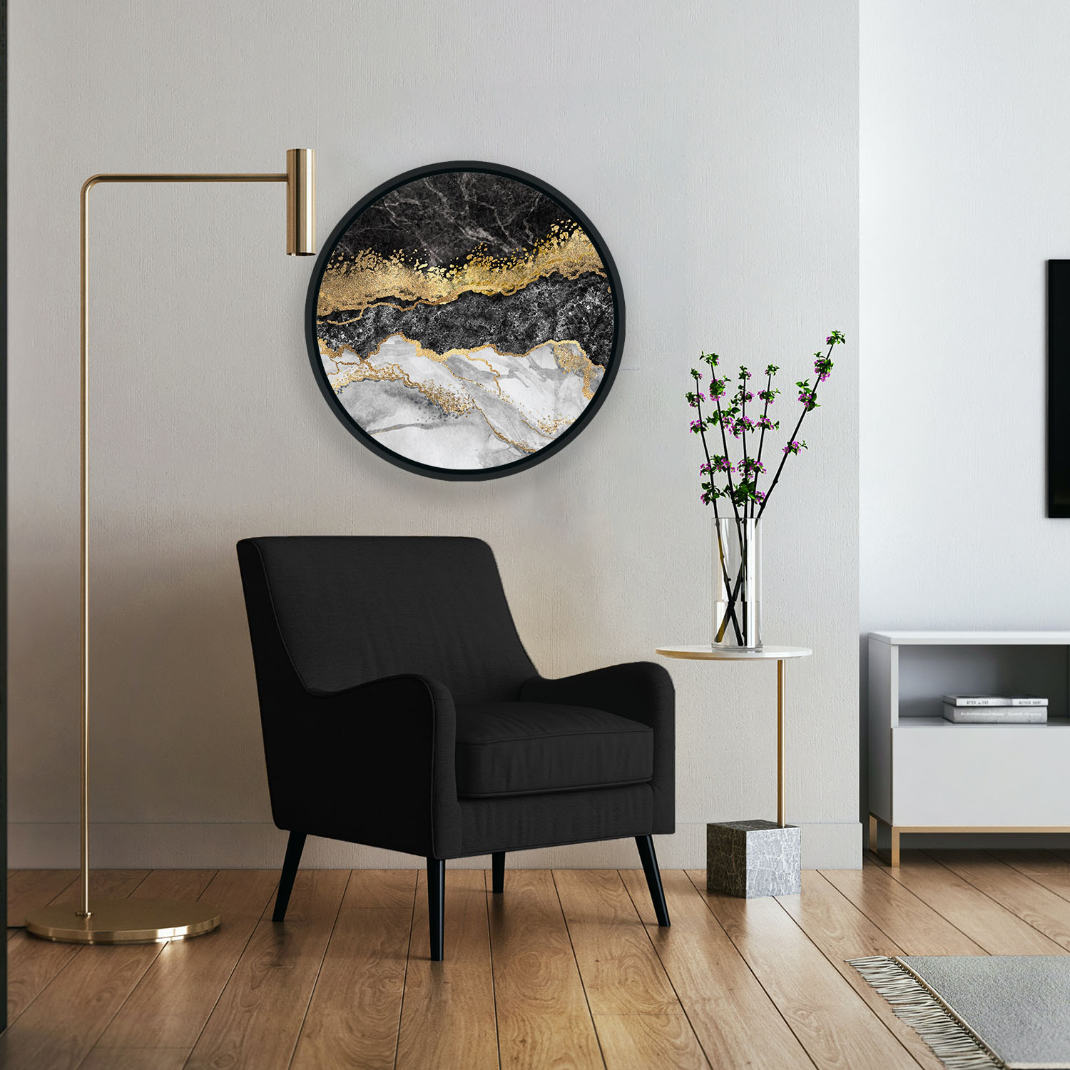 Black golden marble abstract – Round Wooden Art Frames