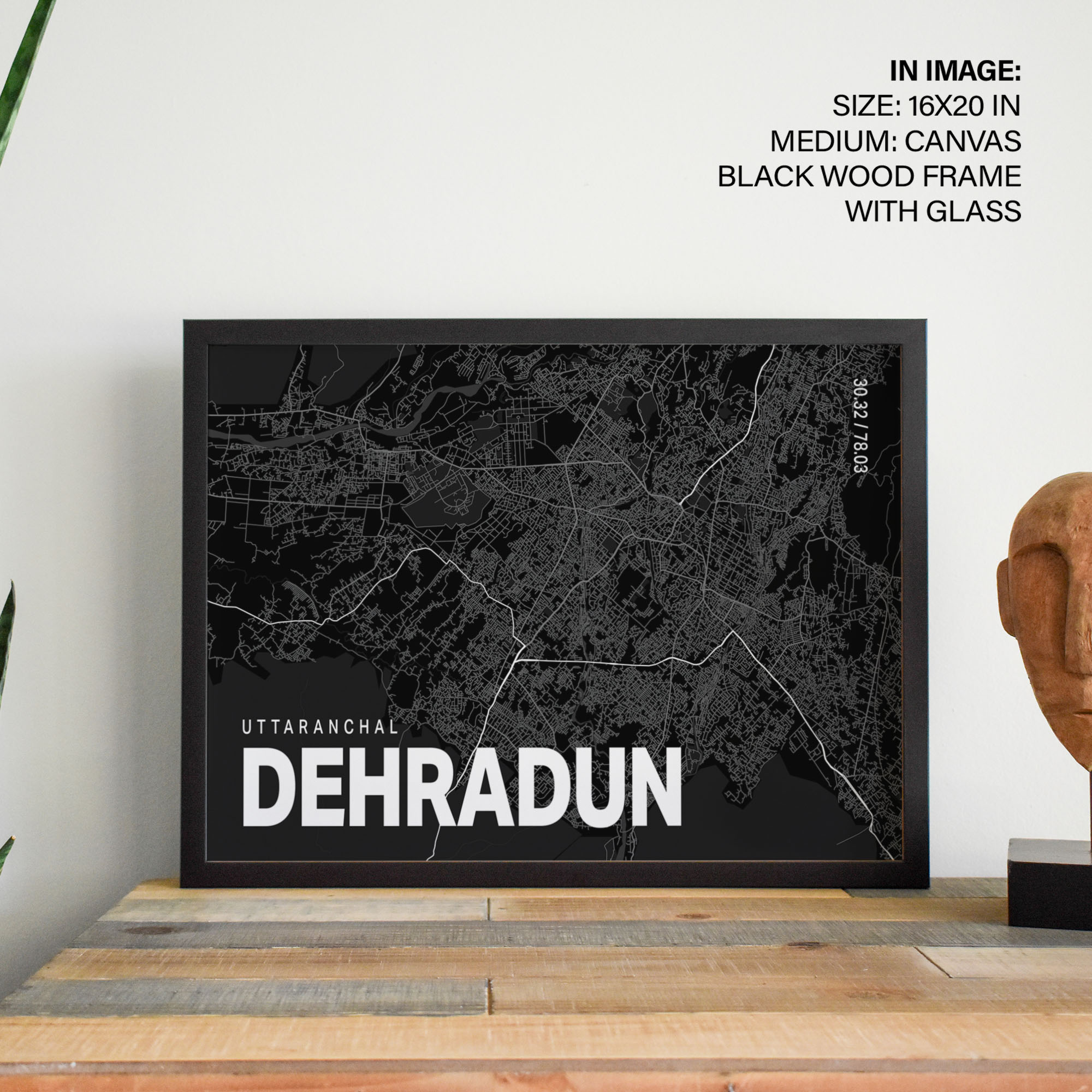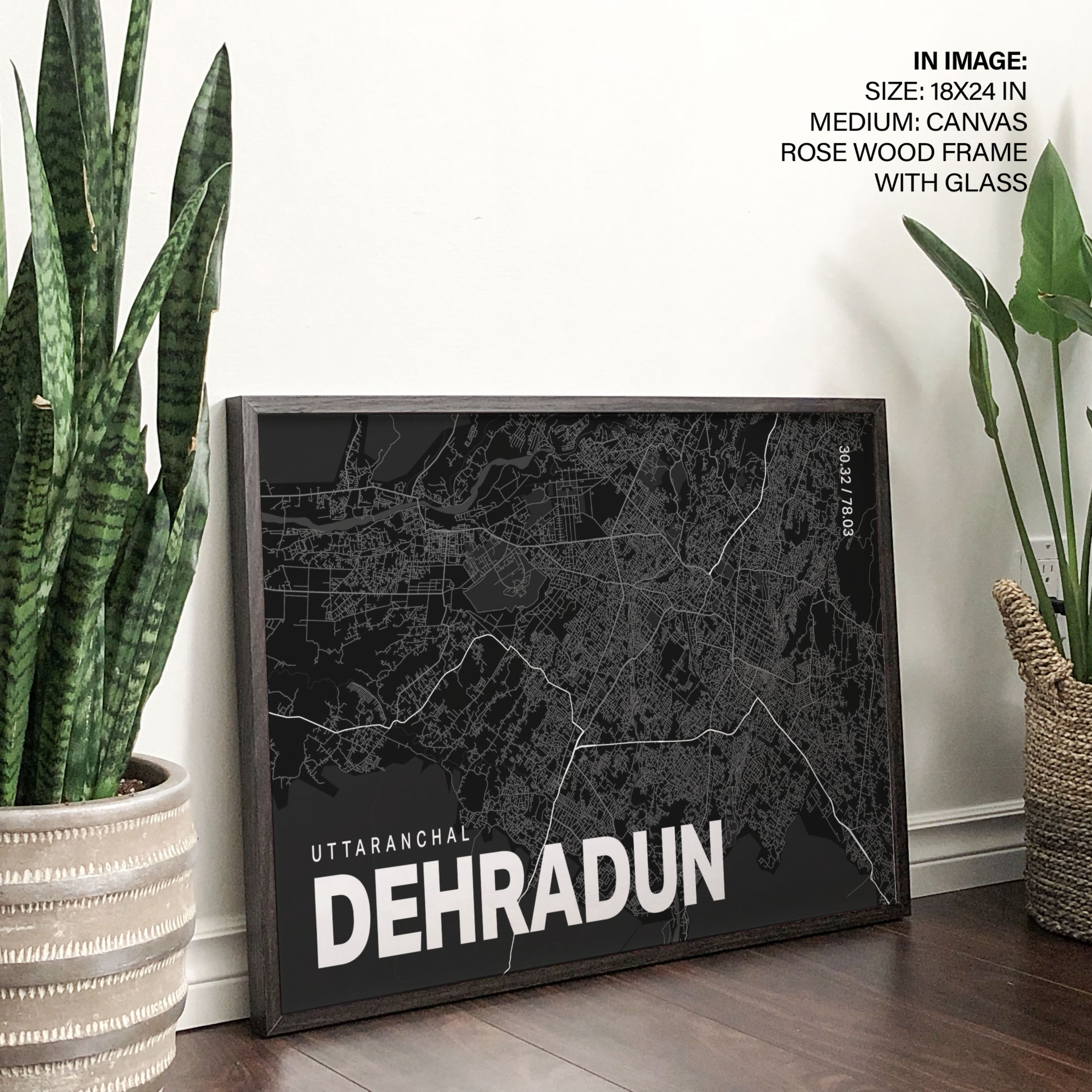 Black poster map of dehradun