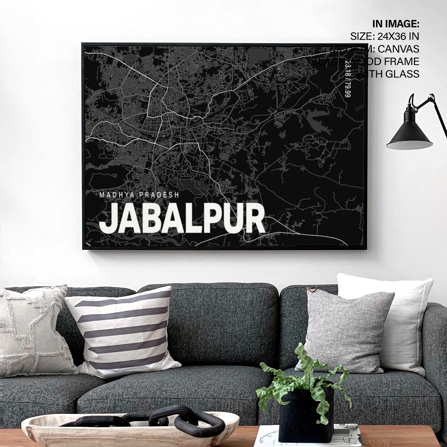 Black poster map of jabalpur