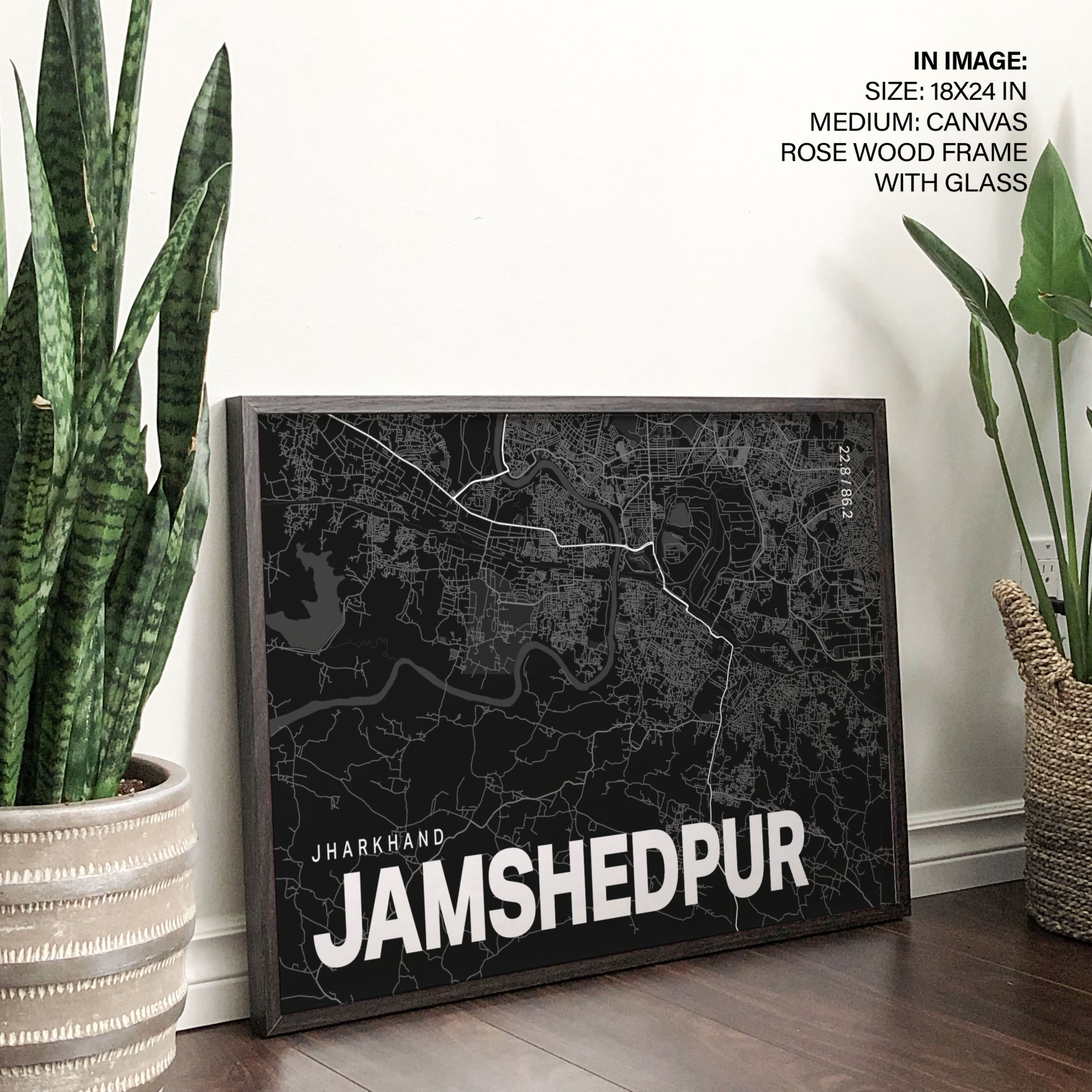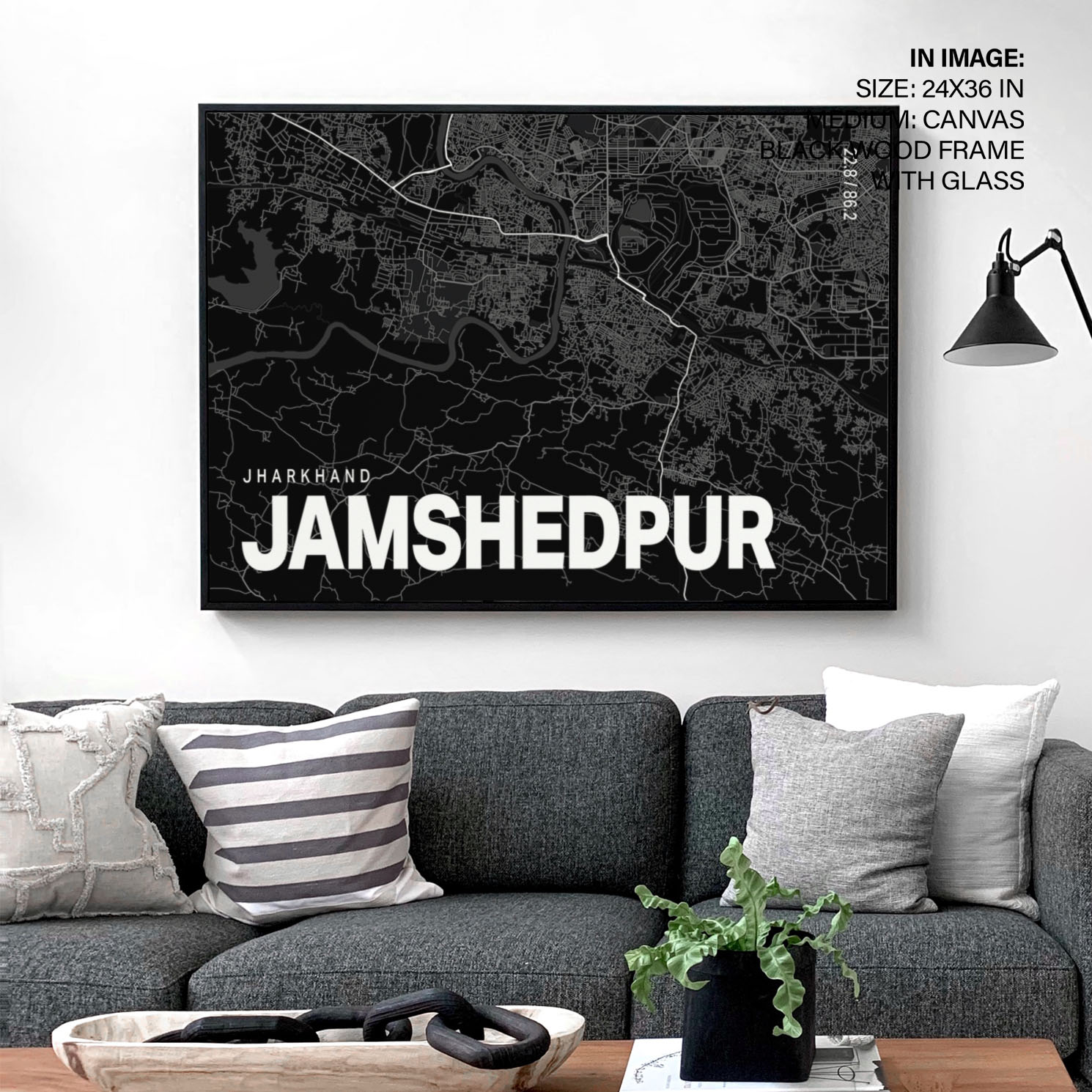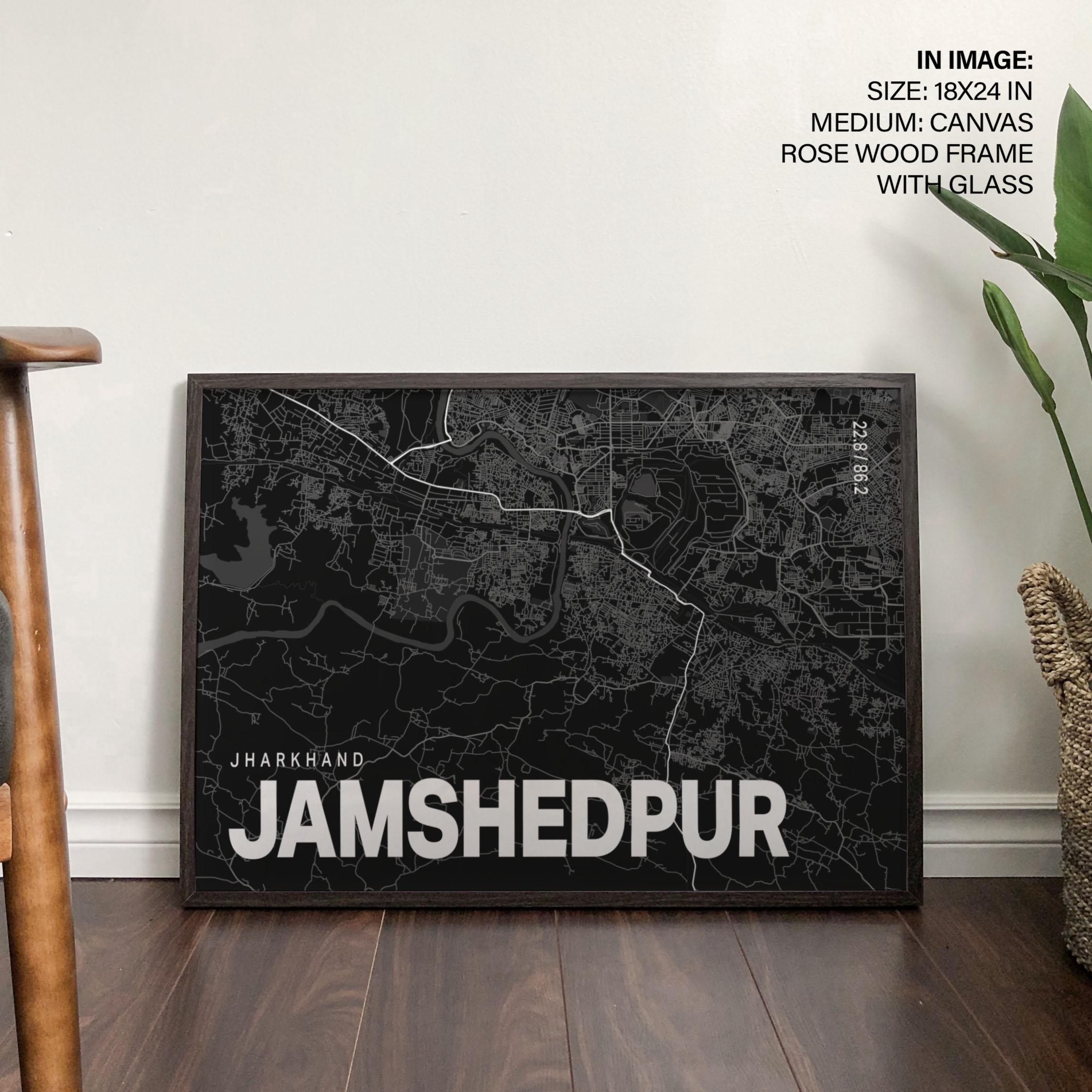 Black poster map of jamshedpur