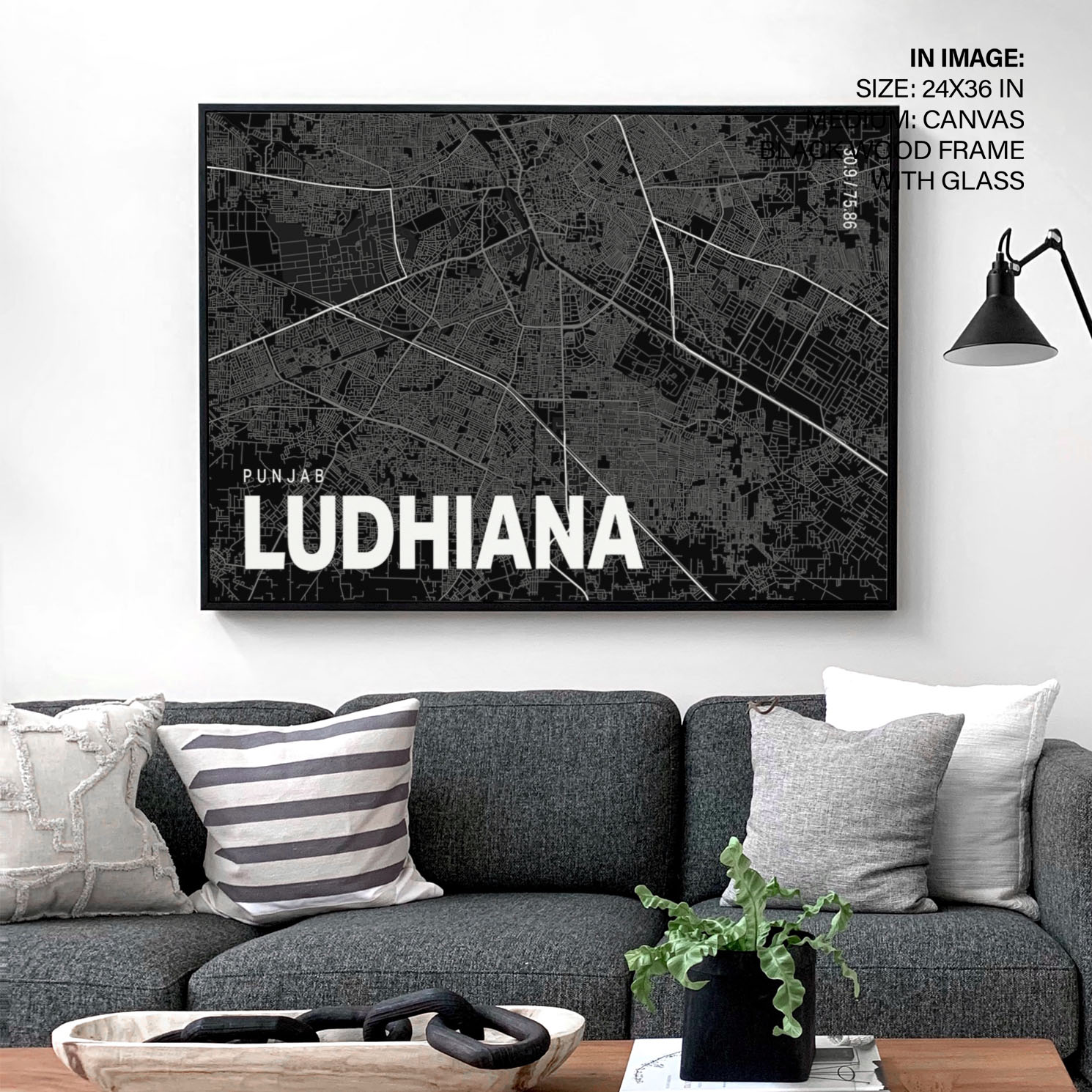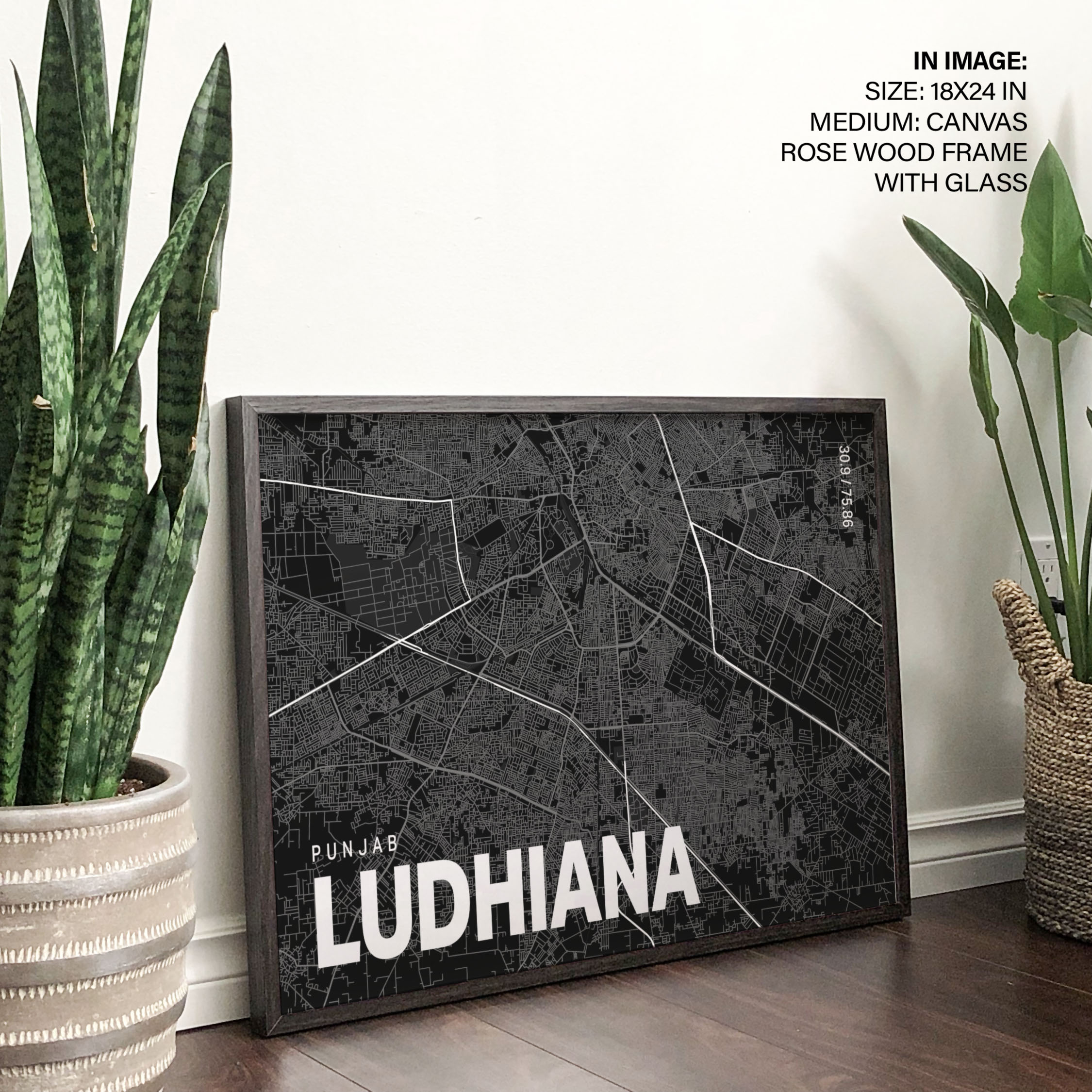Black poster map of ludhiana