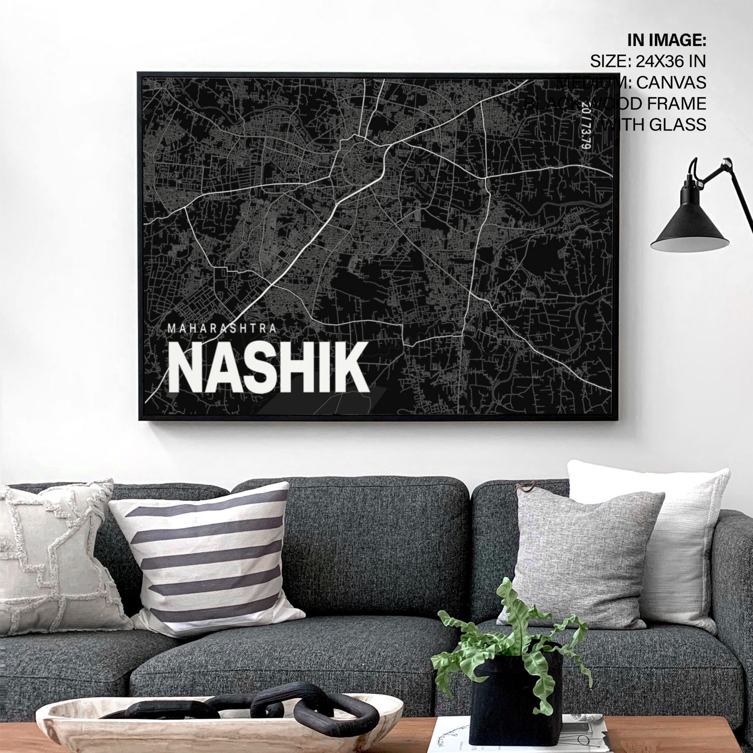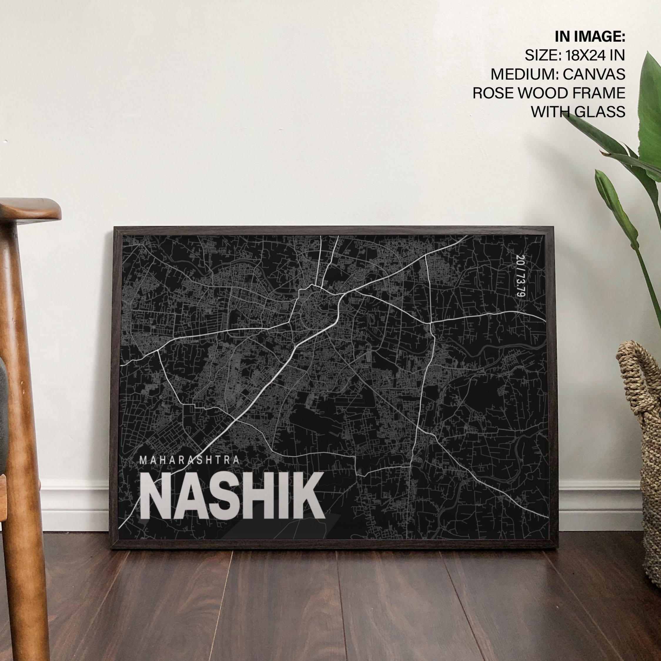 Black poster map of nashik