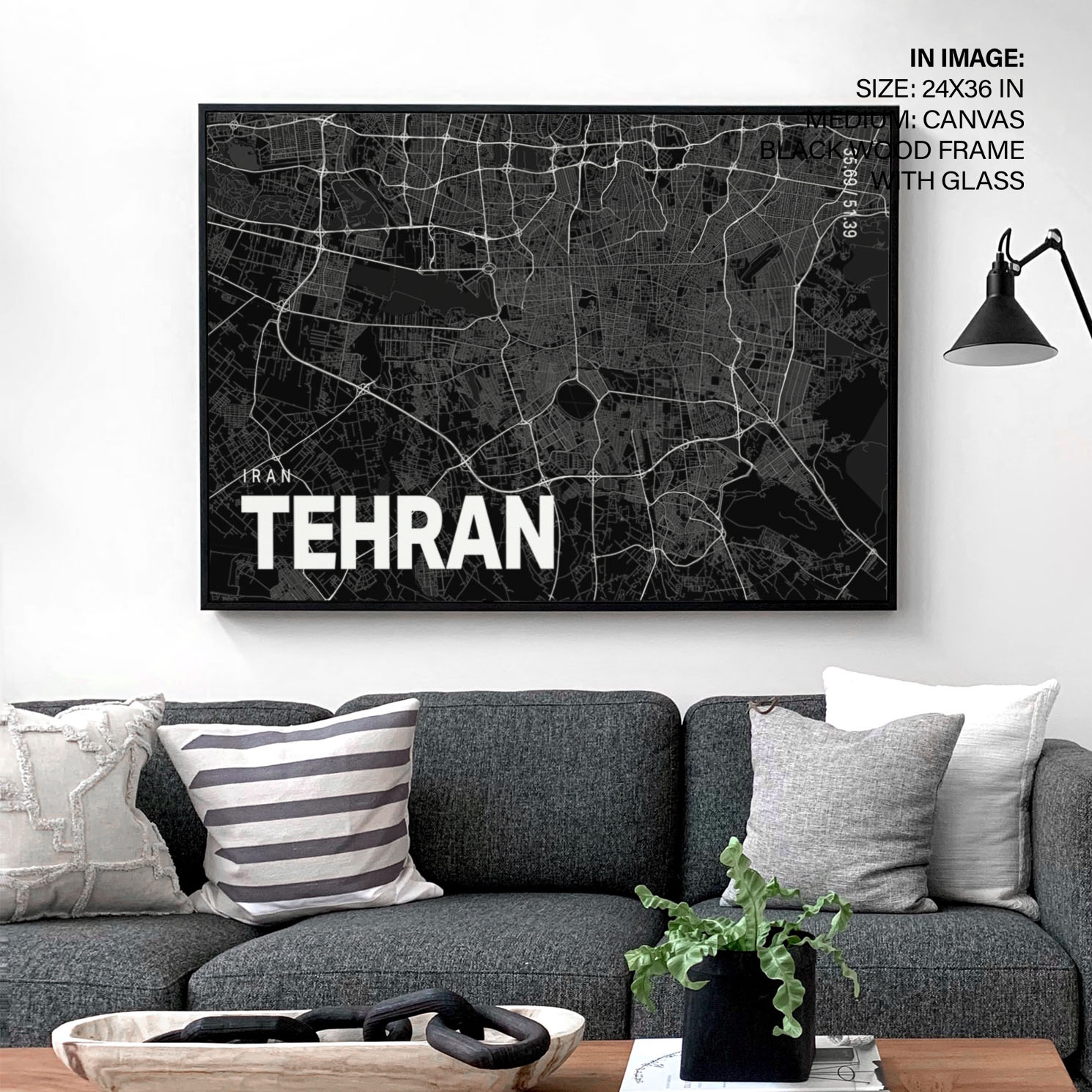 Black poster map of tehran