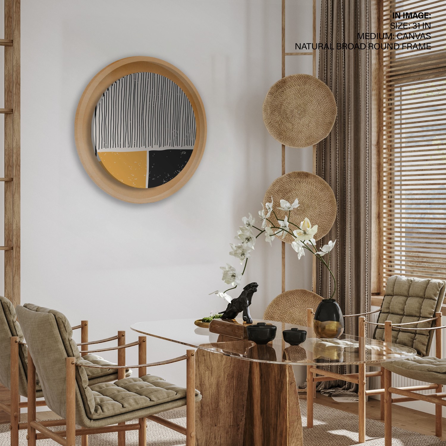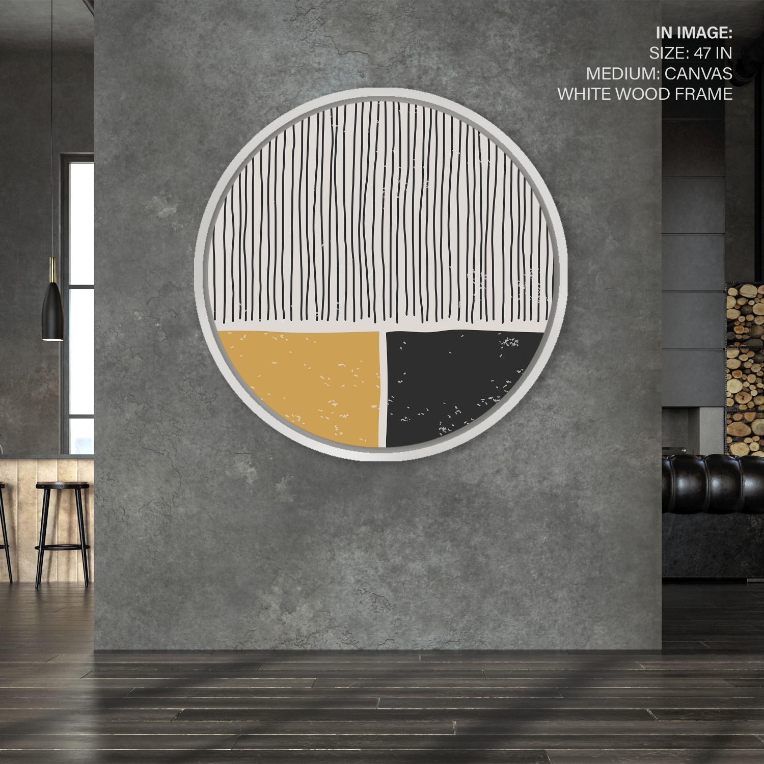 black yellow trendy line abstract – Circular Wooden Frames