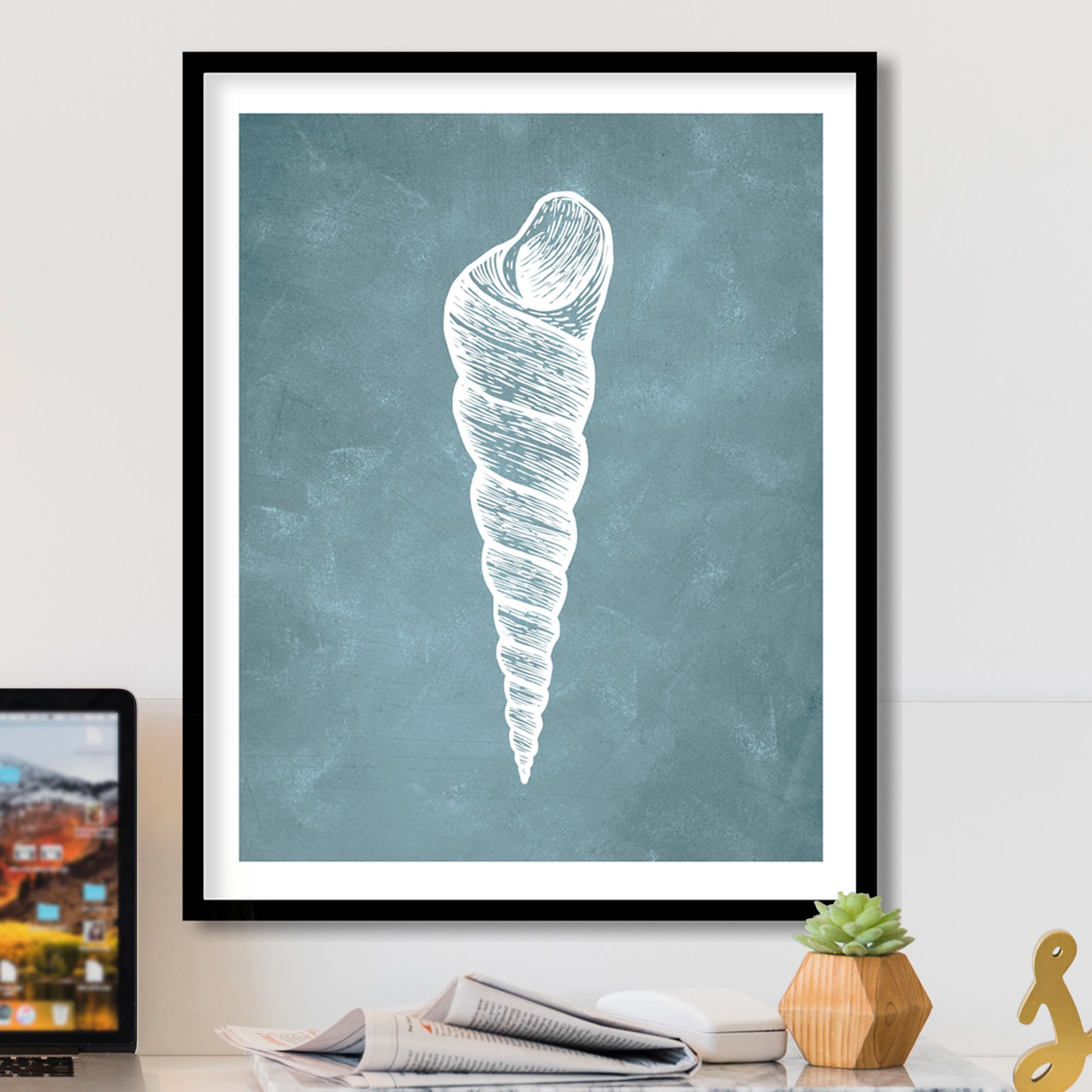 1 review for Blue hand drawn seashell #10
