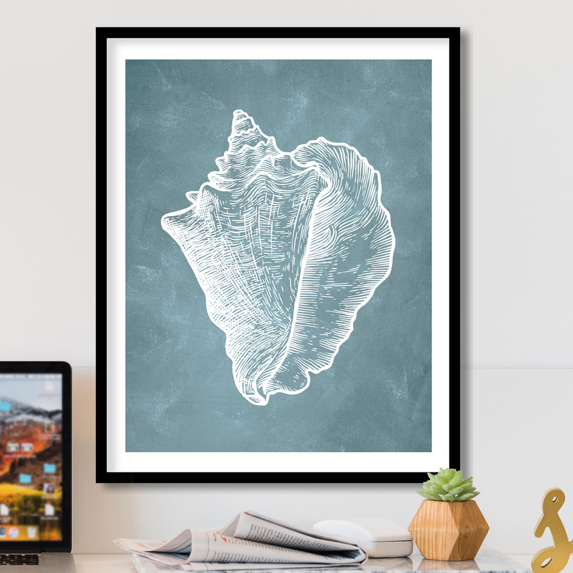 1 review for Blue hand drawn seashell #11