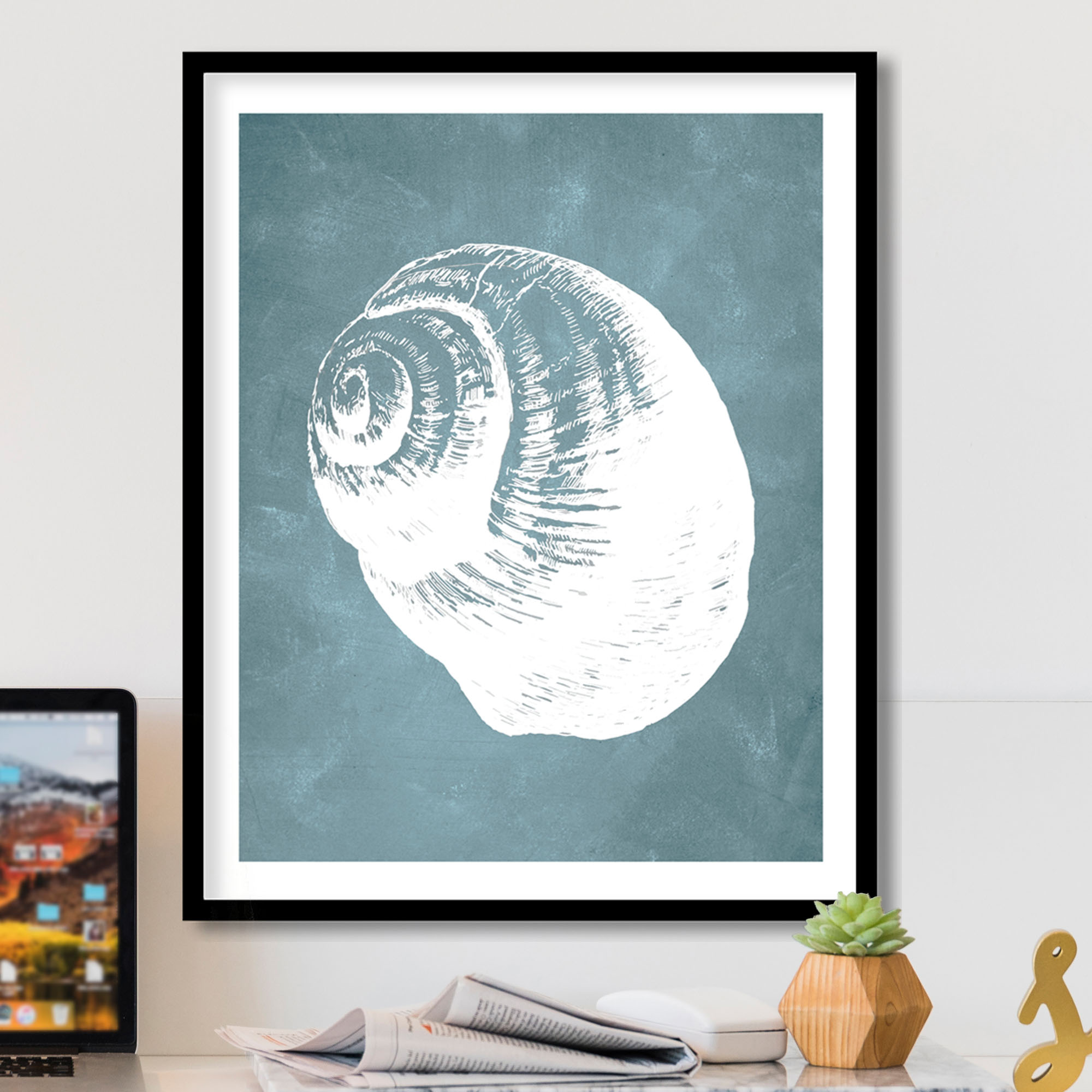 1 review for Blue hand drawn seashell #25