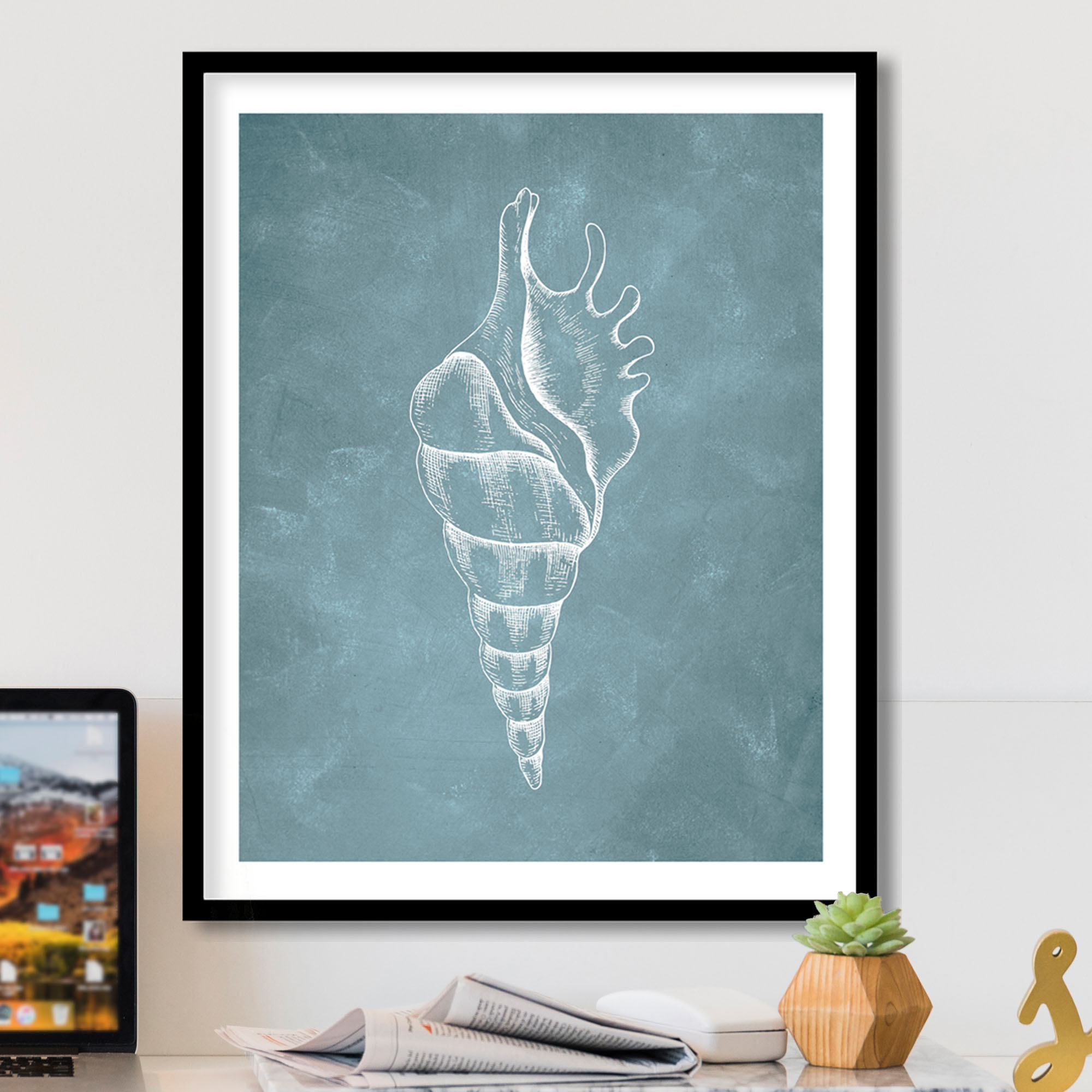 1 review for Blue hand drawn seashell #32