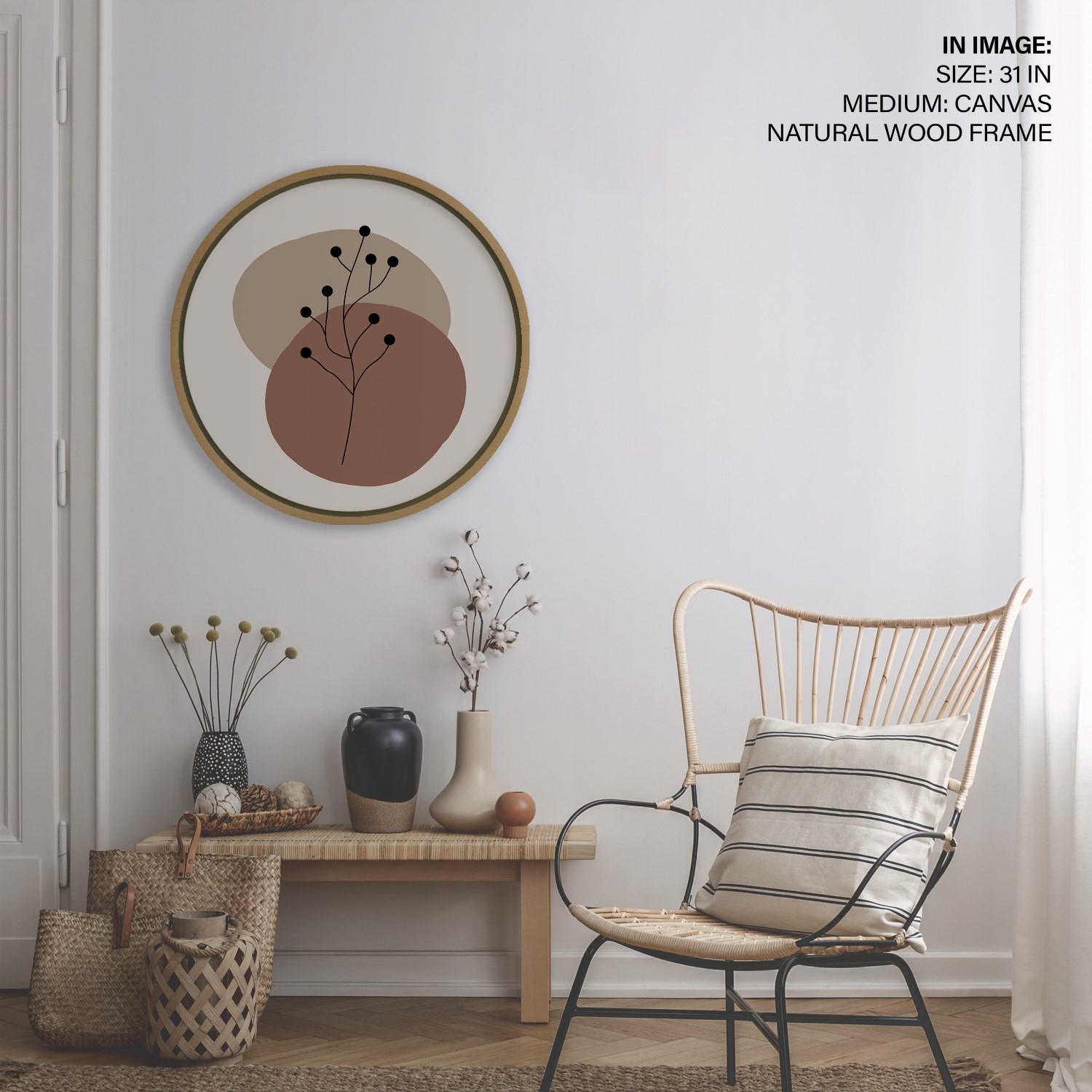 Bohemian line drawing leaves #221 – Circular Wooden Frame