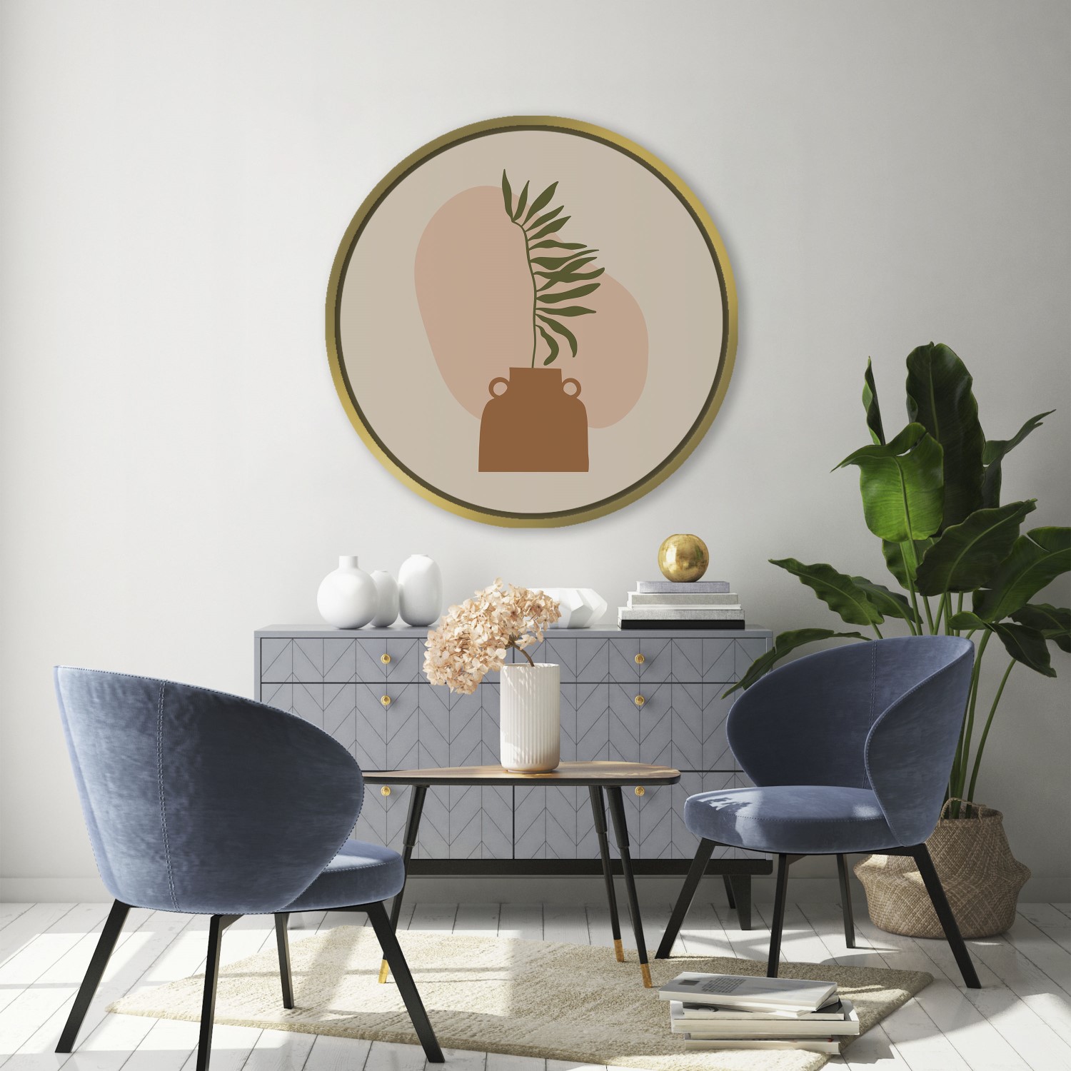 Boho botanical shapes – Circular Wooden Frame
