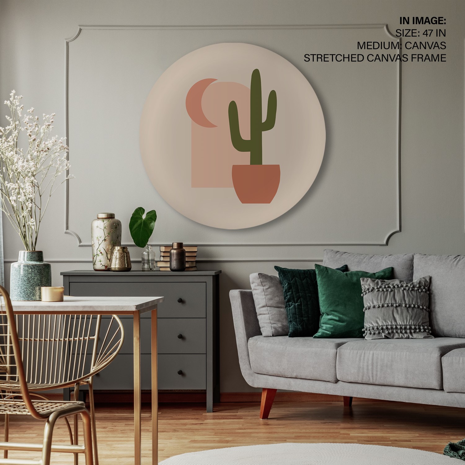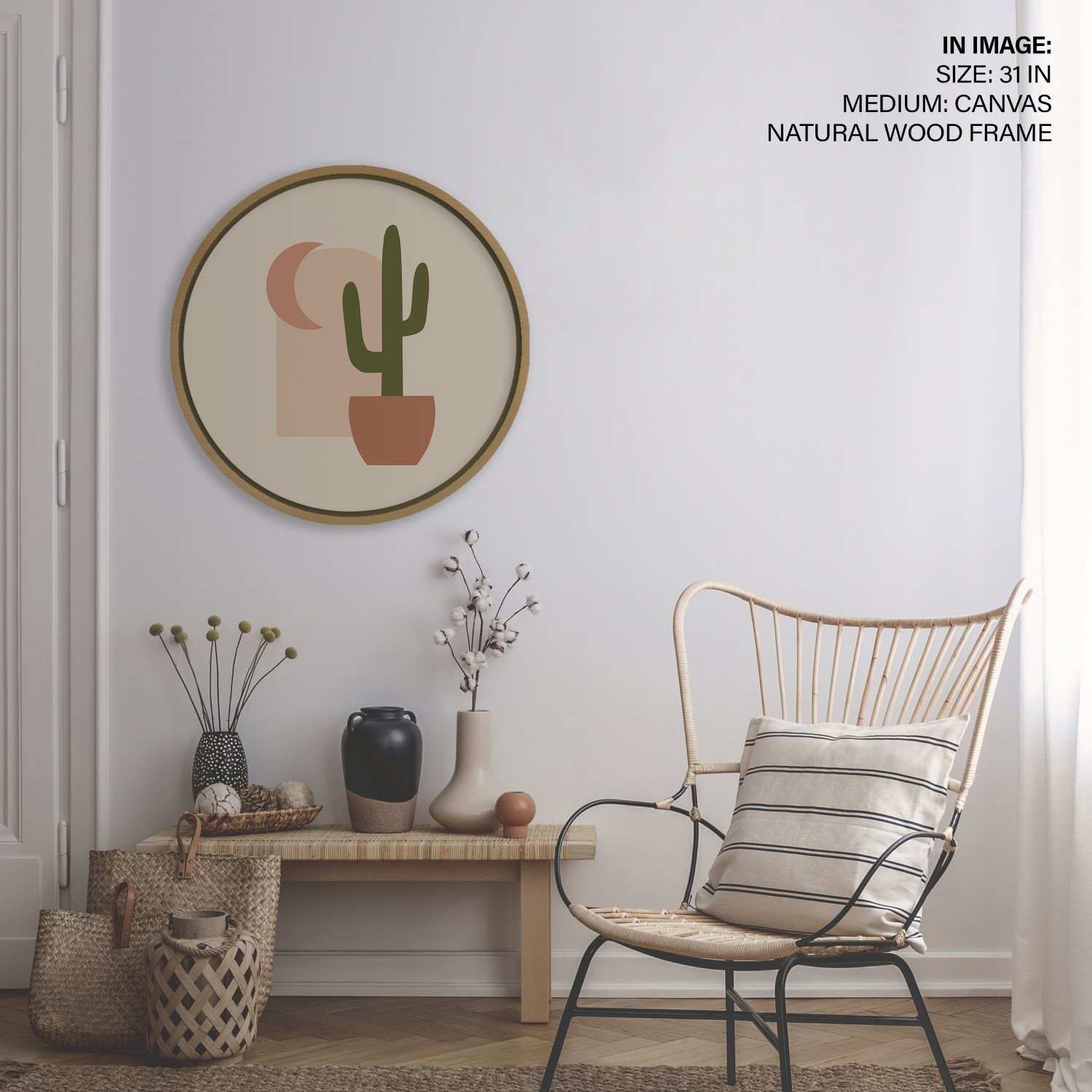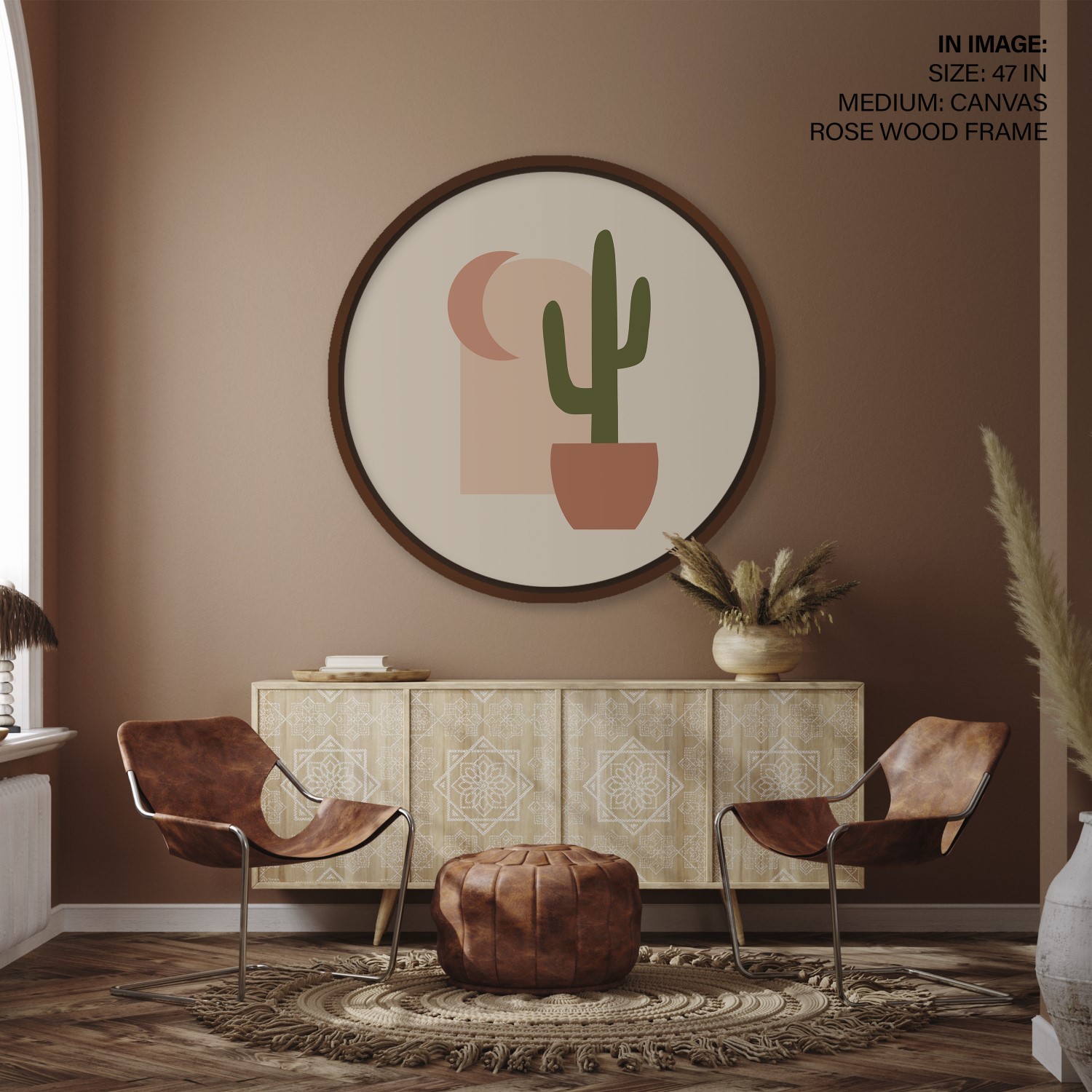Boho cactus abstract – Circular Wooden Frame