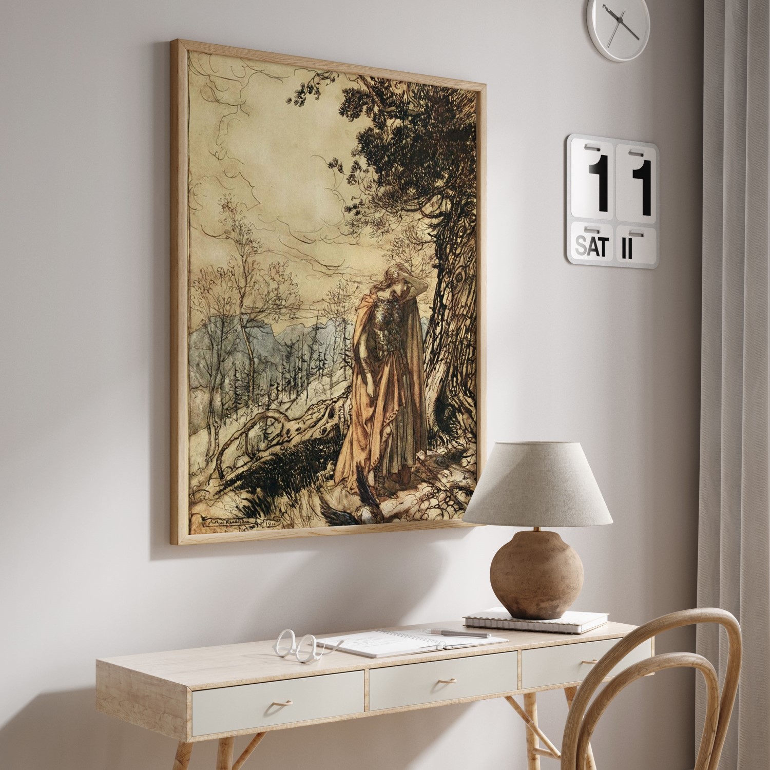 Be the first to review “Brünnhilde stands for a long time dazed and alarmed by Arthur Rackham (Date Unknown)”