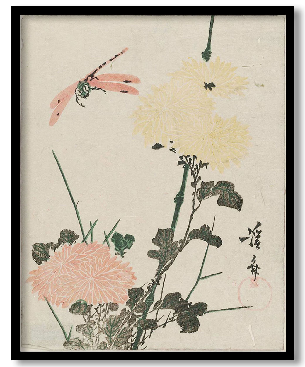 Chrysanthemums and Dragonfly by Keisai Eisen (Date Unknown)