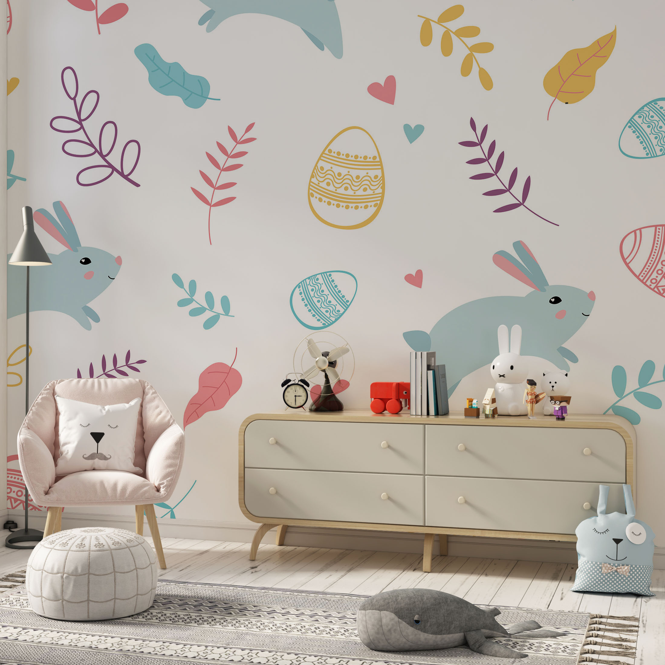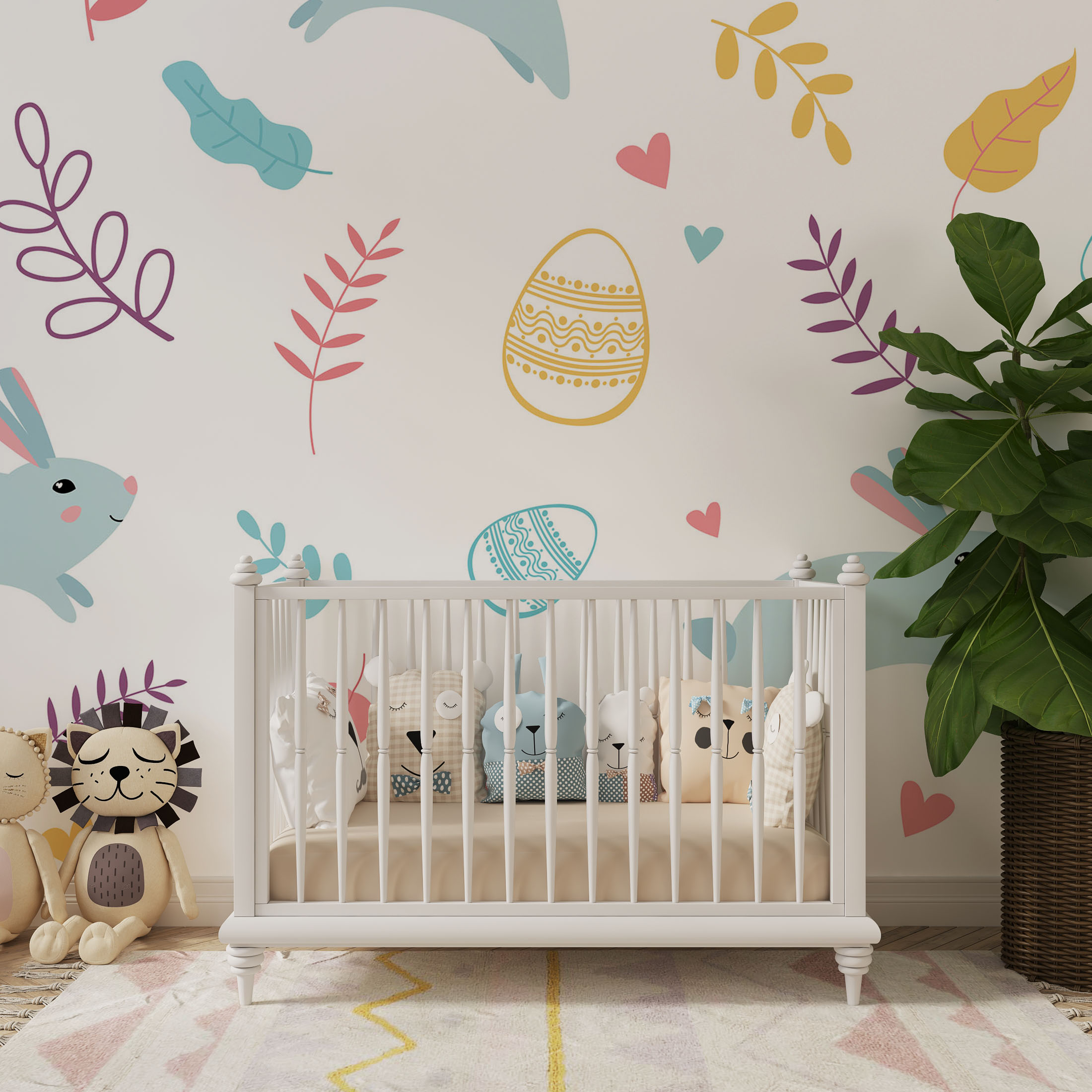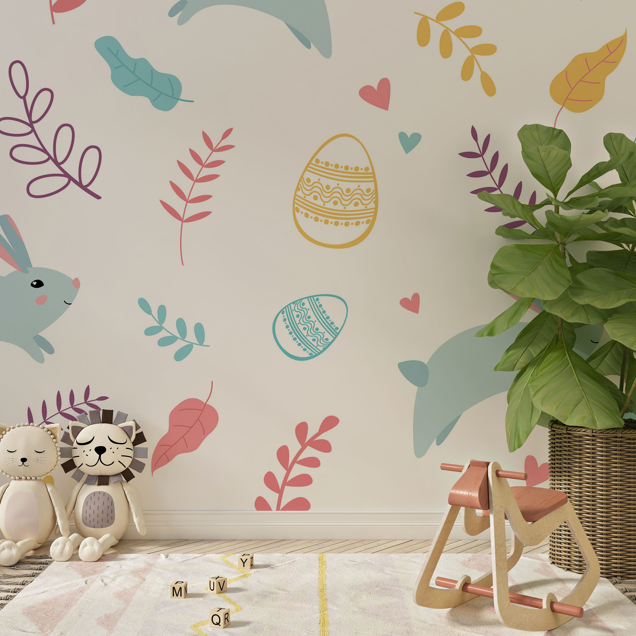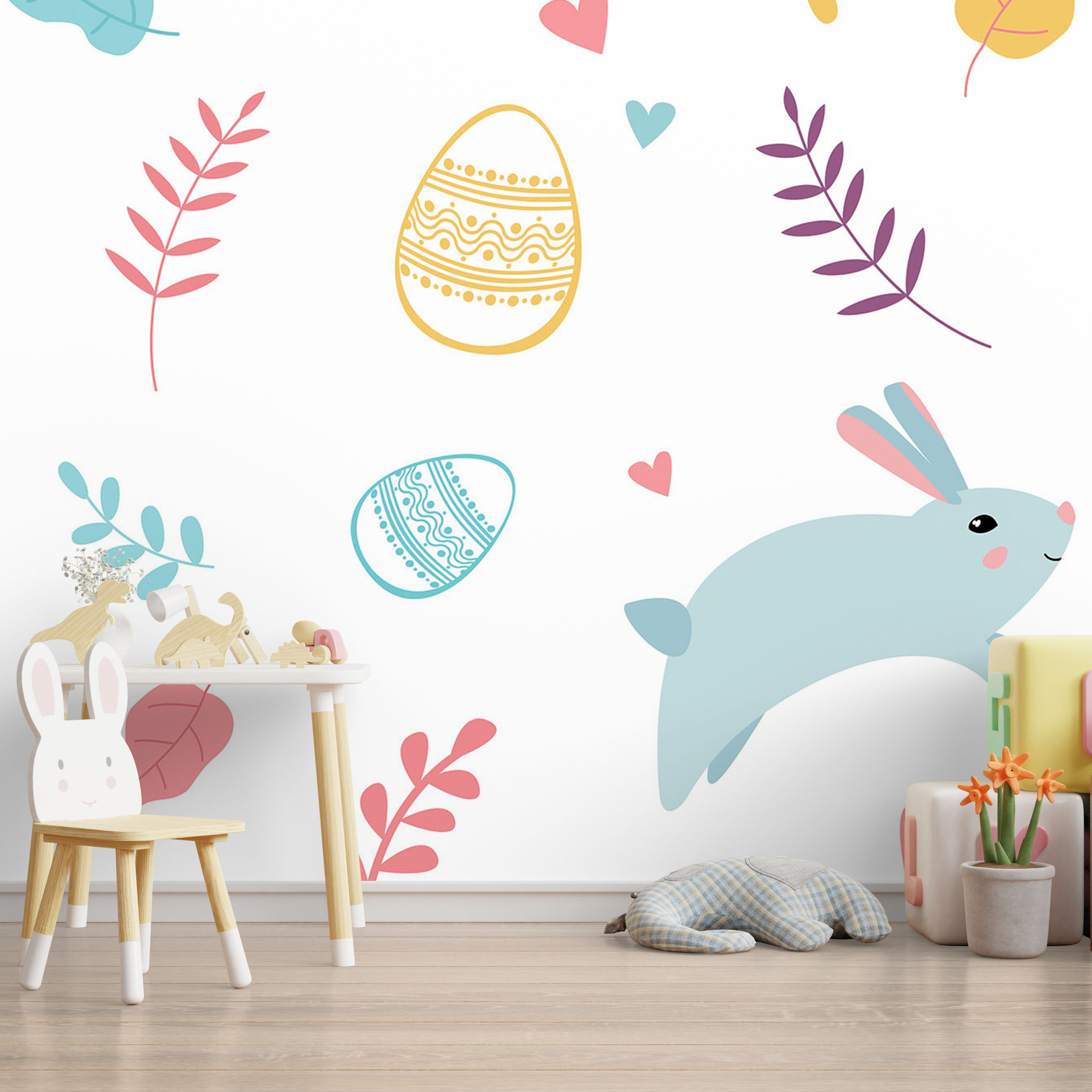 Cute colorful rabbit and botanical