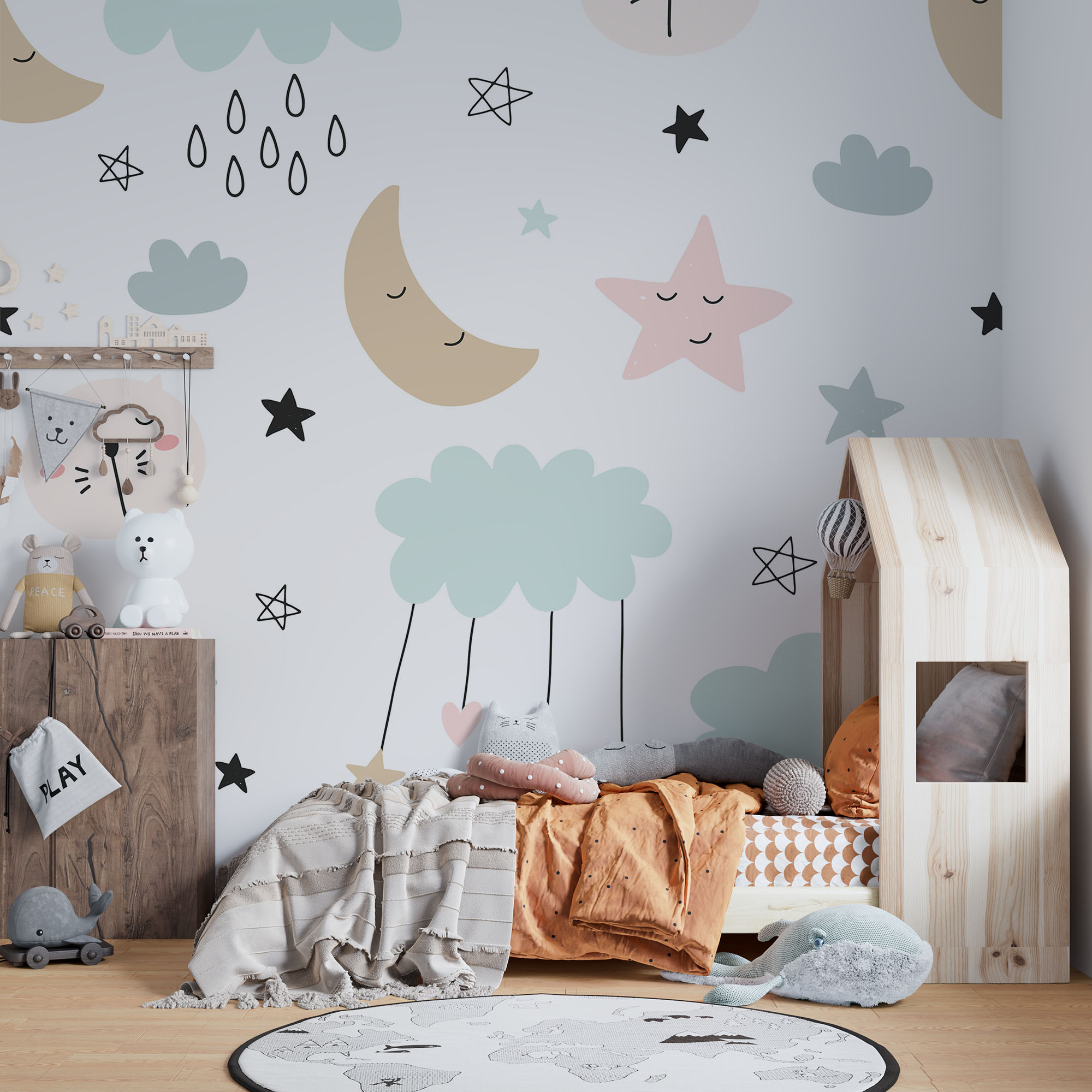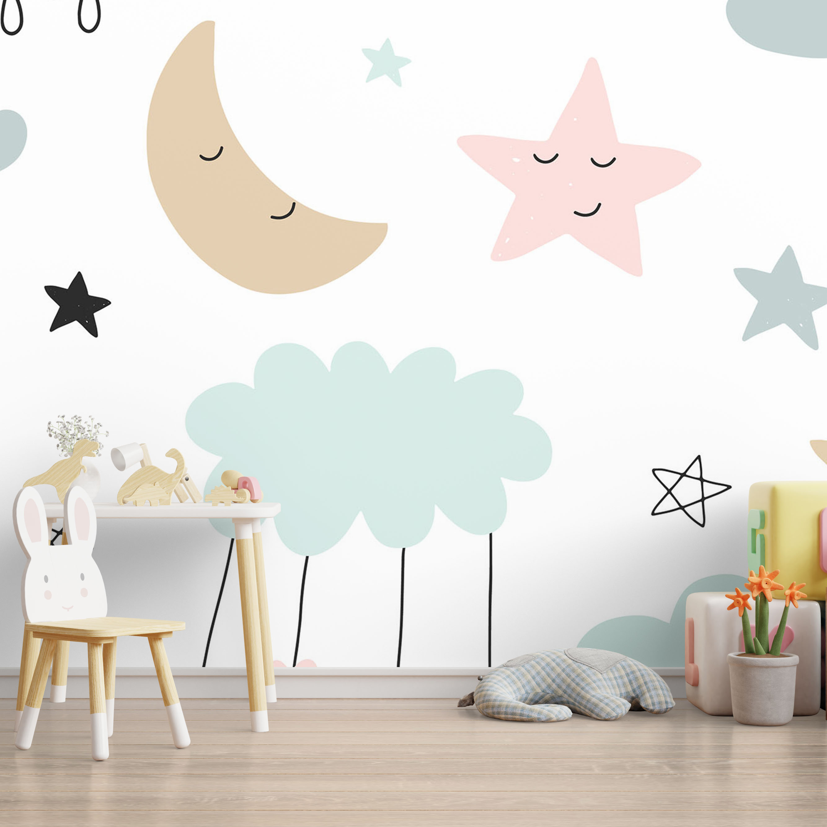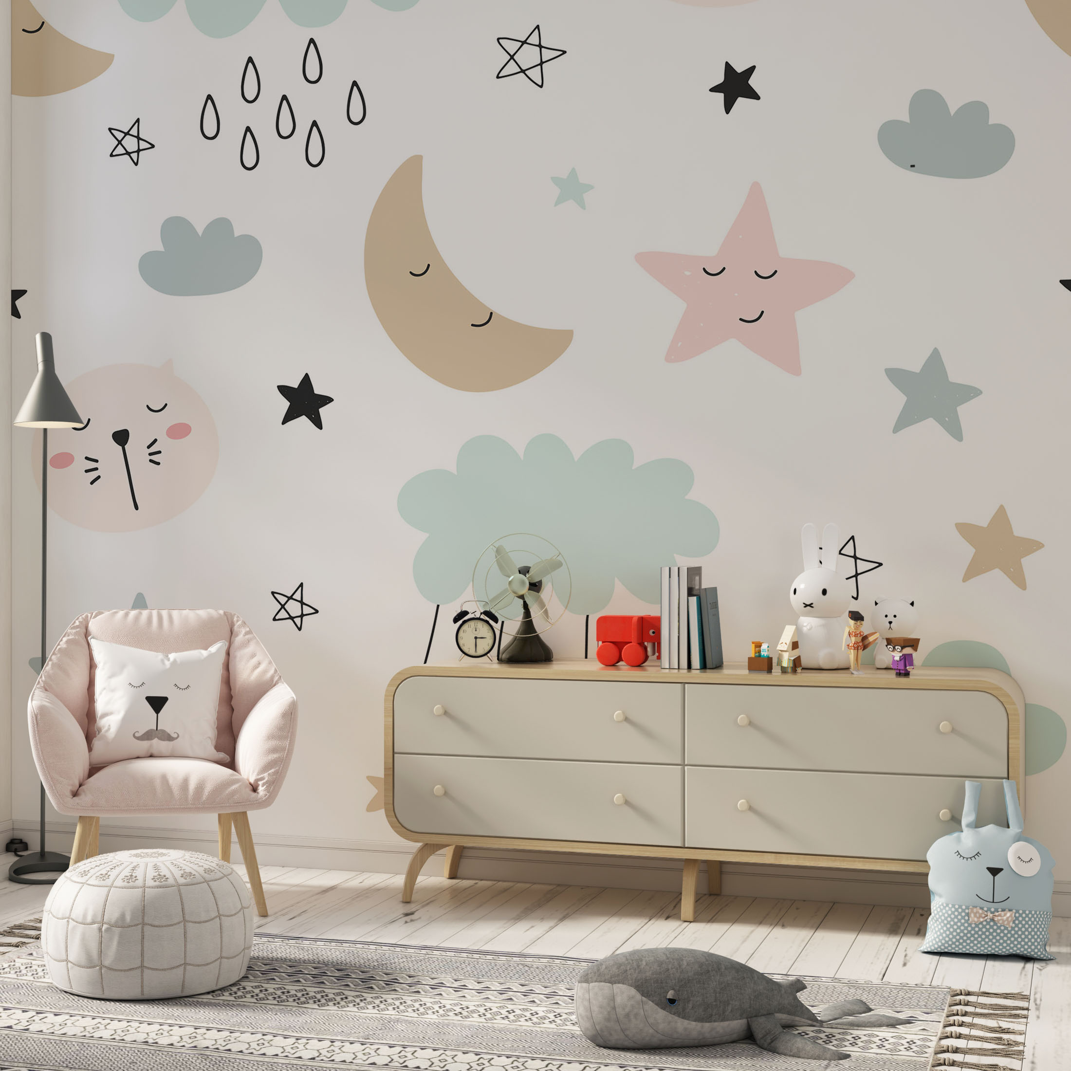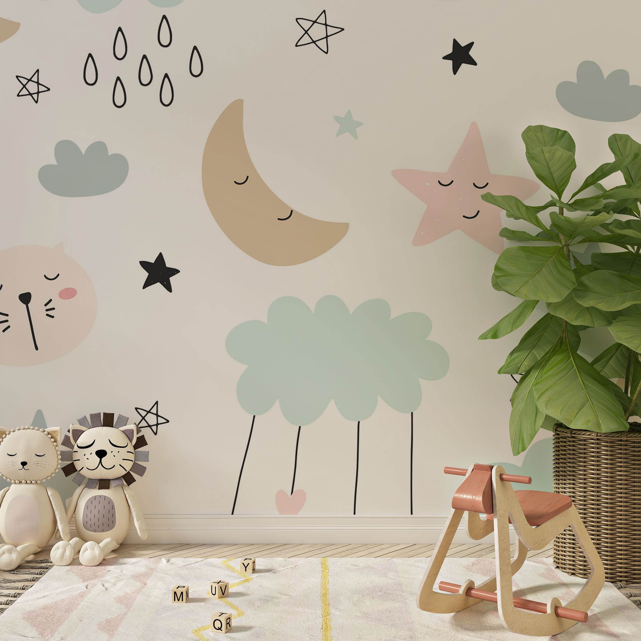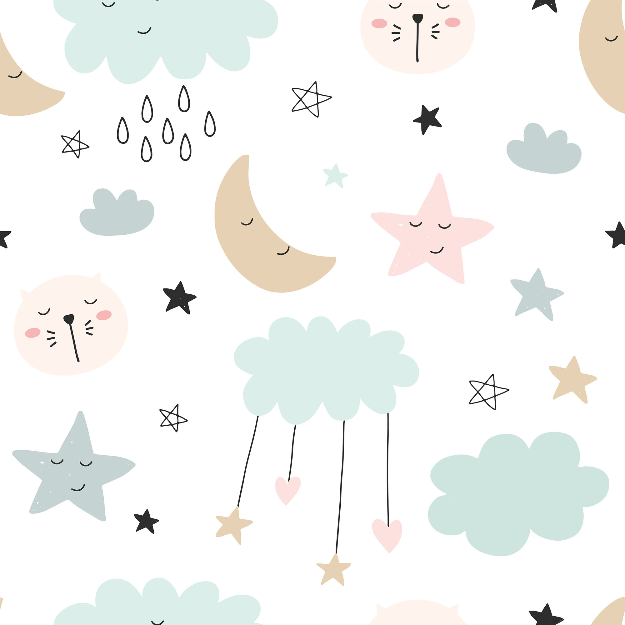 Cute sleeping animals moon and stars