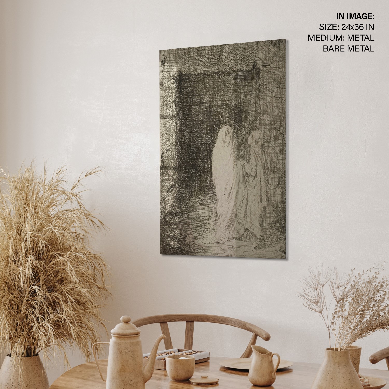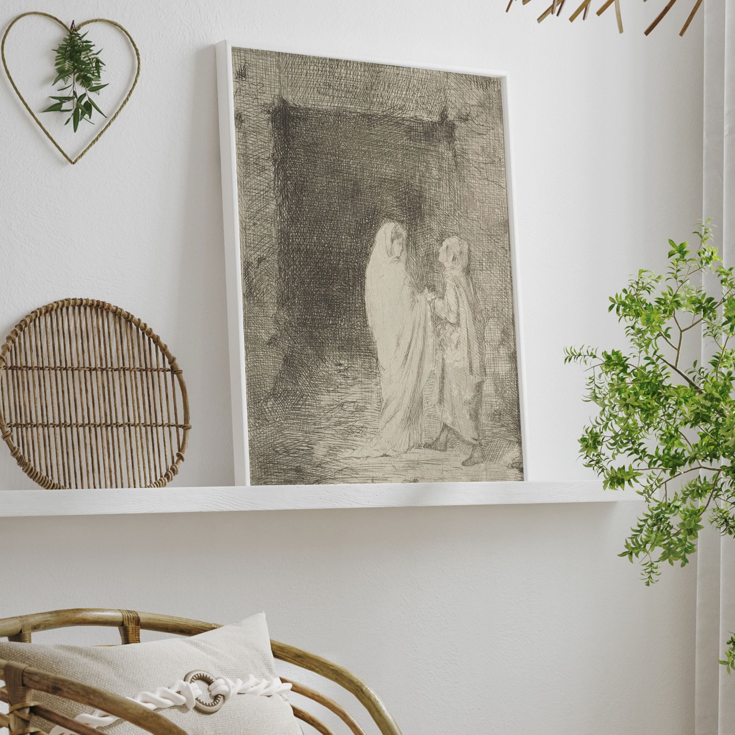 Dante and Virgil is an etching and drypoint print created by Edgar Degas in 1857. The print depicts the two characters from Dante Alighieri’s Divine Comedy, Dante and Virgil, in a dark and eerie landscape. The plate measures 4 5