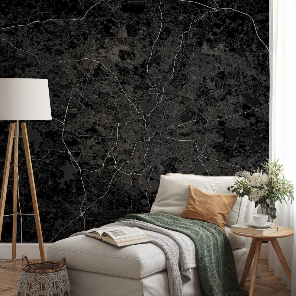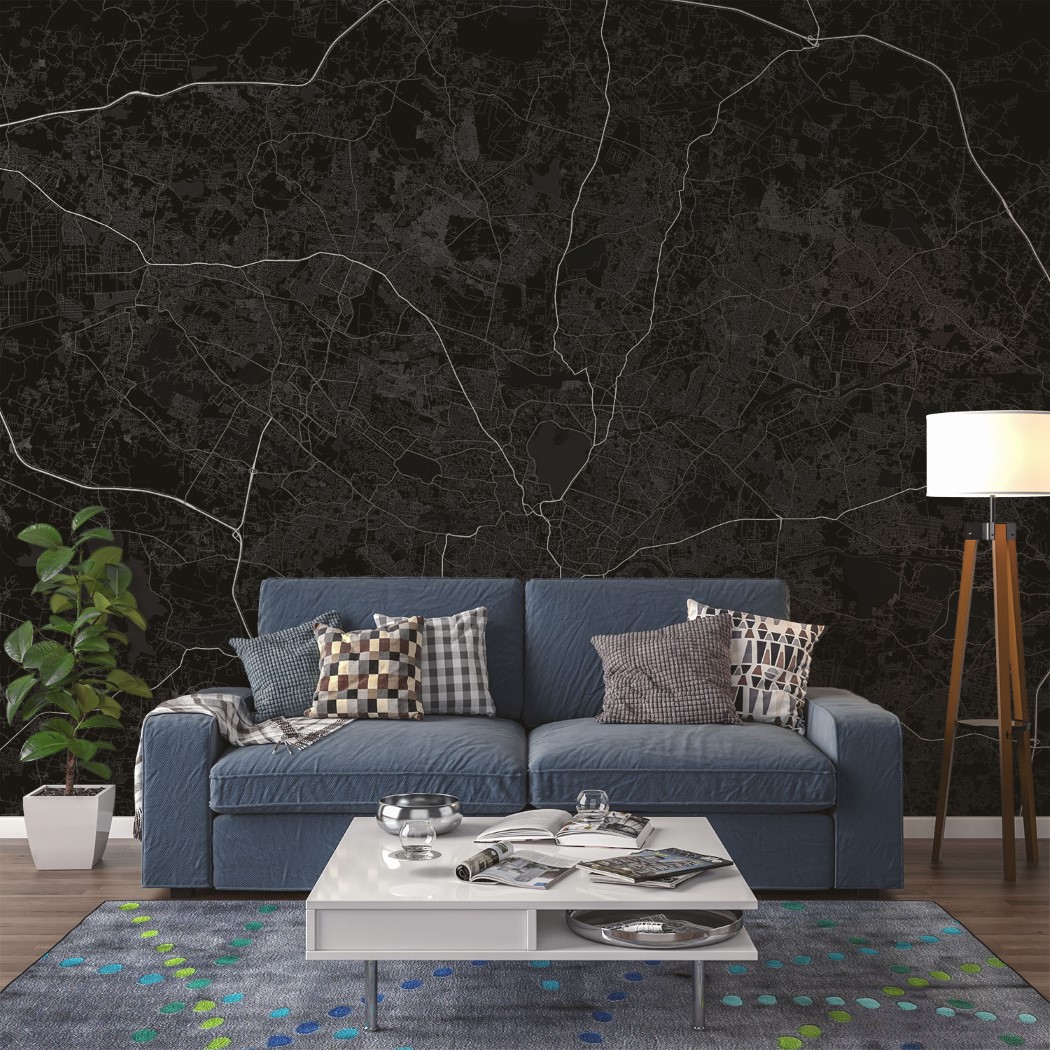 Hyderabad Map Wall Mural – Dark black, Mural Wallpaper, PVC Free, Non-Toxic