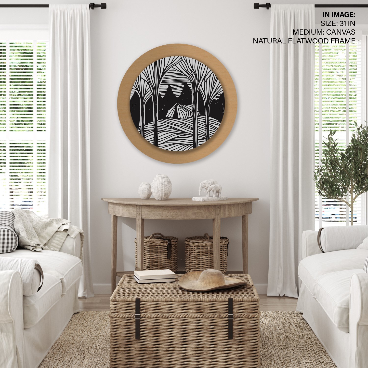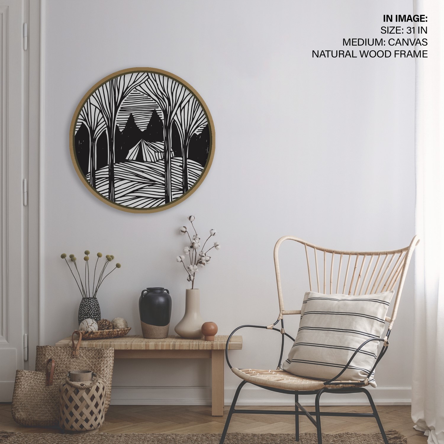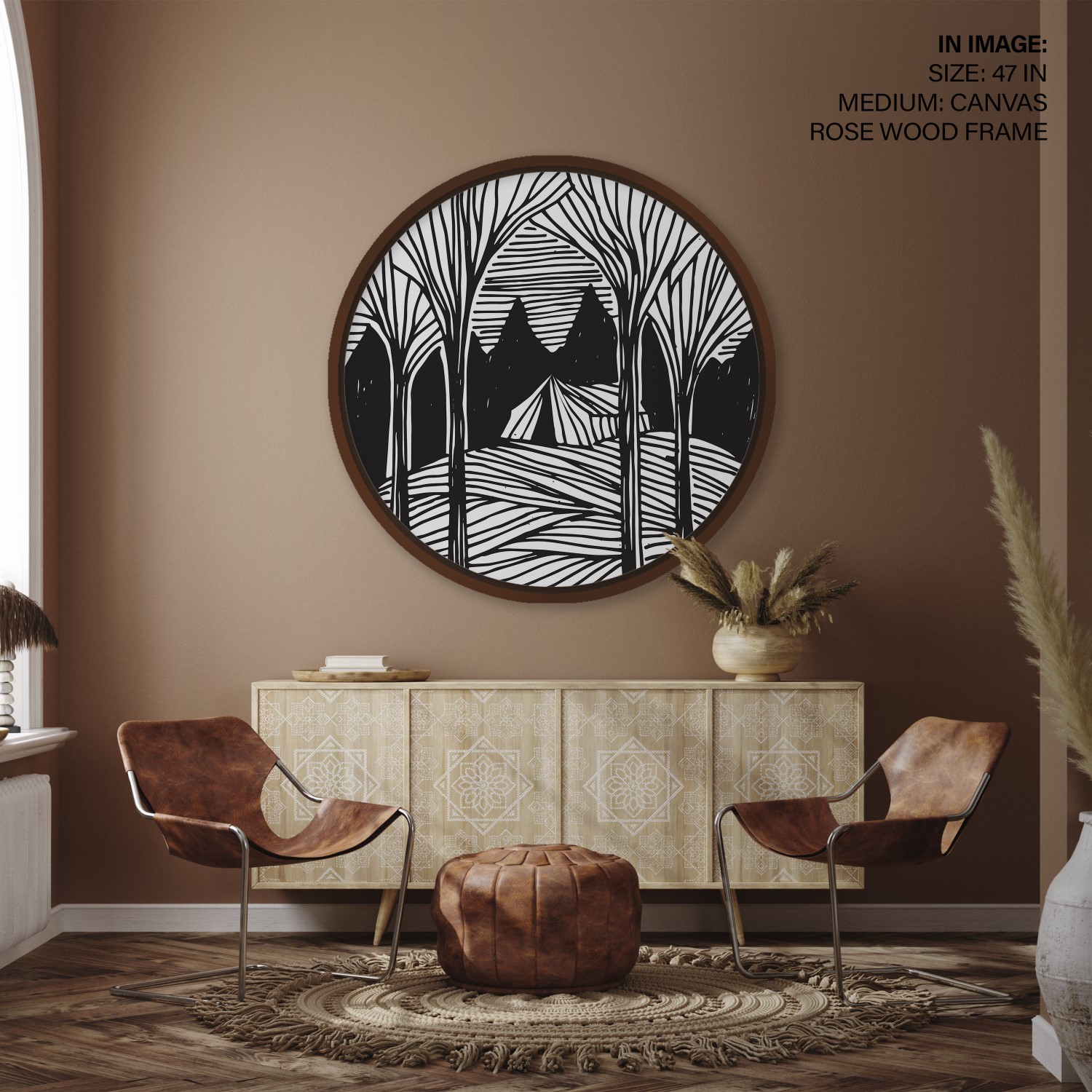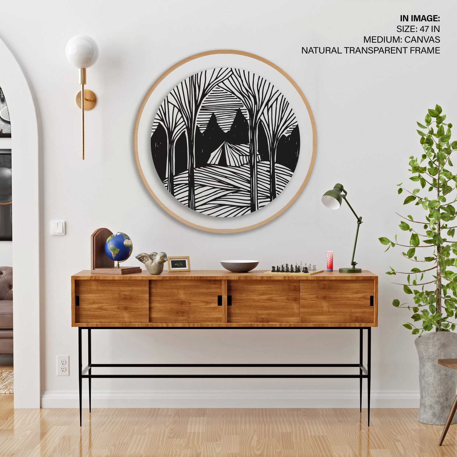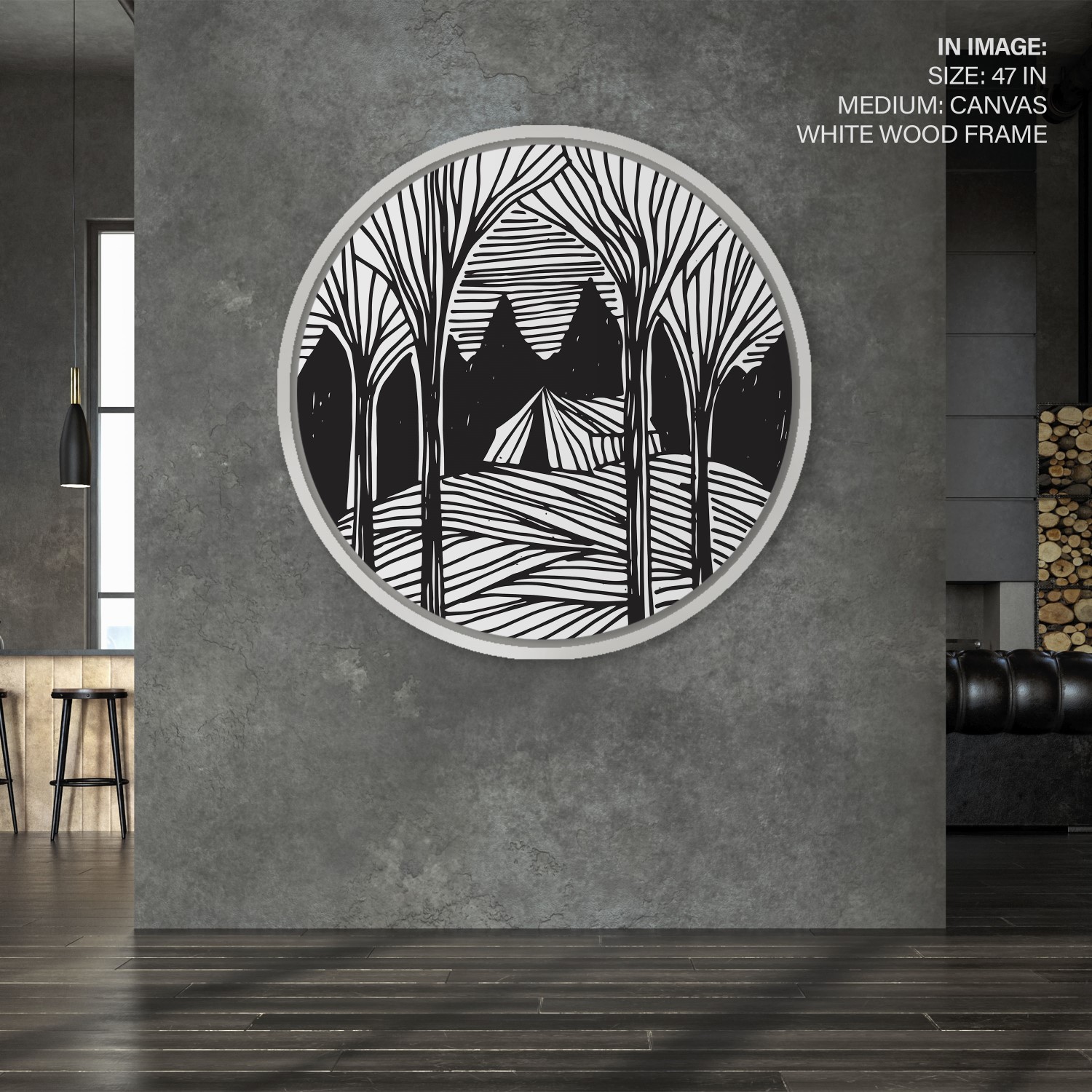 Dark forest trees landscape – Circular Wooden Frame