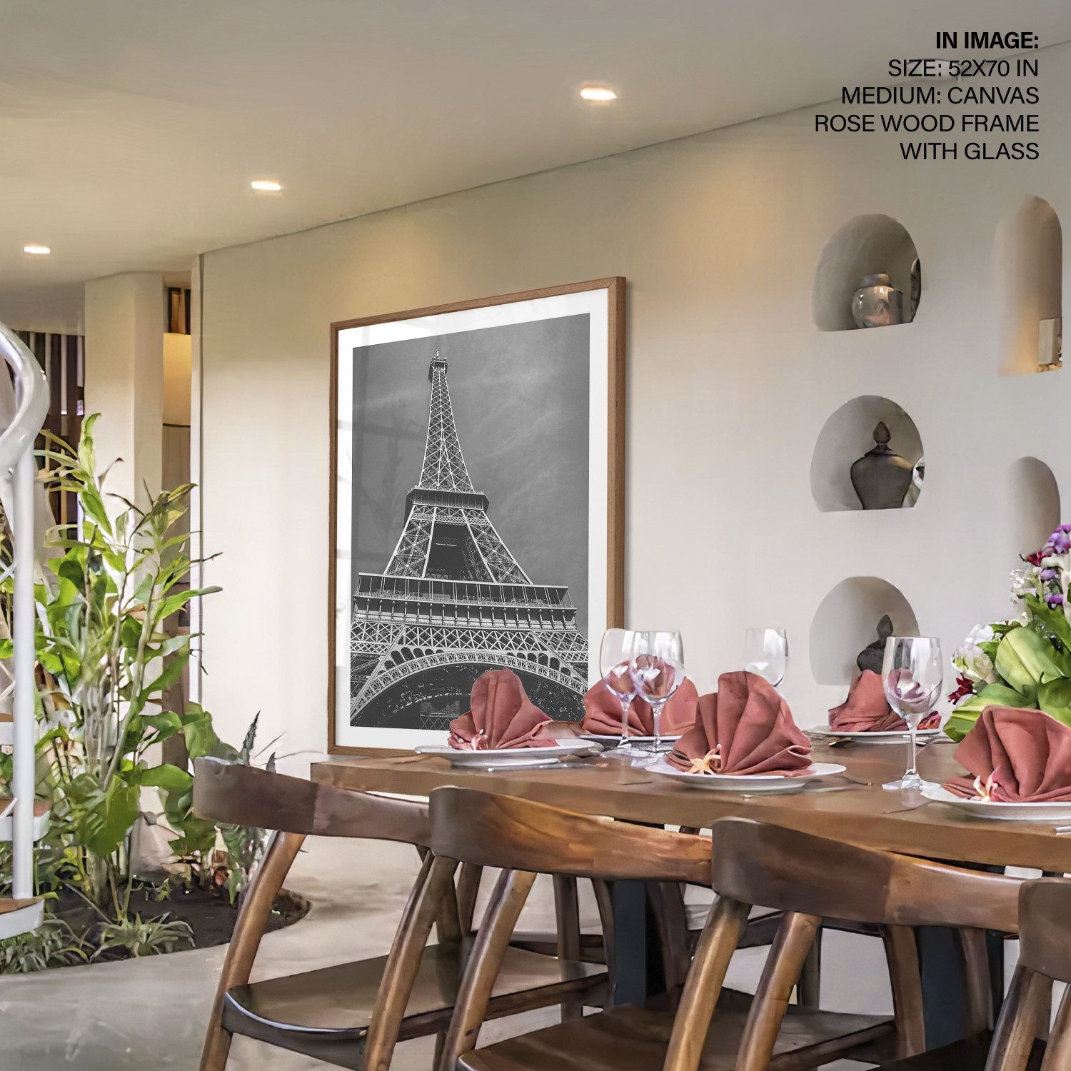 We recommend using Canvas for prominent living spaces (living room, dining hall, bedrooms), Metal/Glass for modern aesthetics, and Art Paper for galleries, bathrooms, kitchens, and other less formal areas.