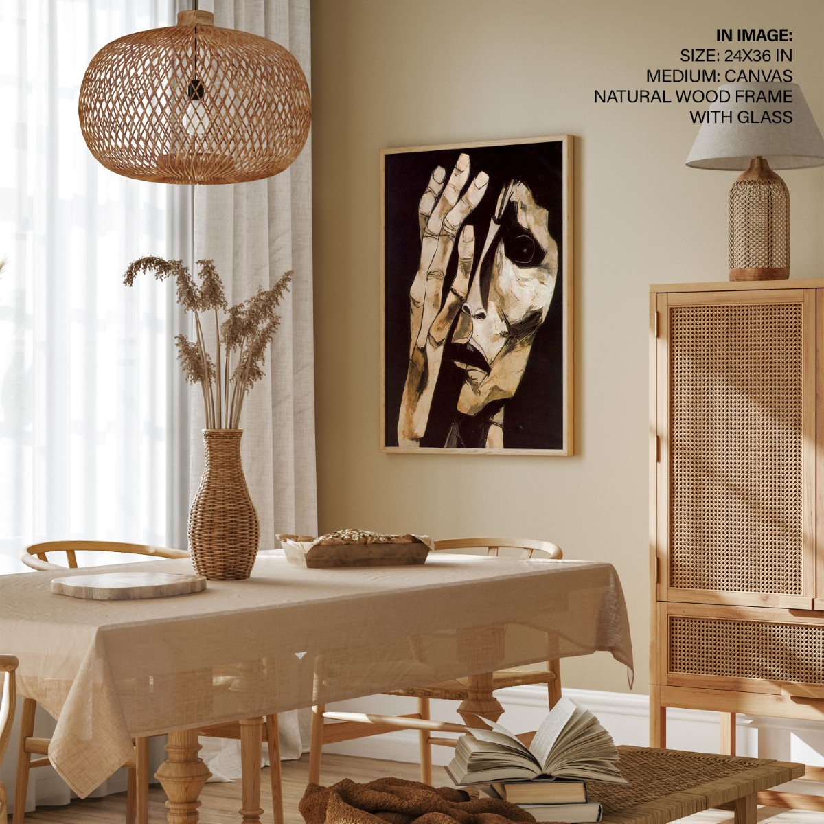 We recommend using Canvas for prominent living spaces (living room, dining hall, bedrooms), Metal/Glass for modern aesthetics, and Art Paper for galleries, bathrooms, kitchens, and other less formal areas.