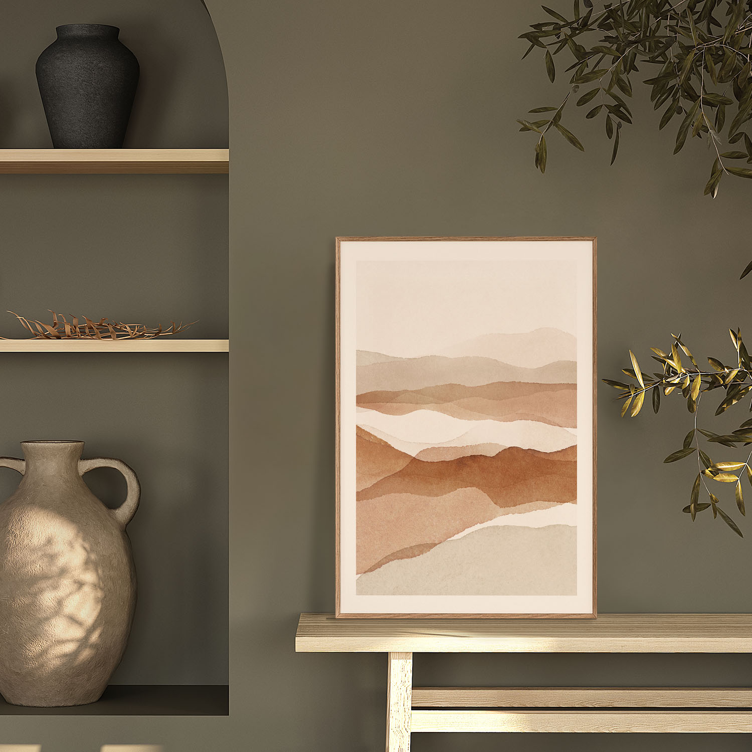 Be the first to review “Enticing buff watercolor layered mountains #435”