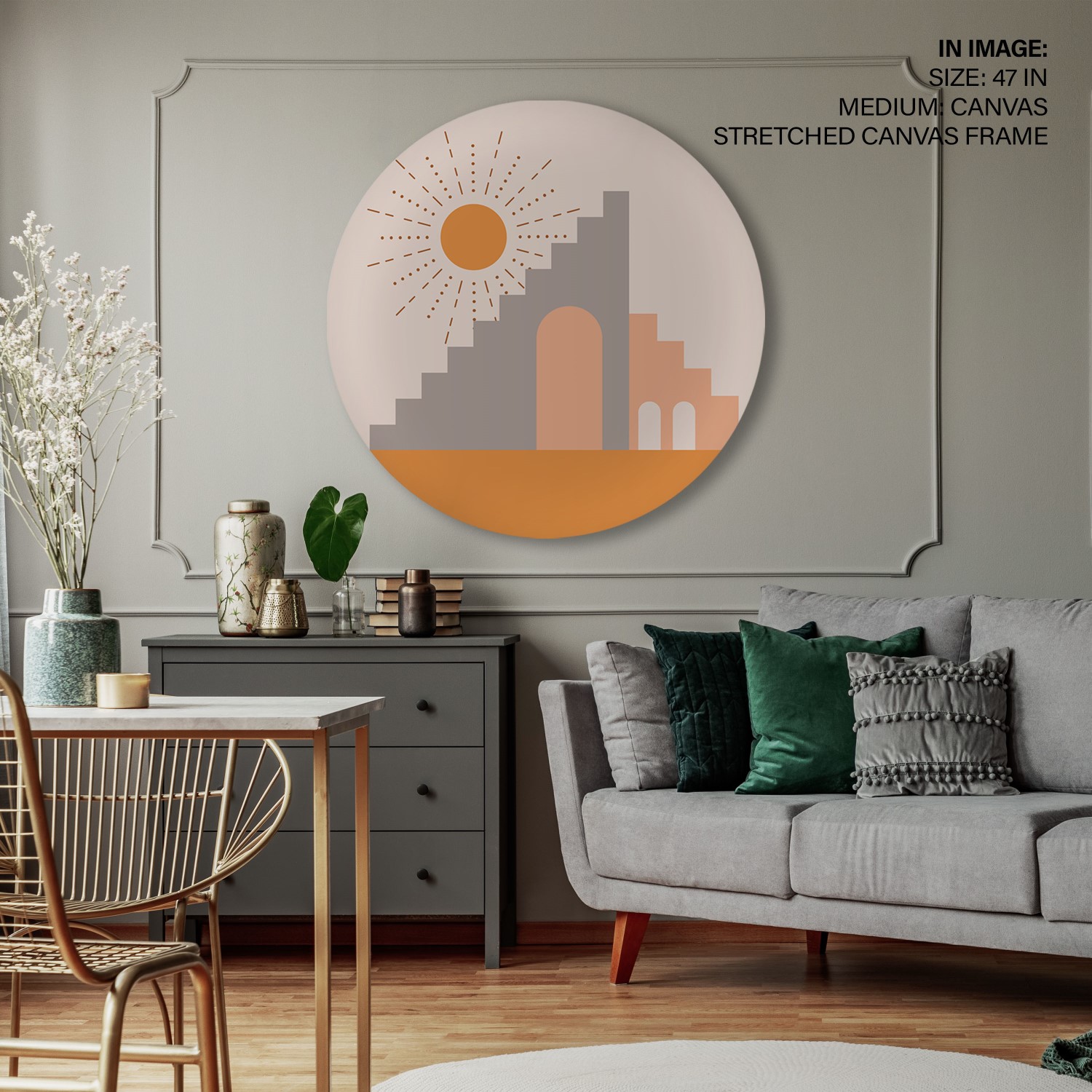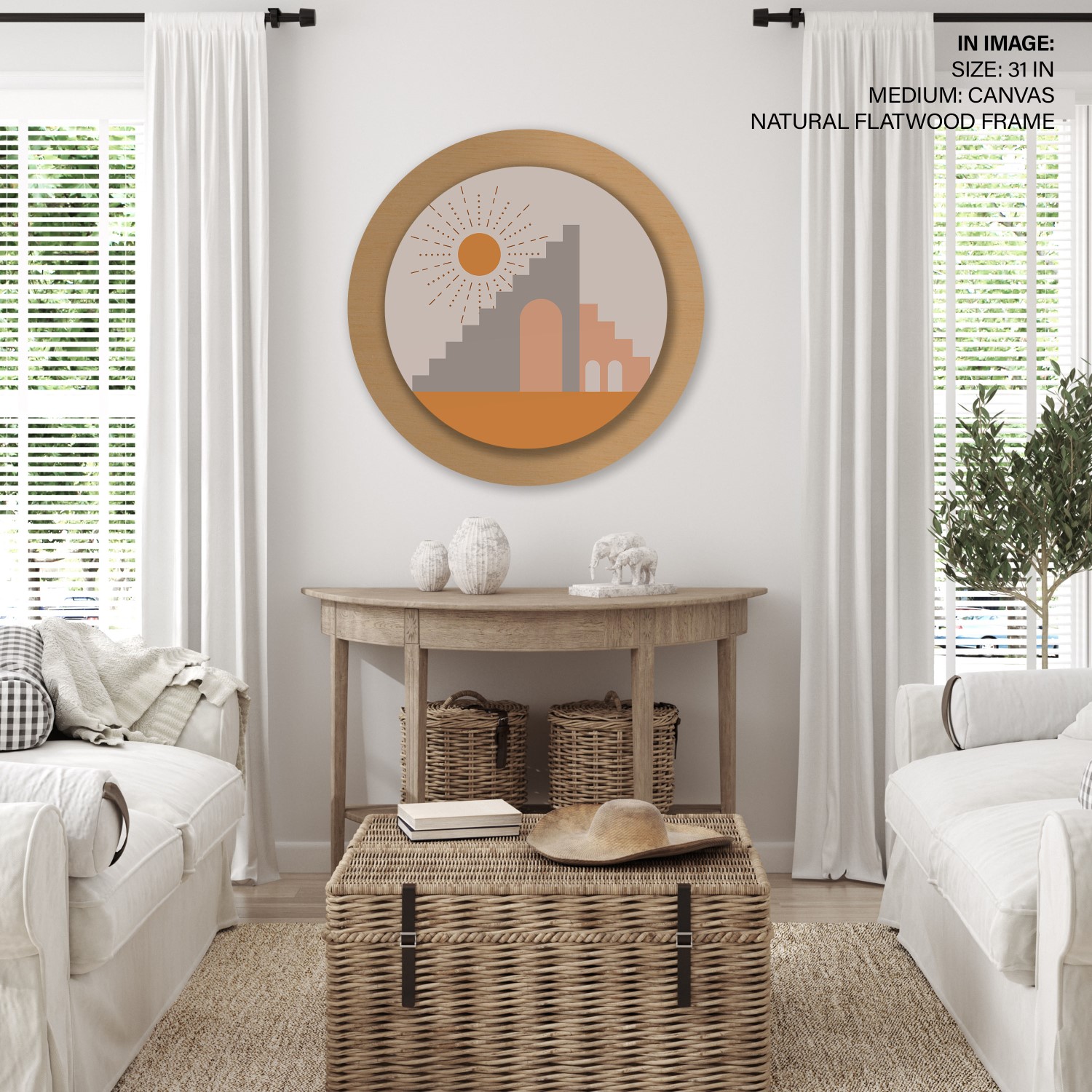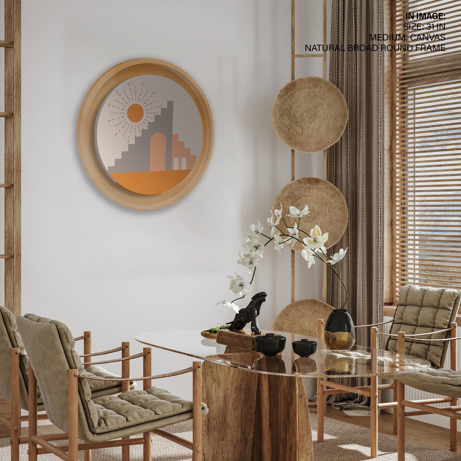 Figurative bohemian minimal abstract #305 – Circular Wooden Frame