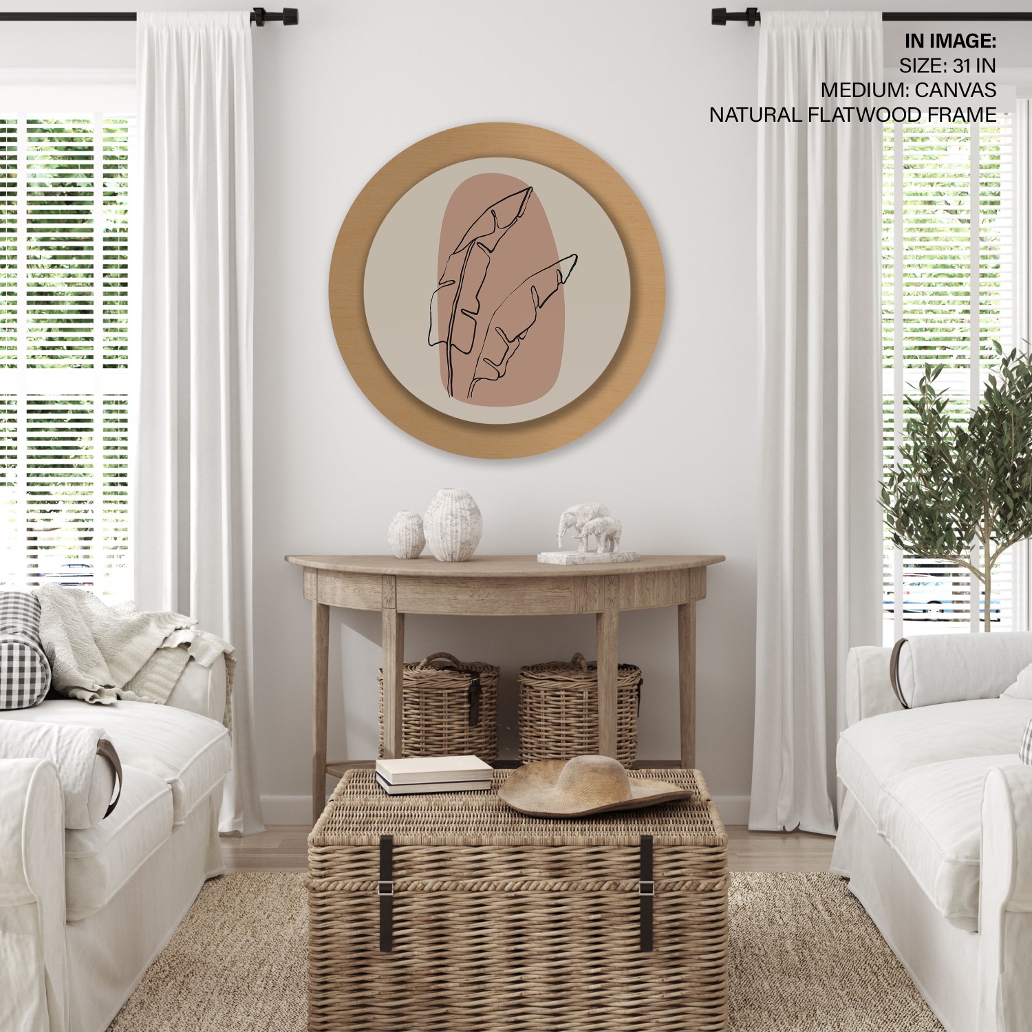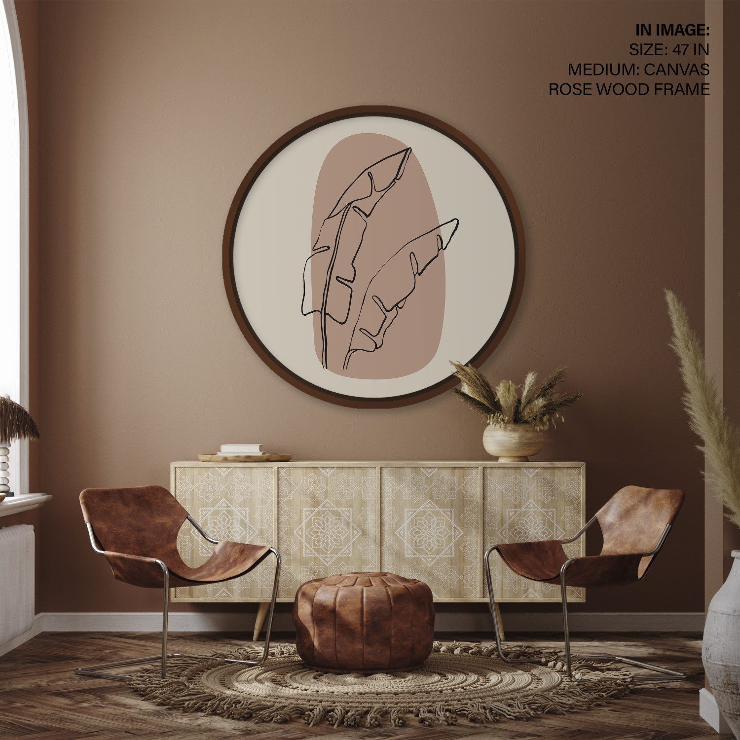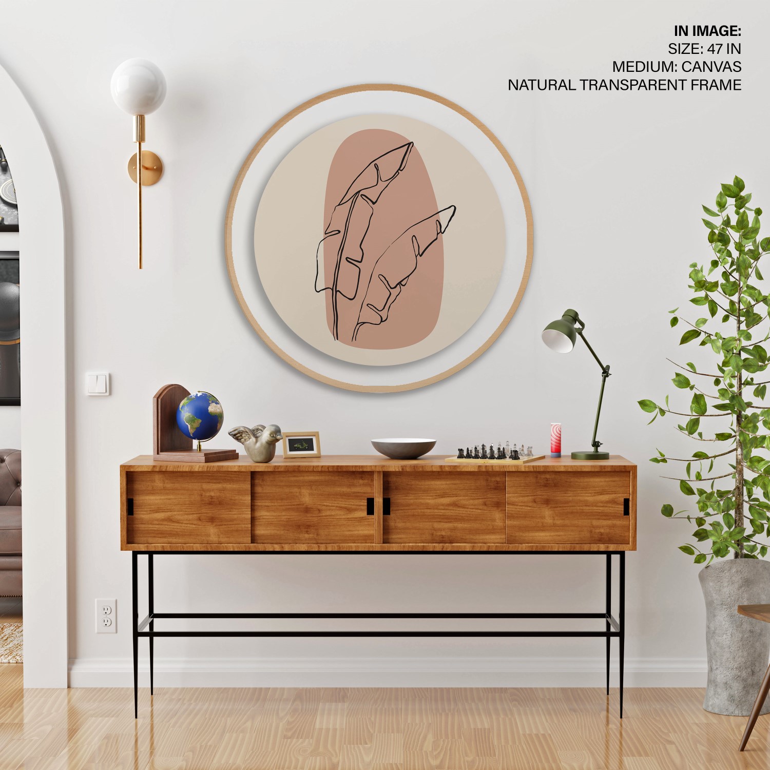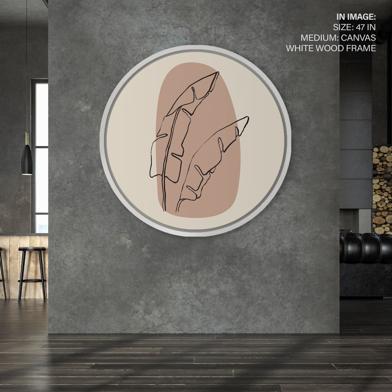 Figurative botanic leaves abstract #162 – Circular Wooden Frame