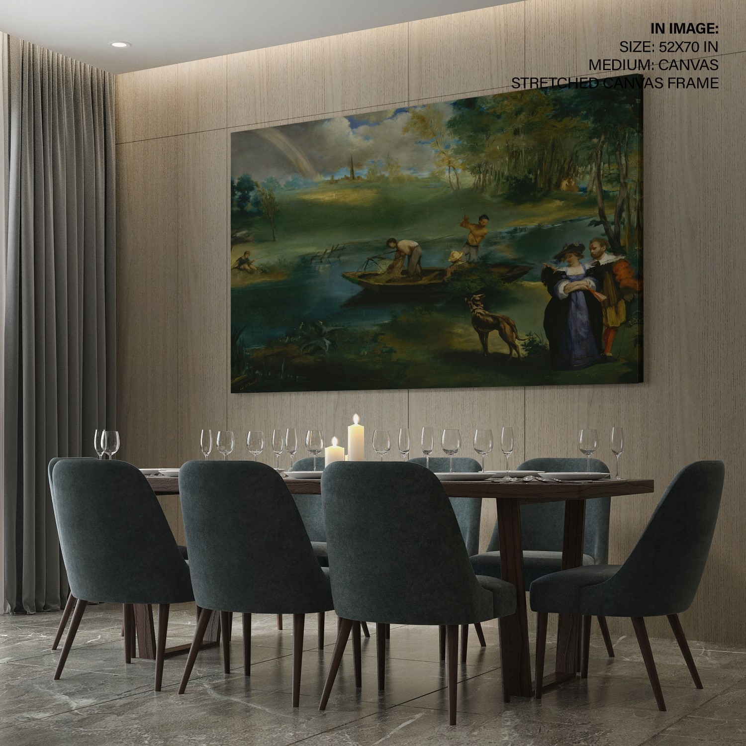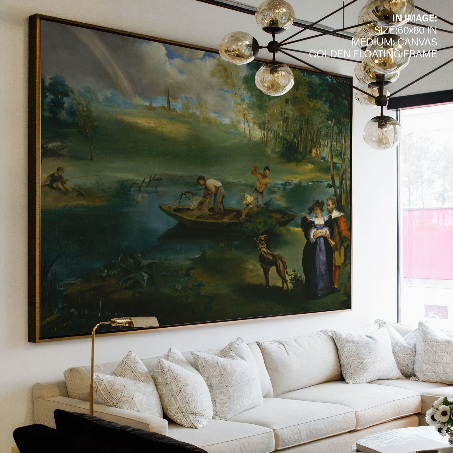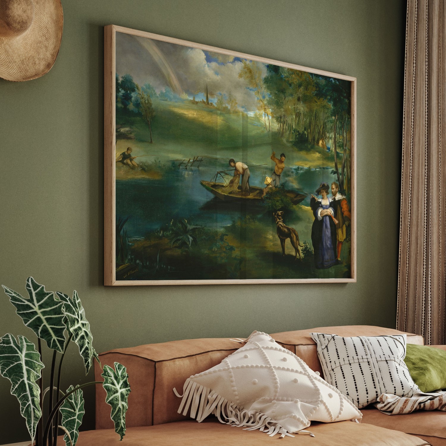 Fishing is a painting by Édouard Manet, created around 1862-63. The painting is an oil on canvas and measures 30 1/4 x 48 1/2 inches. It is currently located at the Metropolitan Museum of Art in New York City. The painting depicts two men fishing in a boat