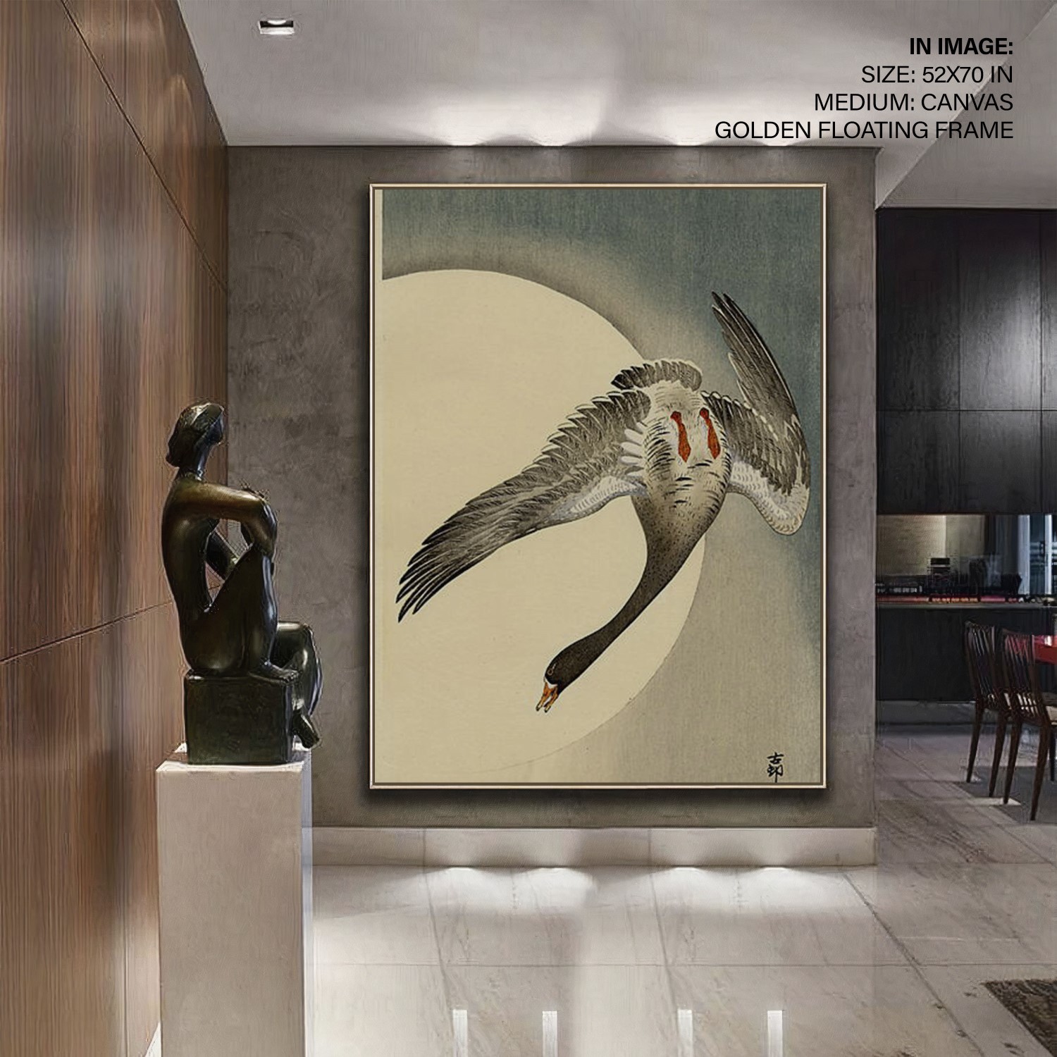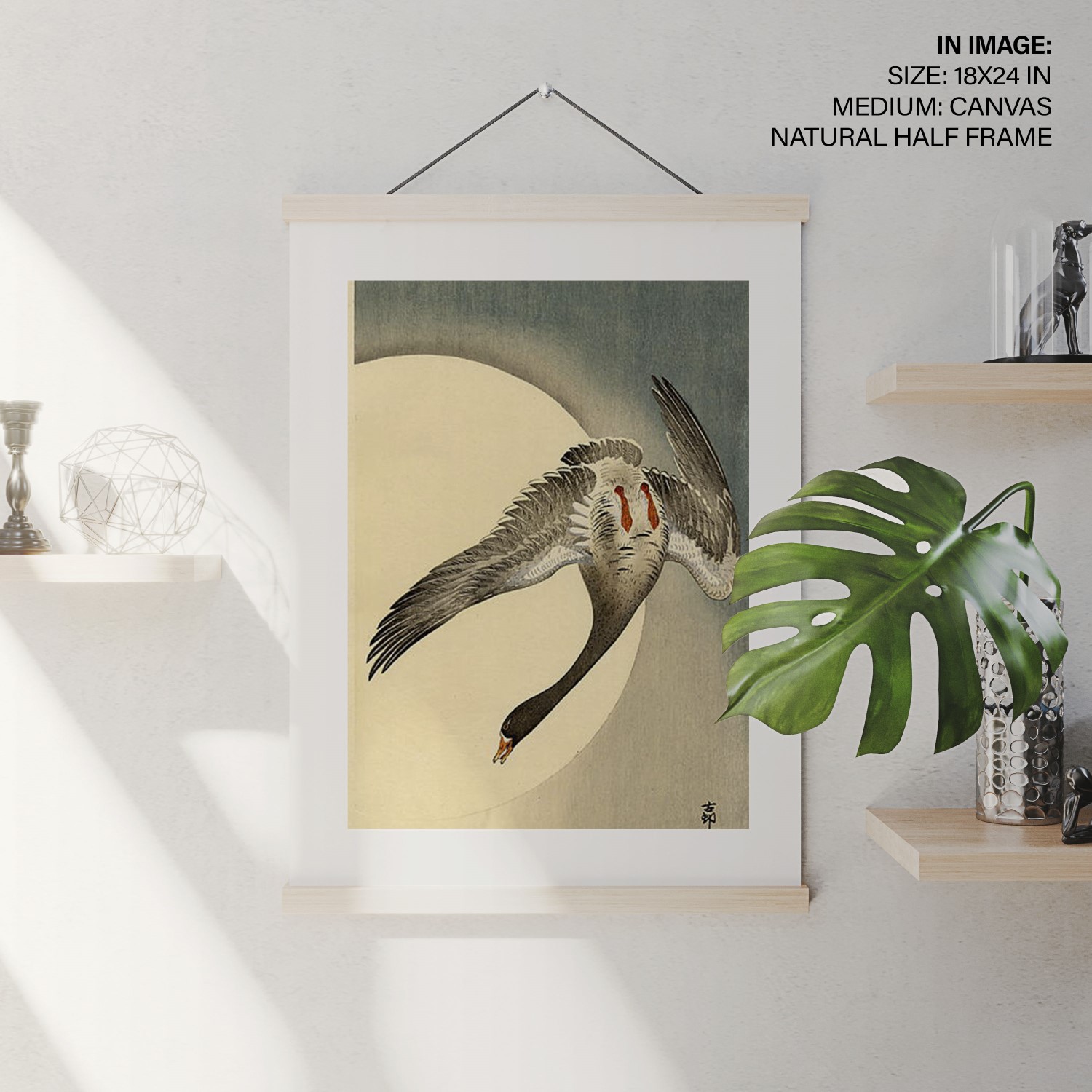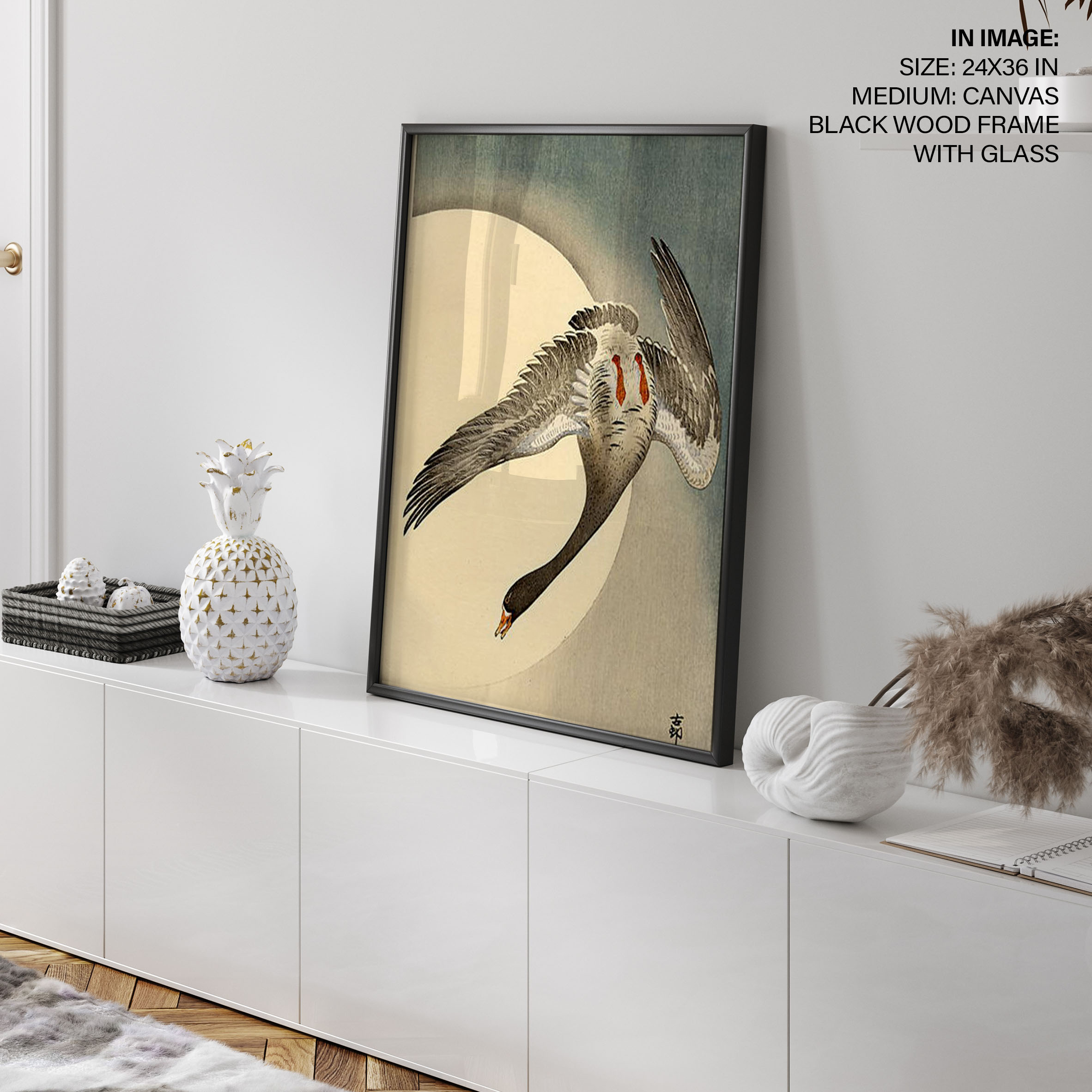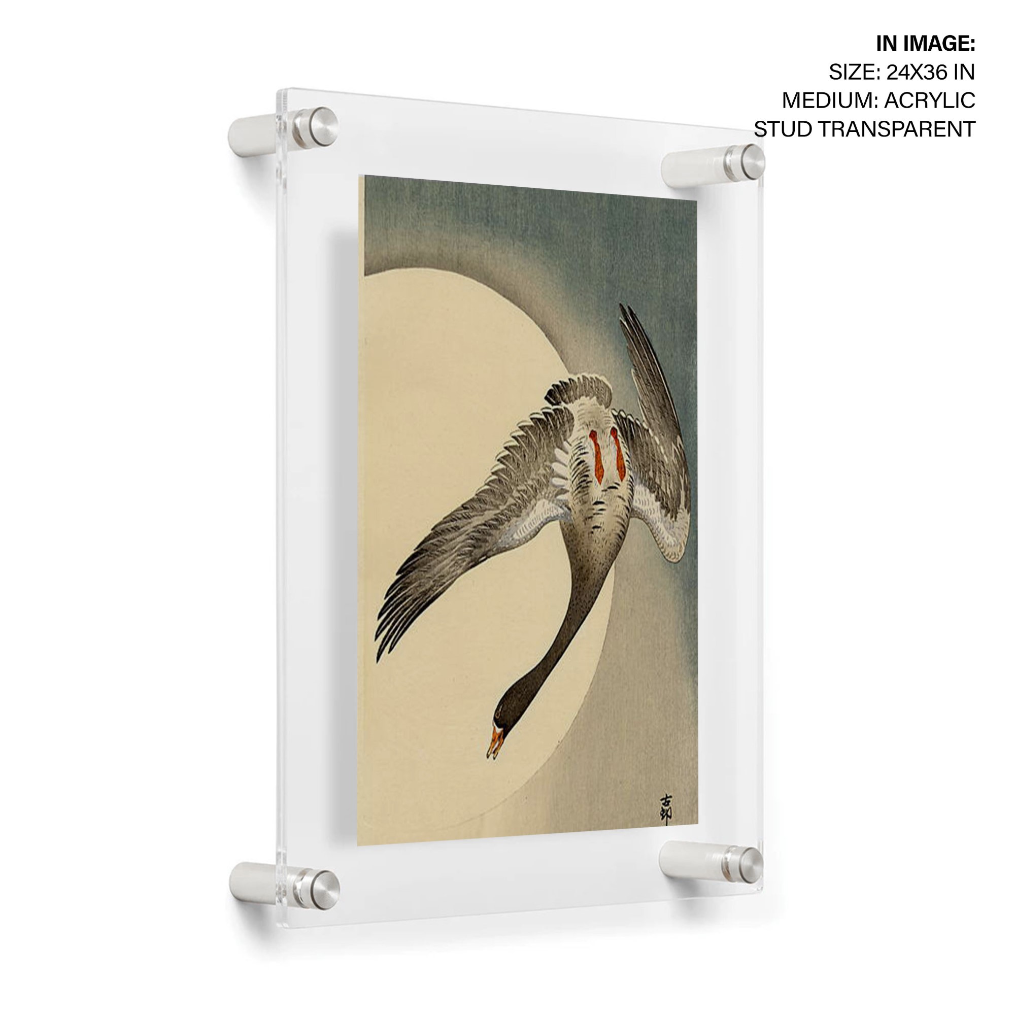 Be the first to review “Flying white fronted goose seen from underneath in front of the moon by Ohara Koson (Date Unknown)”