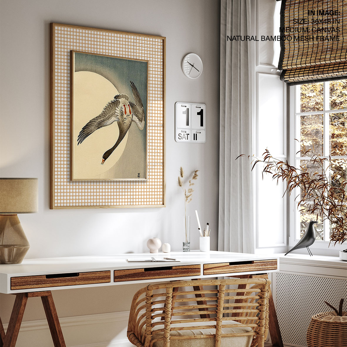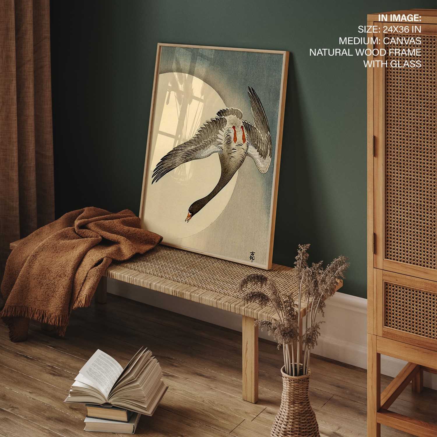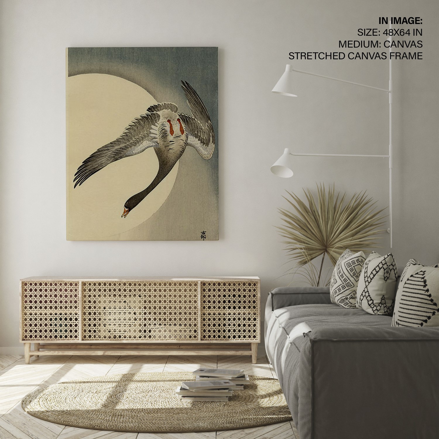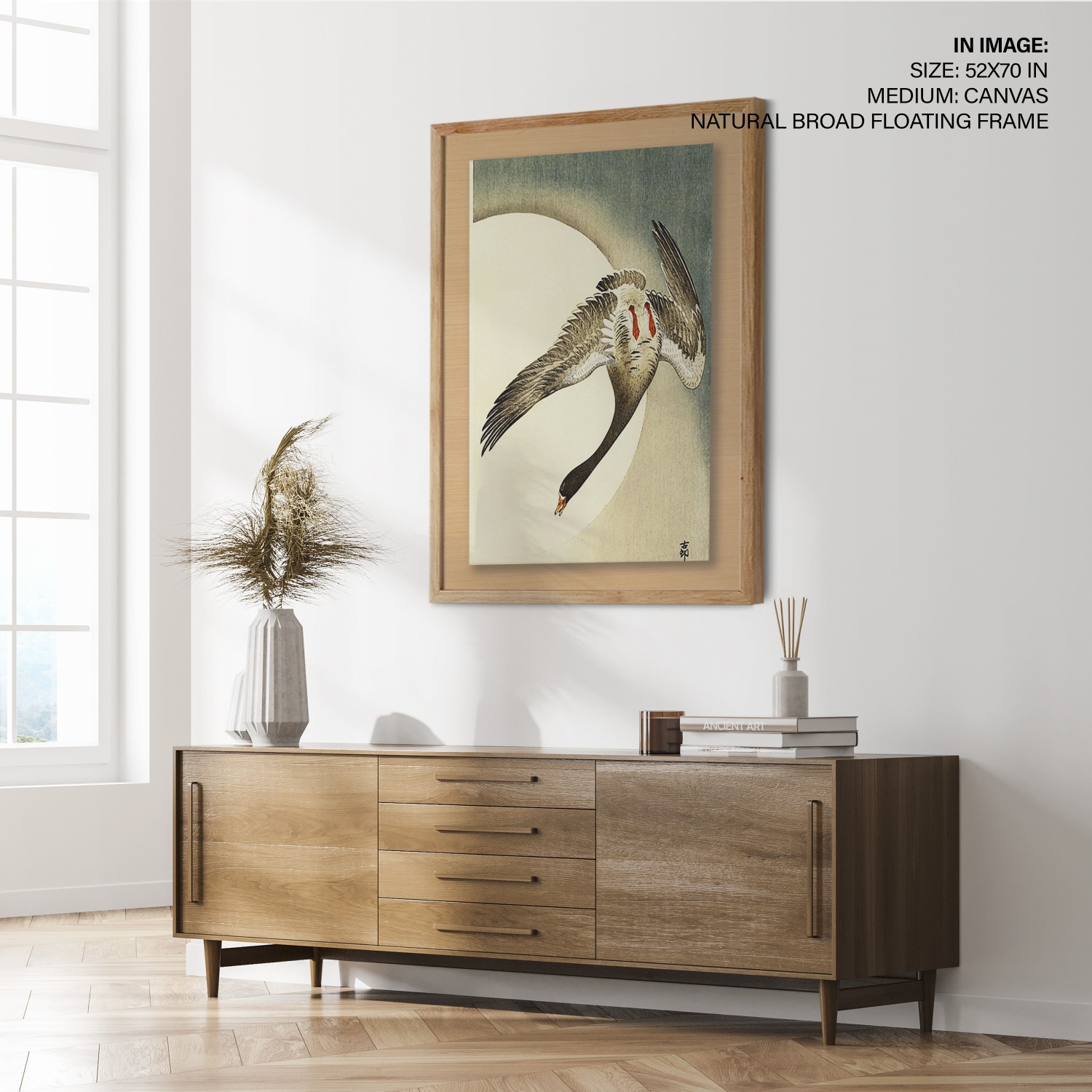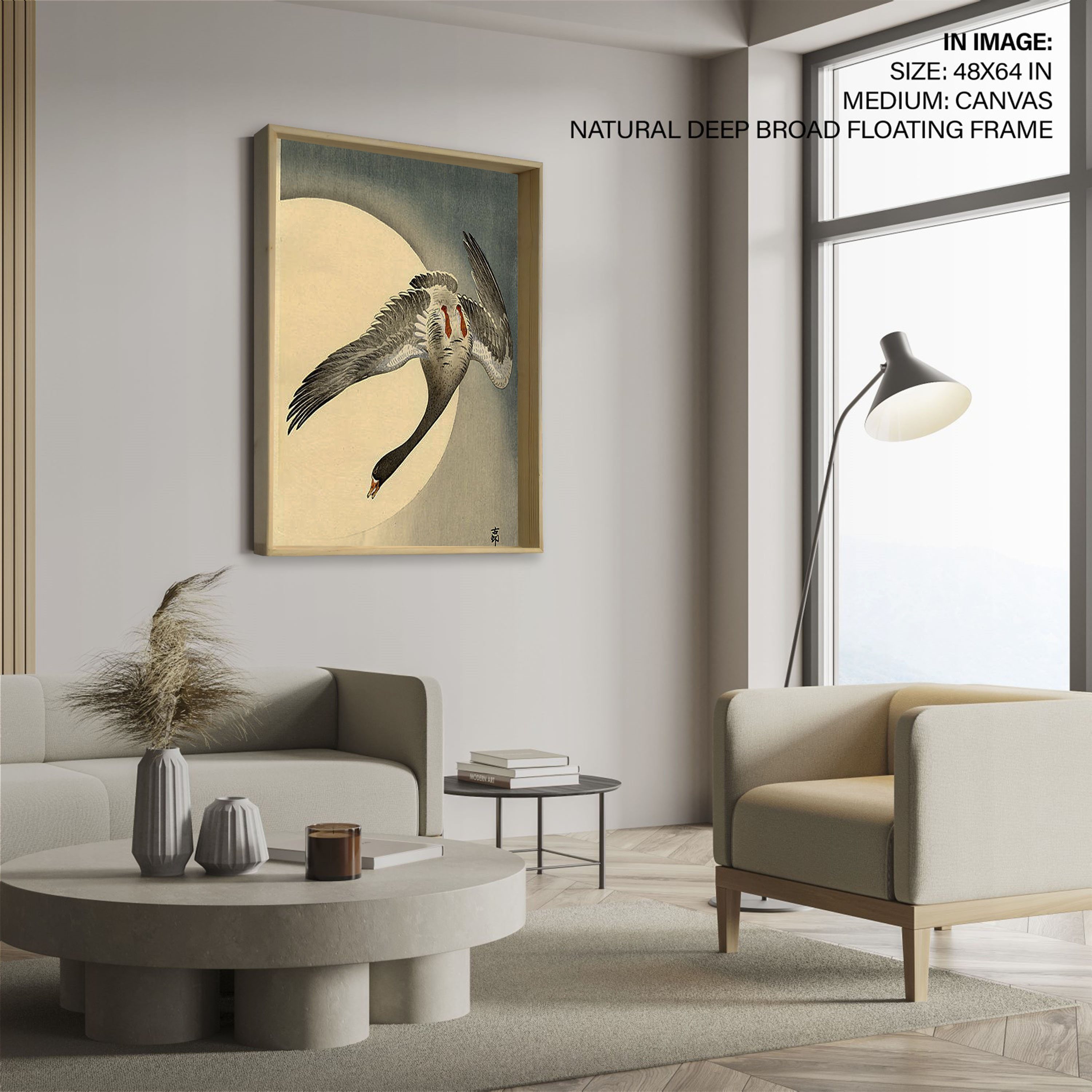 Be the first to review “Flying white fronted goose seen from underneath in front of the moon by Ohara Koson (Date Unknown)”