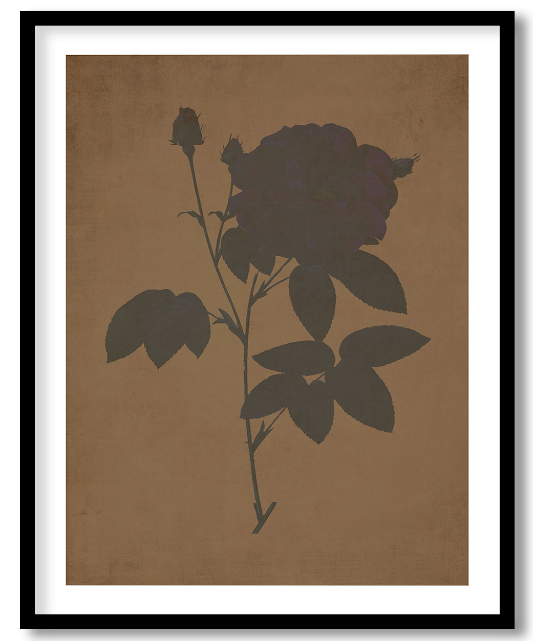 French Rose, also known as Ordinary Provins Rosebush (Rosa galluca offuenalis) – Walnut Pressed