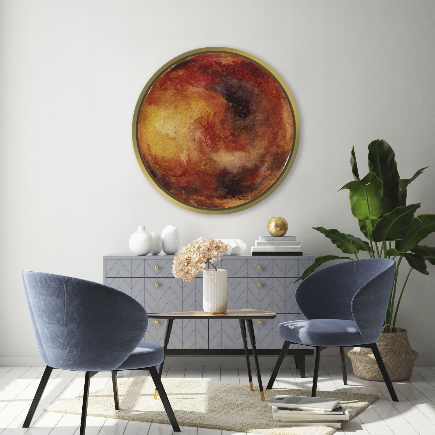 Garnet watercolor mars – Circular Wooden Frame