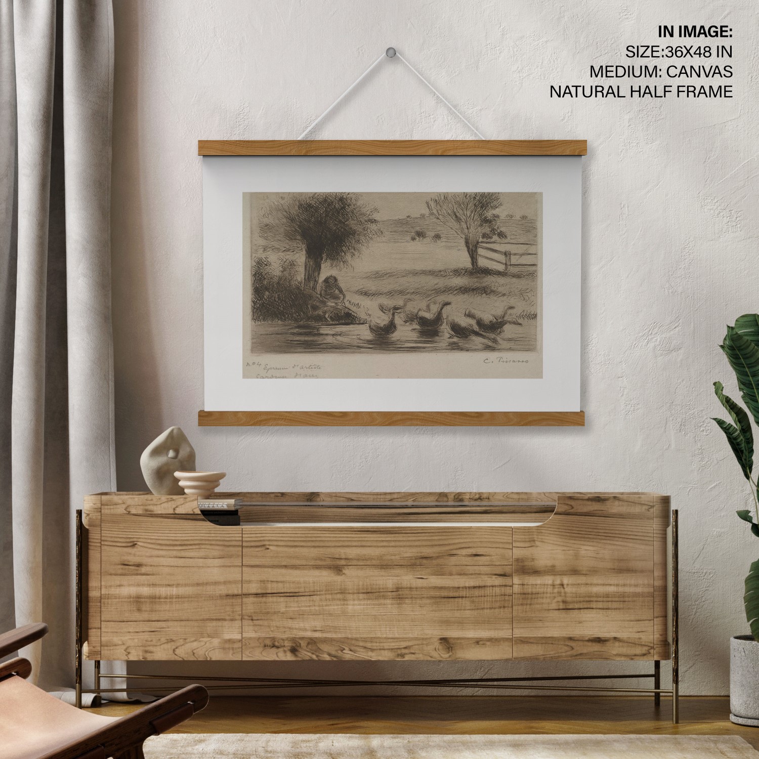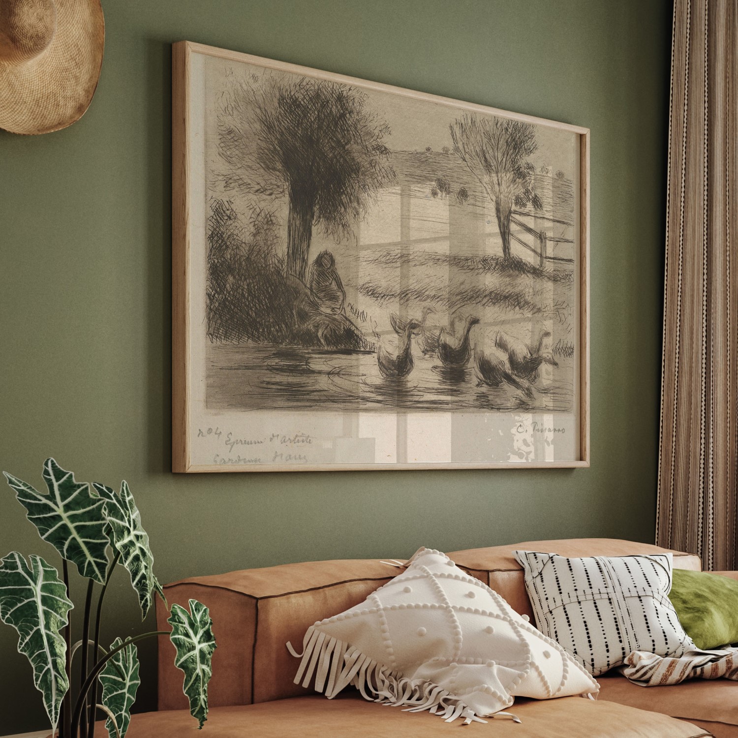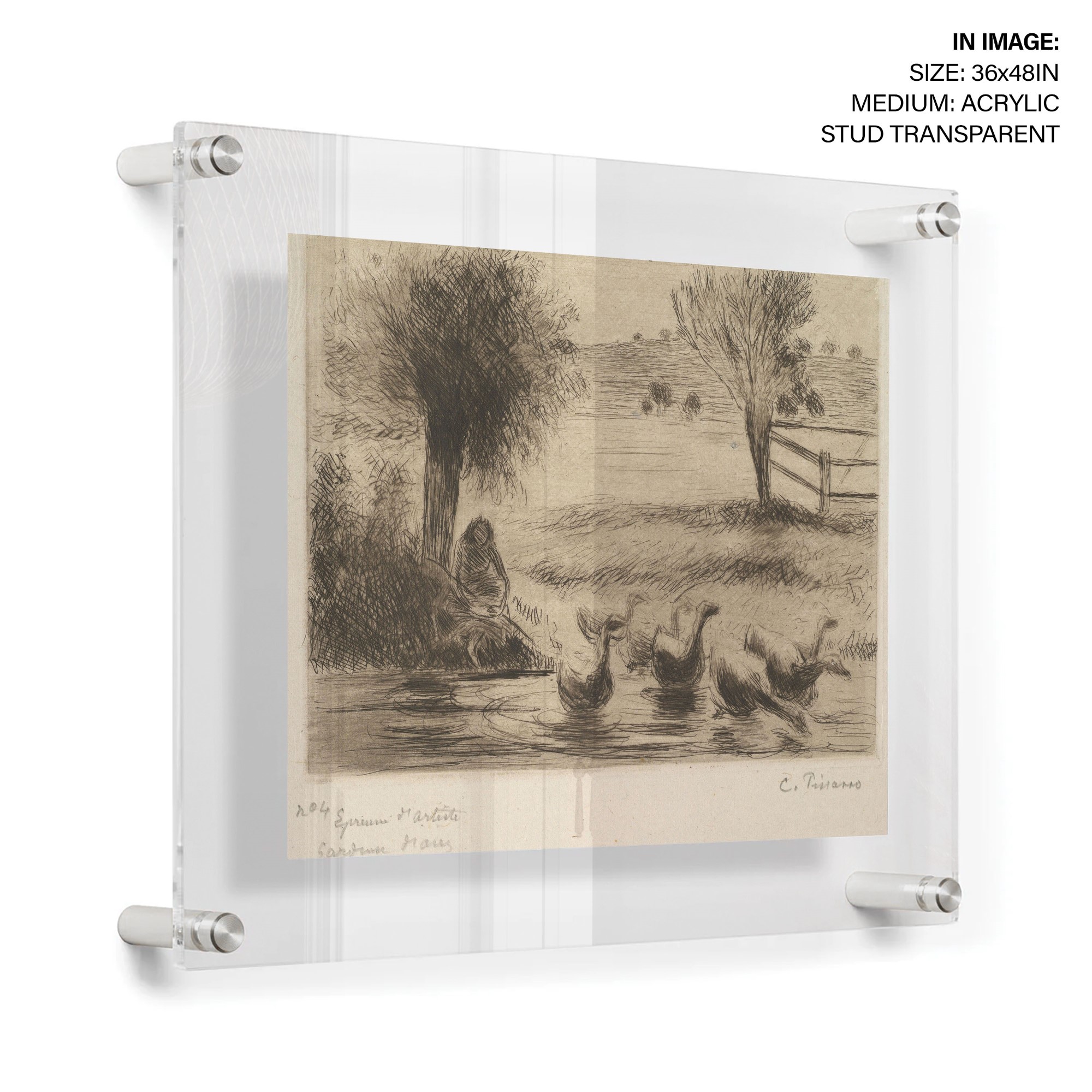 Goose Girl is a print created by Camille Pissarro in 1888. The artwork is an etching and drypoint on china paper, and is the first state of three. The dimensions of the sheet are 9 3/8 x 13 3/4 in. (23