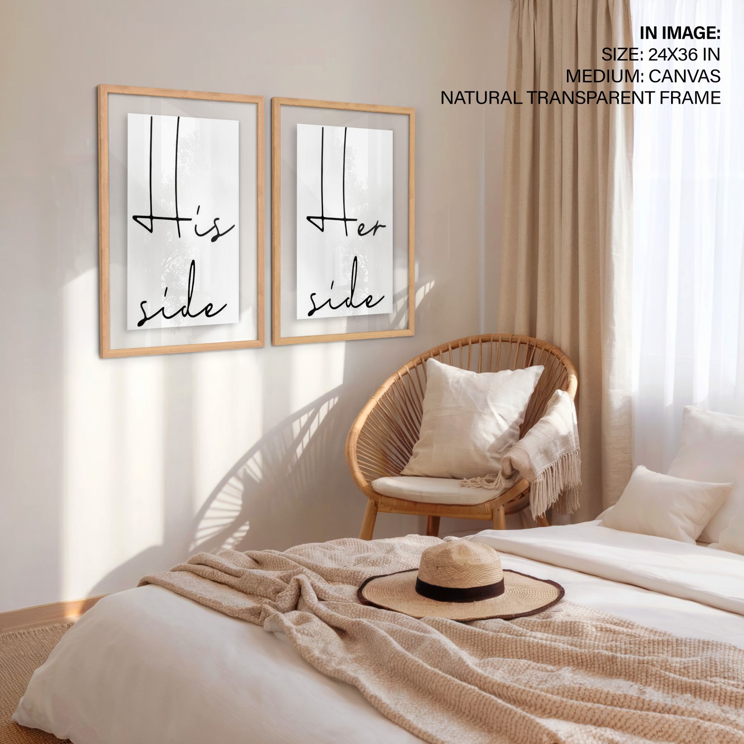 His Side – Her Side – Romantic Bedroom Framed Wall Art, Ready to Hang