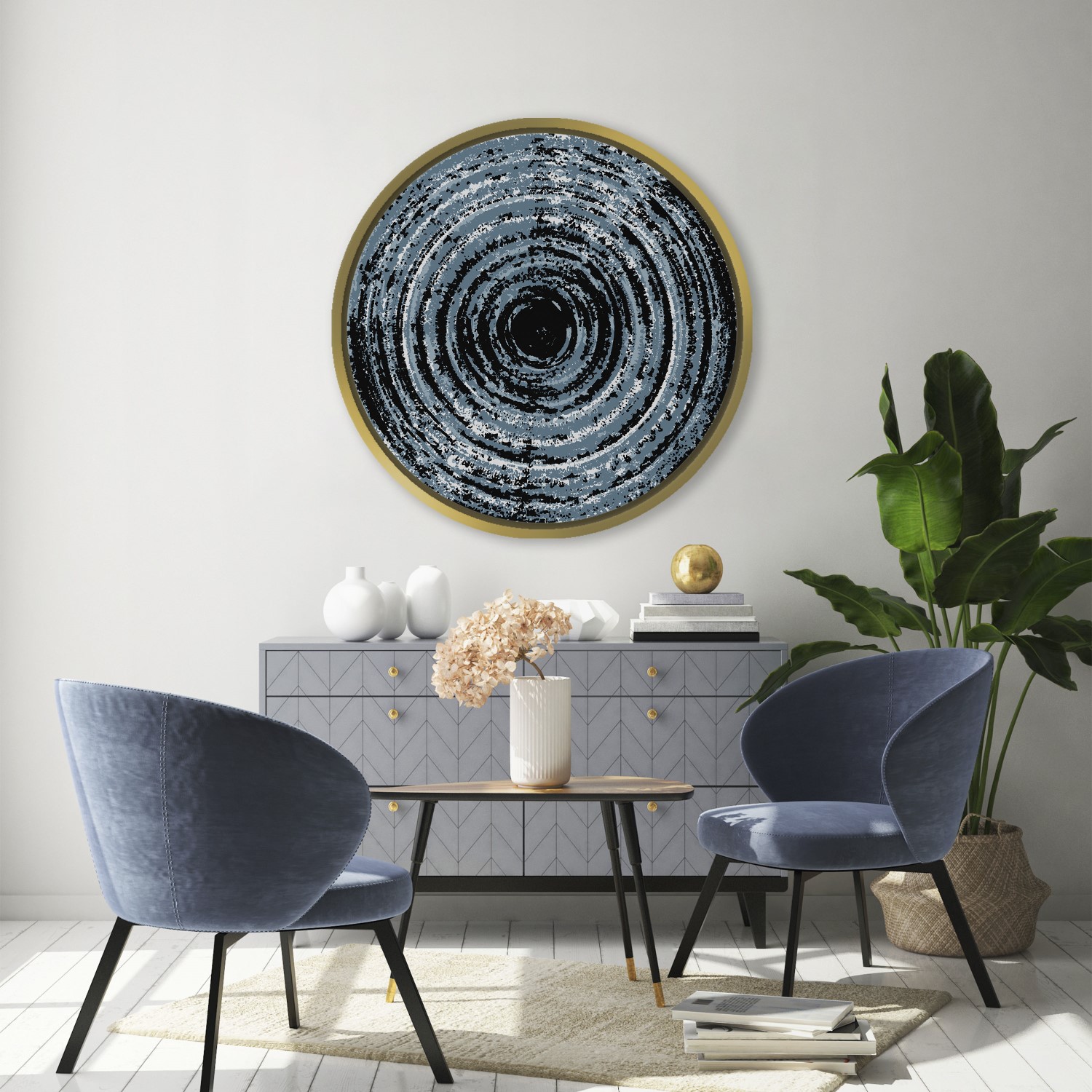 Indigo distress abstract – Circular Wooden Frame