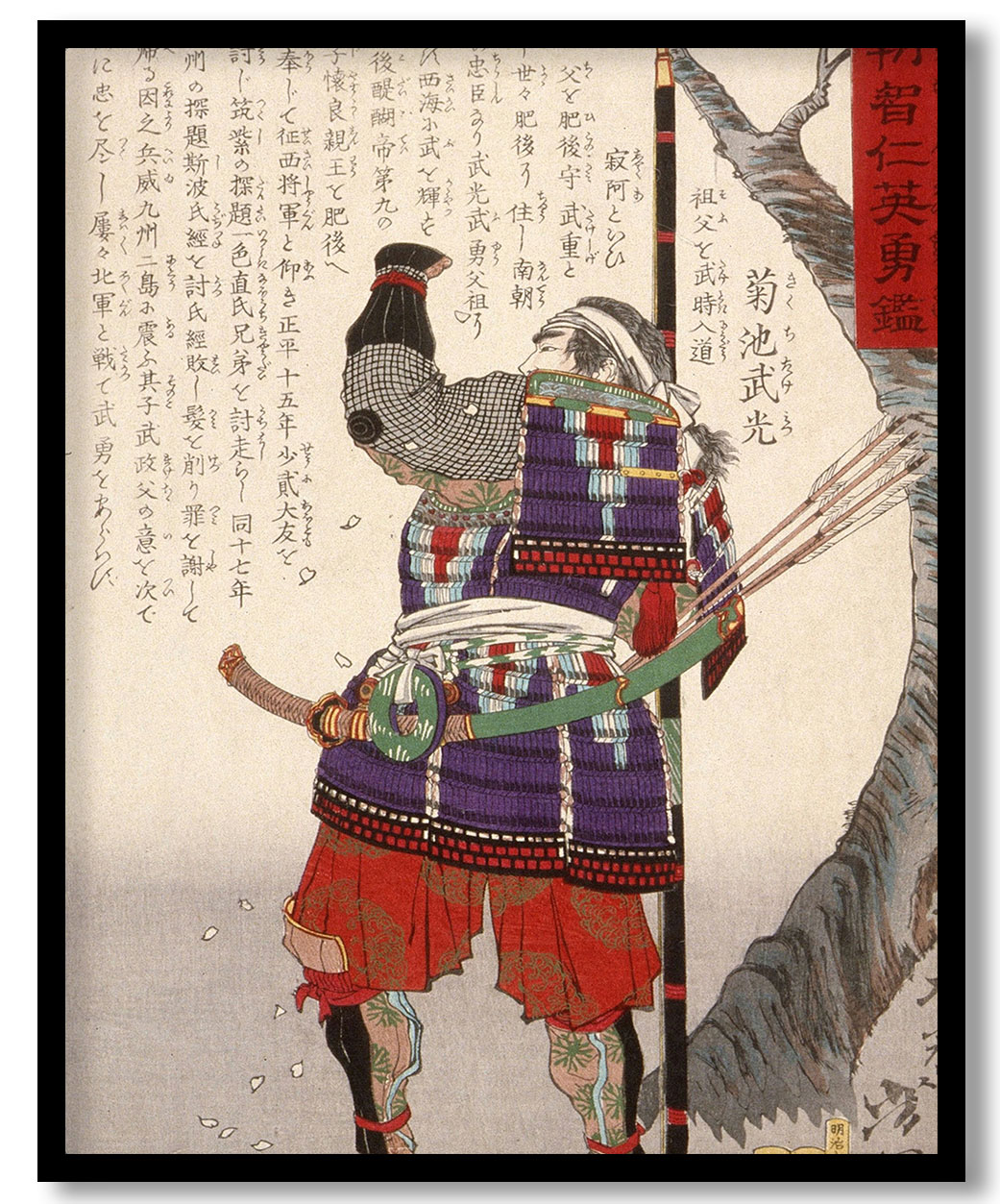 Kikuchi Takemitsu Standing by Cherry Tree by Tsukioka Yoshitoshi (1878)
